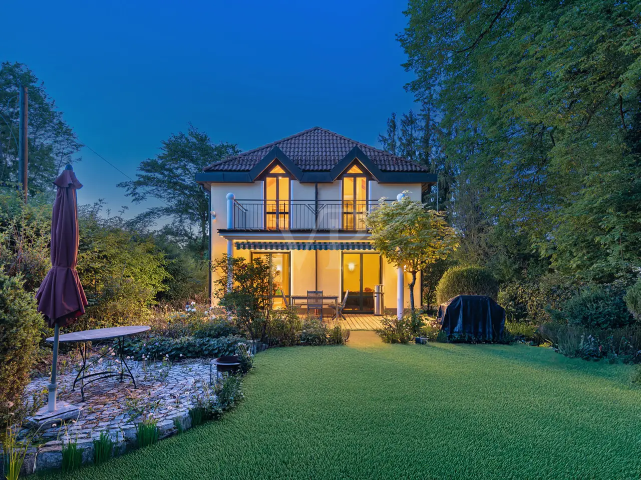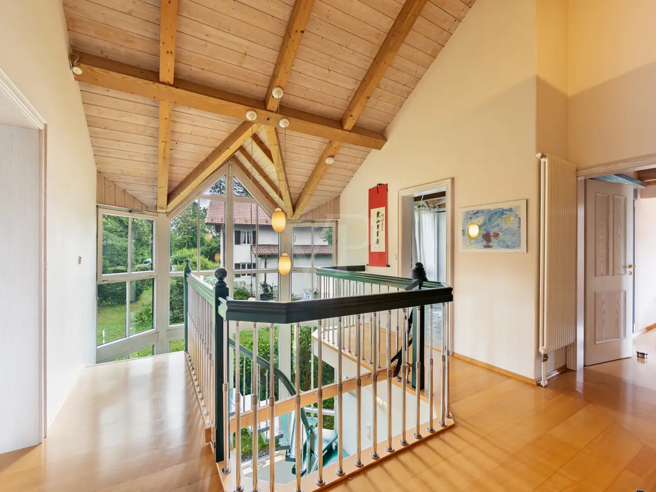This charming detached house in Gauting, built in 1996, offers a perfect combination of modern comfort and an idyllic location. The south-facing terrace and the lovingly maintained garden are real highlights, as they enjoy sunlight all day long and ensure relaxed moments outdoors. Thanks to the dense planting and the surrounding nature, you can also enjoy a lot of privacy here - ideal for undisturbed hours in the countryside. The balcony on the upper floor, also facing south, offers a wonderful view and invites you to enjoy sunny days in a private atmosphere. Inside the house, the elegant and functional furnishings are impressive. The open kitchen is equipped with high-quality Miele appliances and offers plenty of space for culinary adventures. The living area is equipped with fine parquet flooring, and a cozy fireplace provides cozy warmth and an inviting atmosphere. The bathrooms have underfloor heating, which offers additional comfort. On the upper floor you will find the spacious master area, which includes a bedroom, a bathroom and a dressing room. In addition to the south-facing balcony, which not only offers a wonderful view, there are three children's rooms on the upper floor. Two of the rooms have a gallery that creates additional living space and can be used in a variety of ways. The third children's room also offers plenty of space and flexibility for individual design options. The attic also offers plenty of storage space and can be used flexibly. The basement of the house can be used in a variety of ways: Here you will find a spacious laundry room, a storage room and a spacious hobby room, which offers you numerous options for leisure activities or additional use. In addition, opposite the bathroom and adjacent to the hobby room there is another room that can be used as a guest room or as a quiet study - ideal for visitors or concentrated work from home. Another bathroom in the basement complements the functionality of this area. A modern solar system not only provides environmentally friendly energy, but also helps to reduce energy costs. Two garage spaces offer safe and convenient protection for your vehicles. Position Gauting is located in the southwest of Munich in the middle of the beautiful Würm Valley. Gauting is very popular due to its excellent infrastructure, good transport links and high recreational value. Munich city centre is easily accessible by public transport and the centrally located Gauting S-Bahn station. The centre can be reached by car within 20 minutes. The Munich-Garmisch (A95) and Lindau (A96) motorways are also just a few minutes' drive away. The area of the Gauting municipality is one of the earliest settled areas in Upper Bavaria. Evidence of this includes the burial mounds south of Gauting and in the Stockdorf district, which date back to the Bronze Age. In the Roman Imperial period, Gauting was the site of a crossing of a Roman road from Partenkirchen to the north over the Würm, as well as an associated camp for the occupying troops. The most spectacular find is a Roman clay jar store, in which around 40 whole and 200 broken jars were uncovered in 1930. Later, a bathhouse, workshops, houses and urn graves with numerous Roman finds were excavated. After the Romans withdrew in the 5th century and the Bavarians resettled the fields, the first documented mention that can be clearly attributed to today's Gauting dates back to the 8th century. The place name, which means something like "near Cotto/Godo/Gozzo and his clan", varies in documents up until the 18th century, although the current spelling already appears in the High Middle Ages: 753 Goutingen, 856 Gotinga, 1150 Gutingin, 1409 and 1465 Gautting. However, the village probably had no more than 30 to 40 inhabitants during the Bavarian period. The first documented evidence of the Königswiesen manor on Gauting's municipal land dates back to 934. The second manor, Schloss Fußberg, is also believed to have been built around two kilometers downstream of the Würm. According to legend, Charlemagne was born in the Gautinger Reismühle, hence the imperial crown in the Gautinger coat of arms. This information was first mentioned in a chronicle from 1472 by a monk from Weihenstephan. With the opening of the railway line from Munich to Starnberg built by Ulrich Himbsel in 1854 and the resulting faster connection to the state capital, Gauting's rise as a residential area began. The villa colony was founded in 1902. Since then, Gauting has enjoyed a lively influx of commuters looking for peace and quiet and living space. As part of the regional reform in Bavaria, the communities of Buchendorf, Oberbrunn and Unterbrunn were incorporated in 1978. The residents of Gauting benefit from a wide range of infrastructure amenities. In addition to the twelve nurseries, kindergartens and preschools located in the city, the town of Gauting also has a very good range of further education options. From a primary school to a middle school, a secondary school and a high school to a branch for highly gifted students at the Otto-von-Taube-Gymnasium, every level of education is taught and supported to the highest degree. There is also no shortage of diverse shopping opportunities, doctors and care facilities in Gauting. The popularity of the town of Gauting is due to its high recreational value. Lake Starnberg, the beautiful Alpine foothills and the nearby mountains offer every conceivable sport and leisure opportunity. Gauting also has its own cinema, a library and a summer pool. equipment HIGHLIGHTS * Sought-after location * Unique property with a special style * Unique south-facing garden * Spacious house with excellent layout * Very quiet location * Modern kitchen with Miele appliances * Elegant parquet flooring and fireplace * Versatile basement Parking space 2x garage Other Information An energy consumption certificate is available. This is valid until July 24, 2034. Final energy consumption is 79.10 kWh/(m²*a). Th