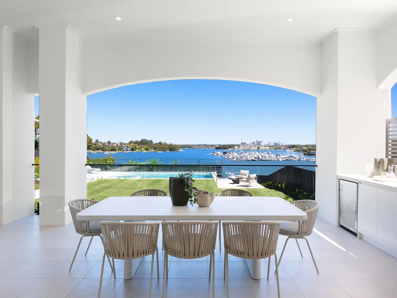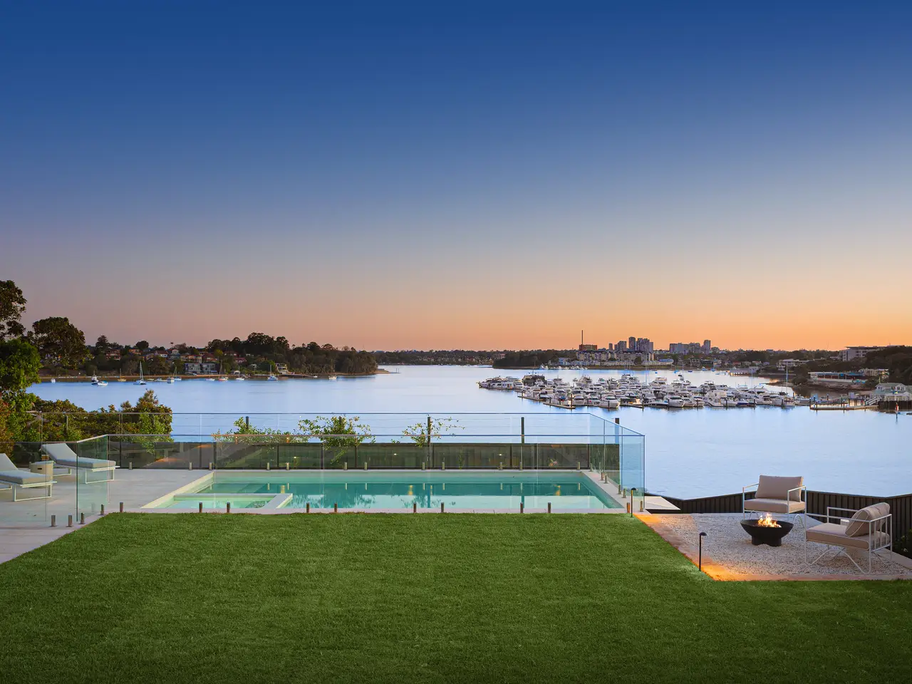 Set in the exclusive Gladesville peninsula, with uninterrupted water views and enjoying magical sunsets, this brand-new, custom designed double brick and concrete home isn't just position-perfect, it's a prestigious statement of luxury providing family living in the highest class. Grand volumes and glorious high ceilings present light-filled interiors, while premium inclusions, a beautiful heated pool and spa and a sleek emphasis on in/outdoor flow ensure its status as a modern and sophisticated masterpiece. – Bespoke residence by award-winning designer/builders Hall & Hart – Sumptuous family zones extending to full-width alfresco, BBQ and pool – Level backyard, upper terrace and retreat – all boasting never to be built out views – Miele kitchen appliances, marble benchtops and island, butler's pantry – Vast hotel-style master quarters with dressing room and full ensuite – Dedicated media room, hardwood floors, DLUG plus circular driveway for up to 4 cars – Whisper-quiet setting minutes to schools, shops and bayside parks