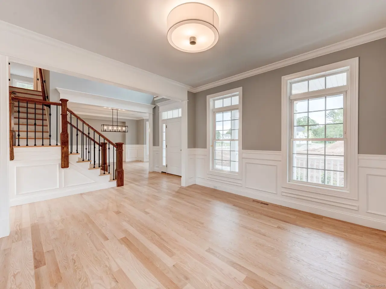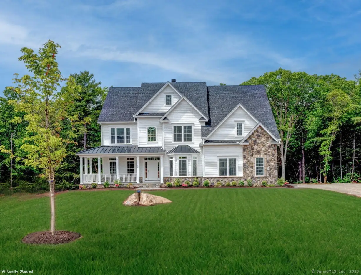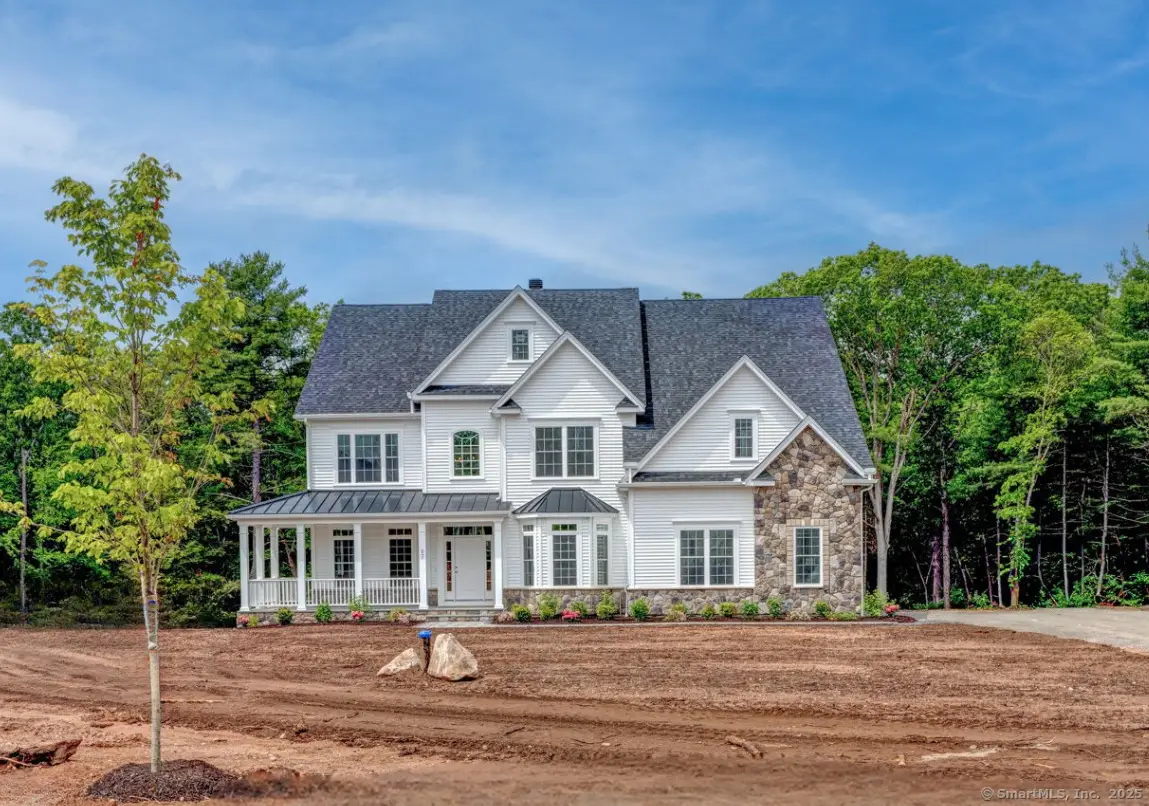 Picture perfect and fully completed New Construction Home in the highly desirable Crosby II Subdivision by Glastonbury's premier builder, Reggie Jacques! Gorgeous curb-appeal with beautiful stone veneer and elegant wrap around porch directly situated on cul-de-sac. This home offers luxury living & the perfect floorplan around a timeless design and lower level walk-out. A grand two-story foyer greets you upon entry, beginning with formal living and dining rooms positioned elegantly on either side. The dramatic family room serves as a true showstopper, w/ a soaring wall of windows and striking millwork surrounding the fireplace. The kitchen is equally captivating, features custom ceiling height cabinetry and hood, along w/ quartz countertops & blk finishes. The main level also includes a private bedroom suite, ideal for guests or the perfect office space. Upstairs, the primary suite is pure luxury w/ a serene sitting area, huge custom walk-in closet, and a spa-like bath. Three additional bedrooms, two full baths, and a 2nd-floor laundry room complete the upper level. Ready to expand? The walk-out lower level is prepped w/ rough plumbing -perfect for your future vision. 9' ceiling on 1st floor, 2nd floor & in basement. Over 2 acres with irrigation in place. Backyard allows for inground pool. Subdivision has 20,000 gallon water reserve in place to reduce insurance cost.