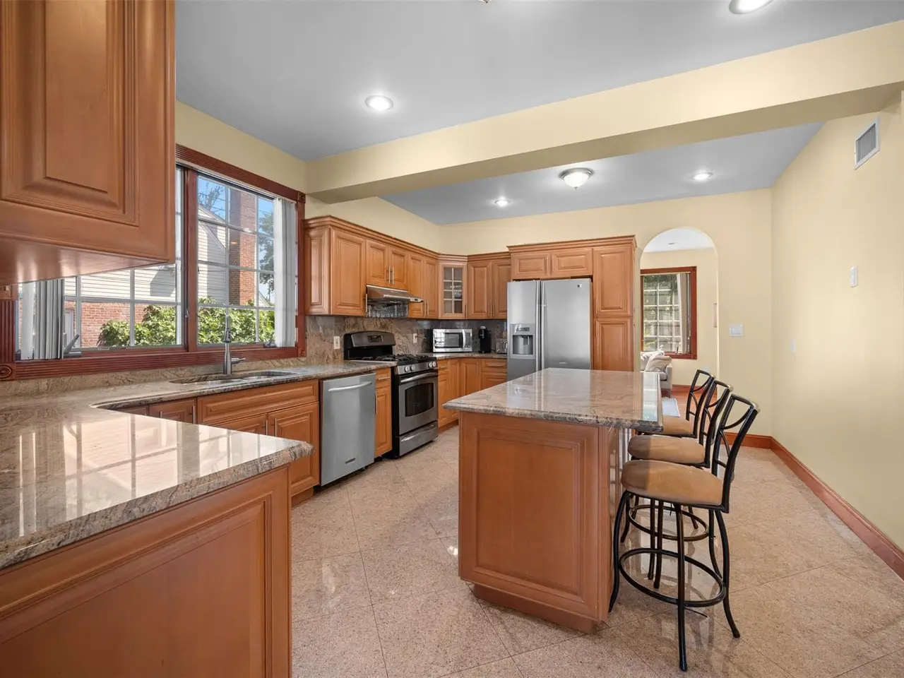 - Chef's kitchen with granite countertops and custom cabinetry