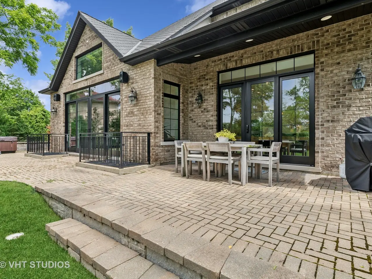 Welcome to an extraordinary residence, a true masterpiece of design and craftsmanship, perfectly situated on a secluded 0.74-acre professionally landscaped lot. This exquisite 5-bedroom home, with potential for a 6th in the basement, 4.1 bathroom brick and stone home offers an unparalleled living experience, blending luxurious finishes with a warm, inviting atmosphere. Step inside and discover a spacious open floor plan, meticulously designed to maximize natural light. The heart of this home is the chef's kitchen, a culinary dream featuring top-of-the-line appliances, custom cabinetry, and ample counter space. It seamlessly overlooks a magnificent living room, where soaring cathedral ceilings create an awe-inspiring sense of volume and an elegant backdrop for entertaining or quiet relaxation. Each of the generously sized bedrooms is a sanctuary of comfort, with many vaulted ceilings that enhance their spacious feel. The finished lower level extends the living space significantly, offering versatile areas for recreation, media, or a home gym, all kept cozy with the luxurious comfort of radiant floor heating. Outdoor living is equally impressive. A massive wrap-around patio provides an idyllic setting for dining and entertaining, complete with a charming outdoor fireplace that invites cozy evenings under the stars. The expansive yard offers endless possibilities for outdoor activities and the enjoyment of nature. Practicality meets luxury with a host of additional features including a convenient mudroom, a spacious walk-in pantry, and a three-car garage, providing ample storage and organizational solutions. This home is not just a dwelling; it's a lifestyle, meticulously crafted for those who appreciate the finest in residential living. A must-see property that truly embodies elegance and comfort.