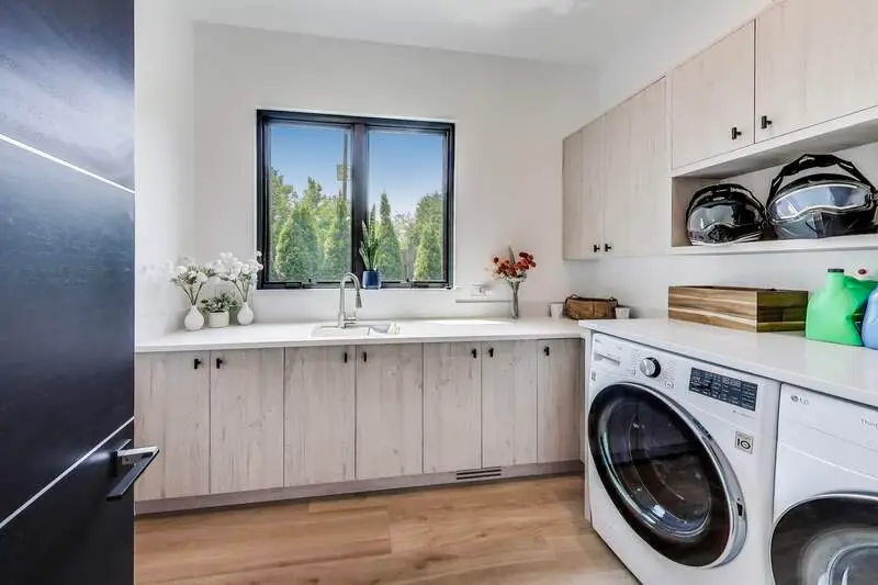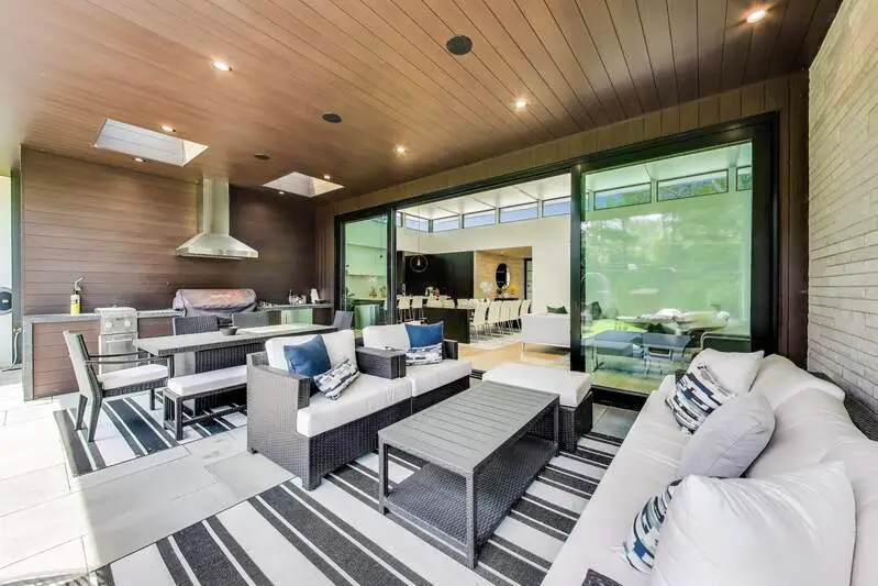 Modern Luxury Meets Everyday Comfort in a Prime Location! Step into this custom-built modern ranch, completed in 2022, where striking architectural details and smart design converge in perfect harmony. Soaring 14-foot ceilings and expansive windows flood the open floor plan with natural light, creating a bright, welcoming atmosphere throughout. At the heart of the home lies a chef's dream kitchen, featuring top-of-the-line Miele appliances, custom cabinetry, and an oversized island with a prep sink-perfect for both entertaining and daily living. The primary suite is a true retreat, with a spa-inspired bath boasting a freestanding soaking tub, spacious glass-enclosed shower, dual vanities, and an impressive walk-in closet. Each secondary bedroom includes its own en-suite bath and walk-in closet, offering comfort and privacy for family and guests alike. The fourth bedroom provides flexible space for a guest suite, home office, or creative studio. Entertain or unwind in your outdoor living room, where all but one wall is enclosed. Outfitted with a built-in grill, dual burners, Sonos sound system, and outdoor TV hookup, it's ideal for year-round enjoyment. Two built-in mudrooms-conveniently located at each garage entry-keep daily life organized, while the four-car garage with electric car hookup and epoxy floors adds modern convenience. The professionally landscaped yard is bordered by mature evergreens, offering both beauty and privacy. Smart security cameras accessible from any device provide added peace of mind. Ideally located in award-winning District 39 (Romona Elementary) and District 203 (New Trier High School), this home sits just across from the North Branch Trail and Harms Woods Forest Preserve. Enjoy nature, biking, and scenic walks just steps away, with easy access to top restaurants, Old Orchard Mall, parks, and the I-94 Expressway.