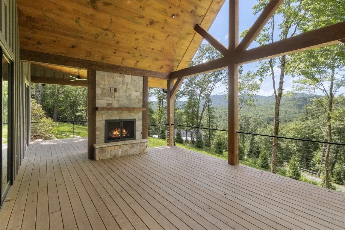 Set on 2.3 gentle acres just minutes from the pristine Lake Glenville, this stunning new construction offers an elegant mountain retreat designed to capture sweeping views of the Western North Carolina landscape. The three-bedroom home, thoughtfully planned over two levels, welcomes you with a grand great room featuring a soaring two-story vaulted ceiling and an expansive porch. Both spaces are anchored by inviting fireplaces, perfect for enjoying the crisp mountain evenings. The open-concept kitchen, equipped with Thermador appliances, flows seamlessly into the dining area, creating a warm, versatile space ideal for both intimate family meals and entertaining friends. Upstairs, a spacious loft leads to two generously appointed guest bedrooms, each with ensuite baths for the ultimate in privacy and comfort. With an attached two-car garage and gentle topography surrounding the home, this property combines convenience with natural beauty. Completed in 2025, this residence is designed to offer a refined lifestyle with a perfect blend of mountain charm and modern sophistication. Virtually staged photos are included to showcase the potential of the property.
