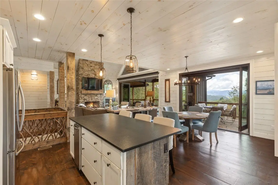 Experience an upscale outdoor lifestyle in the Chinquapin gated community. This home is situated at the end of a cul-de-sac on 3.28 acres with stunning long-range views from its spacious upper and lower decks. On the main level, large folding accordion doors open to the porch, filling the open living and dining area with natural light and beauty. This space features a striking stone wood fireplace, vaulted ceilings, and impressive design elements throughout. The spacious kitchen blends functionality with aesthetics, creating a feeling of openness and connection within the area. The main covered deck is equipped with a grand stone wood-burning fireplace for warmth and ample space for entertaining and dining. Inside, the main level features a luxurious primary suite, while the spacious lower level includes three bedrooms, two bathrooms, and plentiful space for hosting gatherings and relaxing. The lower-level family room opens to a large lower deck with a hot tub - providing further possibilities for entertaining or enjoying the mountain views. The community of Chinquapin offers a perfect blend of social and outdoor amenities while preserving the privacy of a classic mountain home. With miles of trails, pickleball courts, a driving range, fishing facilities, a dog park, and a clubhouse featuring fun social spaces, a fitness room, and a calendar of seasonal parties, there are plenty of activities for everyone. With its spacious porch to enjoy an evening drink after a day of outdoor adventures and take in the stunning long-range views, this property offers the ultimate mountain experience.
