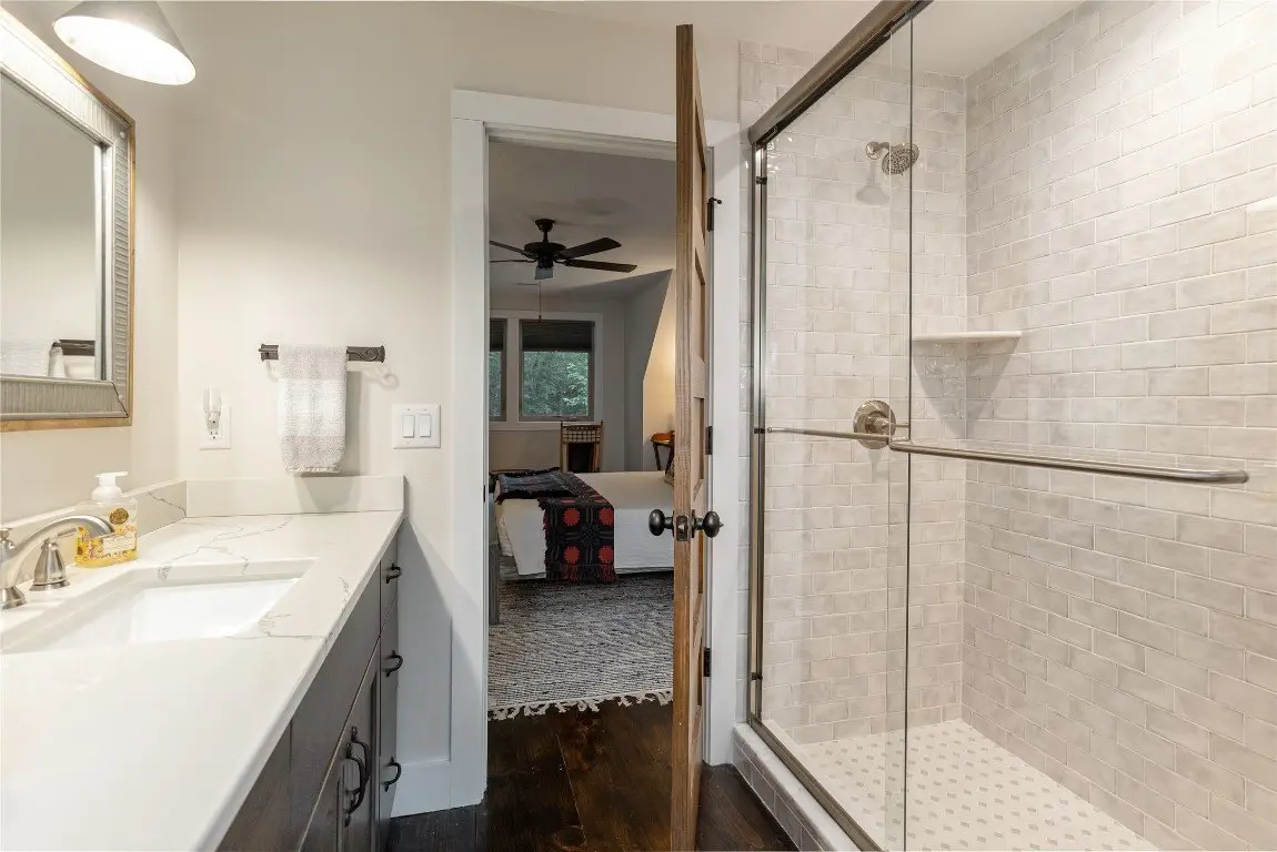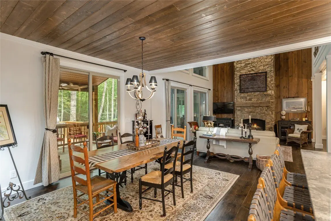 Experience the perfect harmony of easy outdoor living and tranquility at 1582 New Settler's Way, a mountain retreat crafted by Fern Creek Builders. Located in the desirable Chinquapin community, this three-bedroom, three-and-a-half-bathroom home offers a rare opportunity to own a piece of paradise, where classic mountain finishes blend seamlessly with serene natural surroundings. Inside, a thoughtfully designed floor plan features a welcoming rocking-chair front porch, two cozy fireplaces, abundant natural light, and low-maintenance finishes throughout. The spacious gourmet kitchen connects to a warm living area, perfect for entertaining or relaxing. An indoor-outdoor lifestyle is highlighted by a screened-in porch, a grill deck, and a stone firepit — ideal for enjoying starry mountain nights. The property borders a winding creek and is complemented by the gentle sounds of a nearby waterfall, making it an ideal retreat to spend time in nature. Whether enjoying a morning coffee on the porch or relaxing by the fire, the setting offers quiet serenity. Additional features include an attached two-car garage, ample storage, spacious ensuite guest bedrooms, and access to community outdoor amenities within the gated Chinquapin community. Chinquapin spans an impressive 2,000 acres with more than 700 acres dedicated to permanent conservation. This community offers park-like living with a host of unparalleled amenities. Scenic trails for hiking, biking, and utility terrain vehicles provide for an outdoor lifestyle, while fishing opportunities are available in the community’s lakes and streams. Pickleball courts, a disc golf course, and a driving range are also available just moments away. The Outpost Clubhouse provides a fitness facility, cozy gathering spaces, and seasonal live music during the vibrant Summer Concert Series. Whether relaxing by the firepit, canoeing along tranquil waters, or exploring the unspoiled natural surroundings, Chinquapin presents countless ways to connect with nature and neighbors alike. Offering unmatched ease of access compared with other available lots, this move-in-ready property at 1582 New Settler's Way promises exceptional peace, privacy, and refined mountain living, whether as a full-time residence or a mountain retreat.