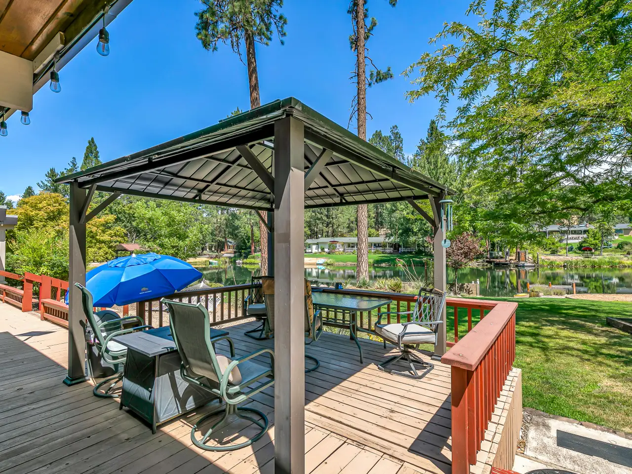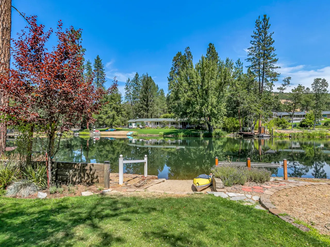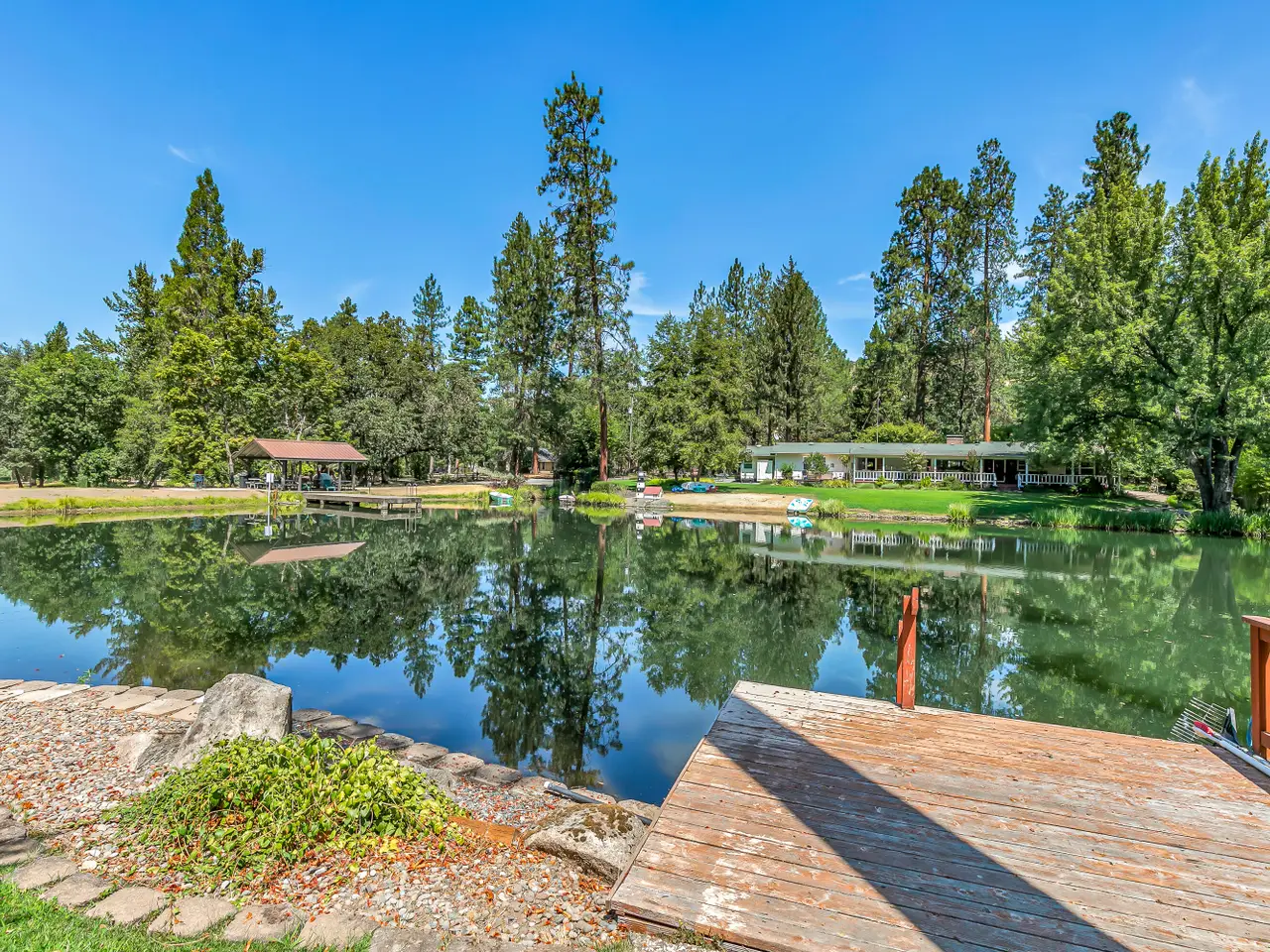 Located in the Gold Rey Estates Subdivision (only 10 mins from town), this 3200+ sq ft single level estate borders a private lake (350+ ft of lake frontage) that features 5 bedrms, 4.5 bathrms, 1.51 level acre lot w/ water rights, open floor plan, chef's kitchen (granite countertops, large island, custom Hawaiian Koa cabinetry w/ built-in pull-outs, tile flooring, large pantry w/ rotating shelving), vaulted ceilings, attached guest quarters (separate entrance way, full bathrm, bedrm, vaulted ceilings), detached 3 car garage, circular asphalted driveway, large deck, attached carport, & full RV hook ups! Owner spared no expense towards remodeling the entire primary bathroom w/ a spacious tiled walk-in shower, 3 sinks, & walk-in closet, installing metal roofs on the house, detached garage, & workshop, & enhancing the landscape. Seller is offering a one-year home warranty with an acceptable offer!