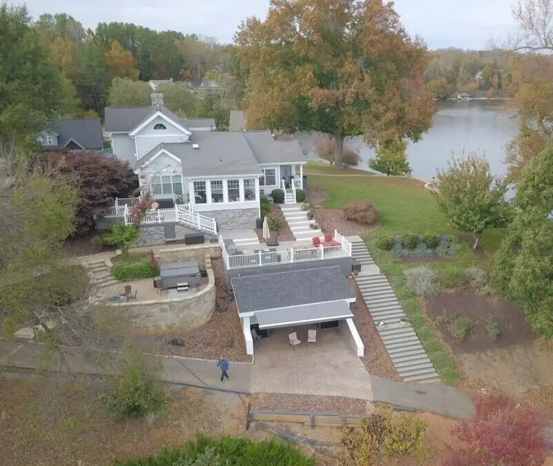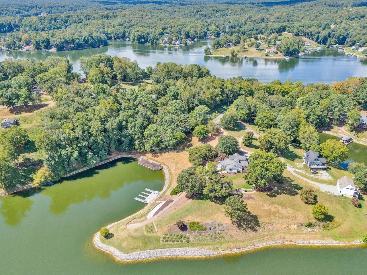 Lakefront Estate with Gorgeous Modern Farmhouse, Renovated in 2006. Beautiful Point with 700 ft of Shoreline, 3 Boatslips, Gourmet Kitchen with Luxury Ss Appliances including Subzero and Viking Gas Cooktop .Great Room w/ Wraparound glass overlooking the Lake. Wine & Coffee Bar, Bob Timberlake Stone Gas Fireplace, Entry Level Primary Ensuite w/Electric FP, Tiled Walkin Shower, Pella Windows & Doors, Incredibile Views, Multiple outdoor entertainment space including Cabana, Trex decks and patios including outdoor kitchen, hot tub and fire pit. Gated Entry.