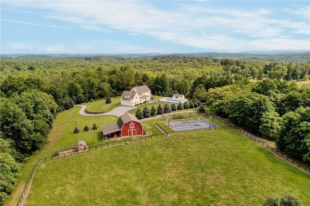 Rare Treasure! Incomparable, private, extraordinary, 46+ acre mini estate. 14 room, 6 bedroom, 3 bath colonial with panoramic vistas, 2 stocked ponds, 5 stall barn with water and electric, guest cottage with professional kitchen, paddocks, run in sheds, wine cellar, in ground salt water pool & cabana with lav., basketball/tennis court, trails, fields, nature, trees, wildlife and much more. Just minutes to historic Village of Goshen, Route 17, & access to Heritage hiking & running trail. Your own private paradise to experience the beauty of nature, farm, ride horses or possible subdivision with municipal water, sewer & gas now available. Quality craftsmanship abounds in this manor with formal moldings, hardwood floors, 3 brick fireplaces & chef's designer kitchen, in-law quarters & much more. Close to major shopping, Route 17, Legoland, historic Village of Goshen amenities in one of the county's hottest locations. One of a kind property that uplifts your spirits and has endless possibilities.