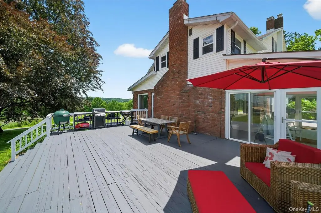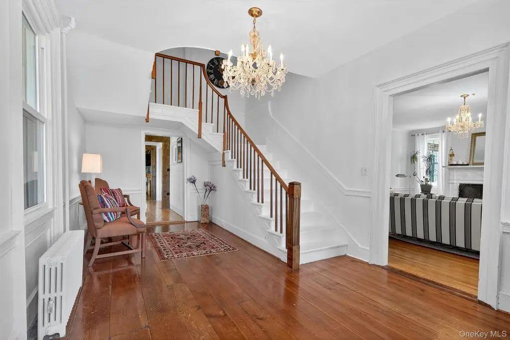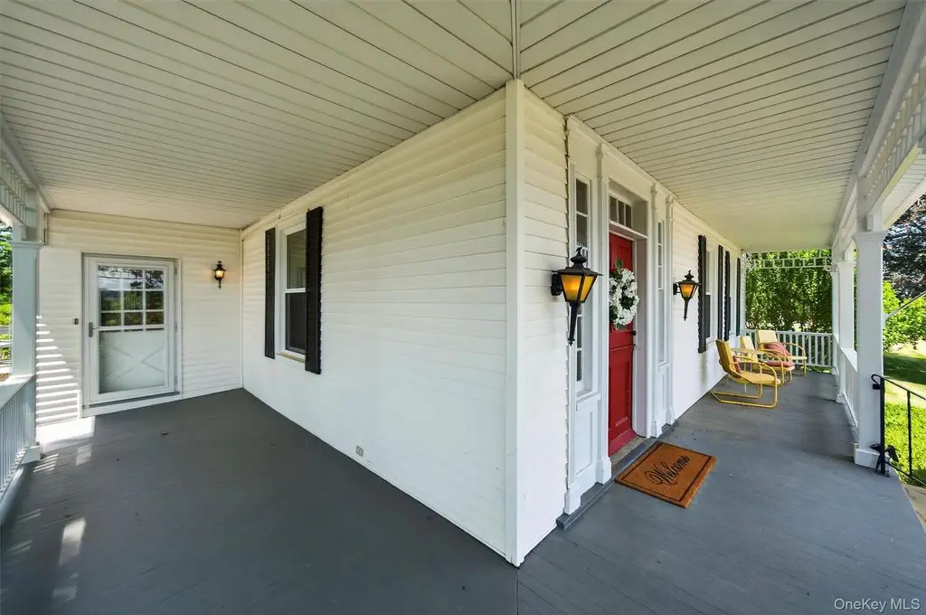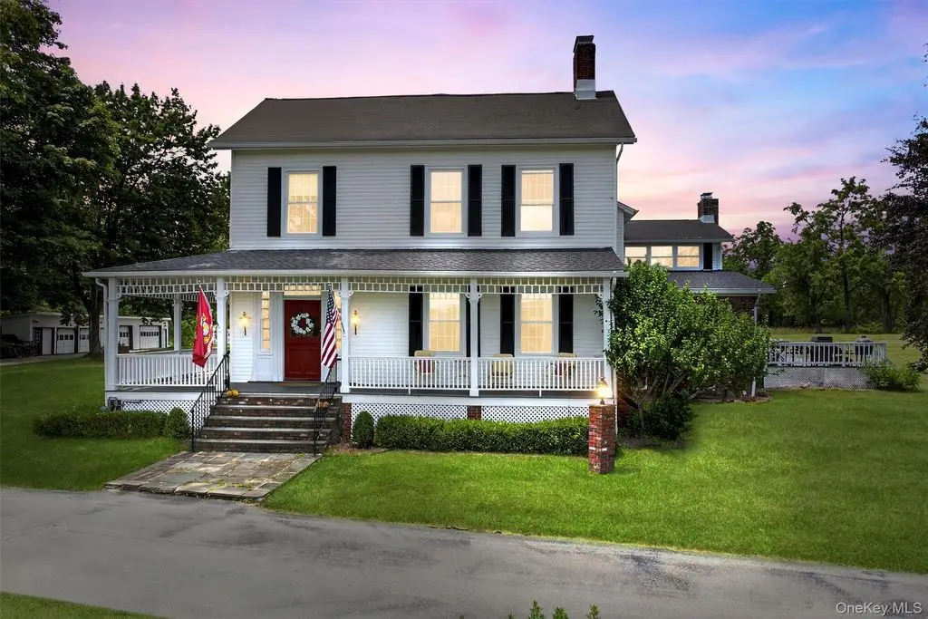 A masterpiece of historic grandeur and modern refinement, this distinguished 5-bedroom, 4-bathroom mini estate, originally constructed in 1760, stands as an exquisite testament to architectural excellence. Nestled on a sprawling 8.7 acre expanse, this estate embodies an era of craftsmanship rarely found today, with original wide-plank hardwood floors, exposed beams, and four stately fireplaces that speak to the home's rich colonial heritage. A sweeping grand driveway sets an impressive tone, leading to a distinguished wraparound porch entrance where a charming Dutch door opens to a residence imbued with warmth, sophistication, and timeless allure. Inside, every detail has been meticulously curated to harmonize historic character with modern luxury. The gourmet kitchen, a true showpiece, boasts top-of-the-line stainless steel appliances, gleaming quartz countertops, and a central island designed for both culinary excellence and casual gatherings. Just beyond, an elegant gathering parlor with wet bar provides an inviting space to connect, converse, and entertain while guests soak in breathtaking views of the surrounding landscape. The sunroom, drenched in natural light, offers a peaceful escape, seamlessly blending indoor and outdoor living. Architectural elements such as a grand main hall staircase, a walk-up attic, a discreet private back staircase, intricate millwork, and refined pocket doors elevate the home's sense of sophistication and historical depth. Beyond its doors, the estate unfolds into a sanctuary of outdoor splendor. Manicured grounds stretch gracefully toward a magnificent 20 x 40 Gunite in-ground pool, a striking focal point for both relaxation and recreation. The adjacent pool house, fully outfitted with a bath, shower, and wet bar, ensures effortless entertaining and leisurely afternoons spent poolside. Thoughtfully enhanced for contemporary living, the home features all-new windows, a foam-insulated attic, furnace, hot water heater, elegantly upgraded bathrooms, and a completely restored front porch each update executed with the utmost respect for its historic integrity. The newly roofed seven-car garage offers endless possibilities, catering to car enthusiasts, artisans, or those seeking a home office or workspace. This mini-estate offers a seamless blend of past and present thoughtfully curated for today's most discerning homeowner. Also, legend has it that Babe Ruth, Mickey Mantle and Cary Grant spent time in this home!