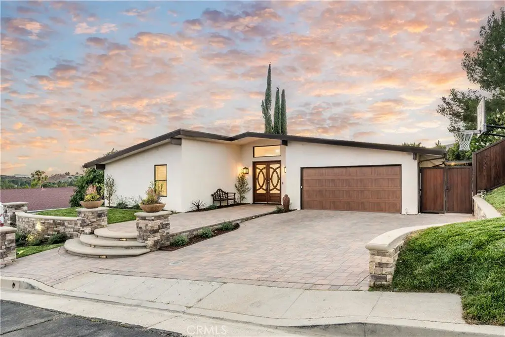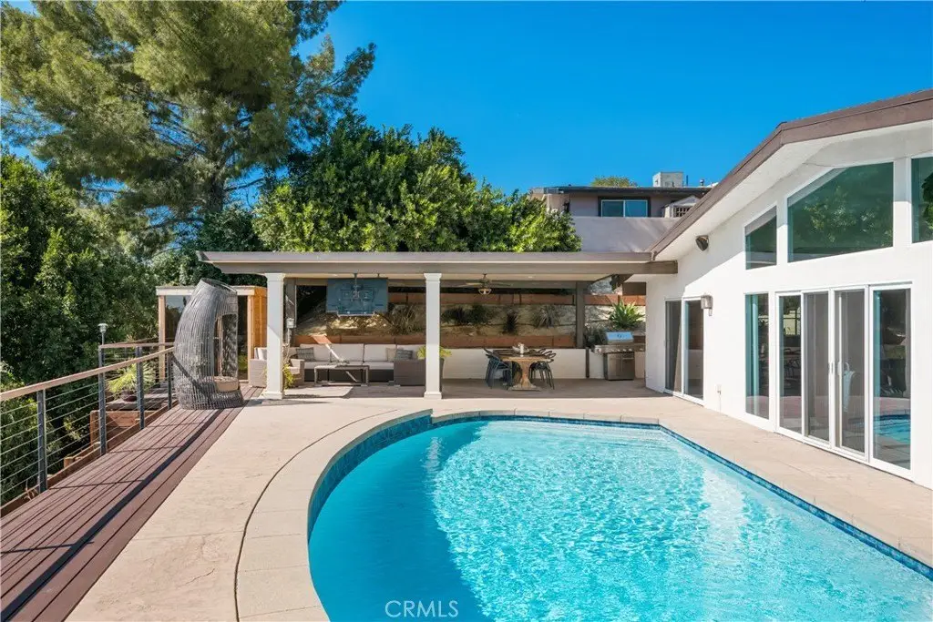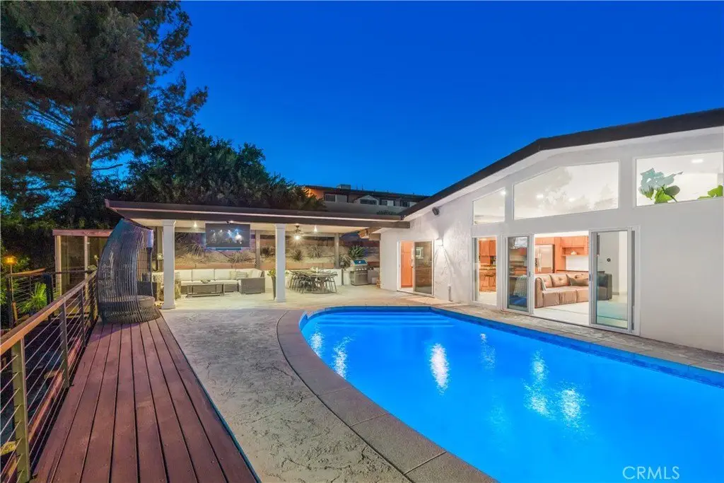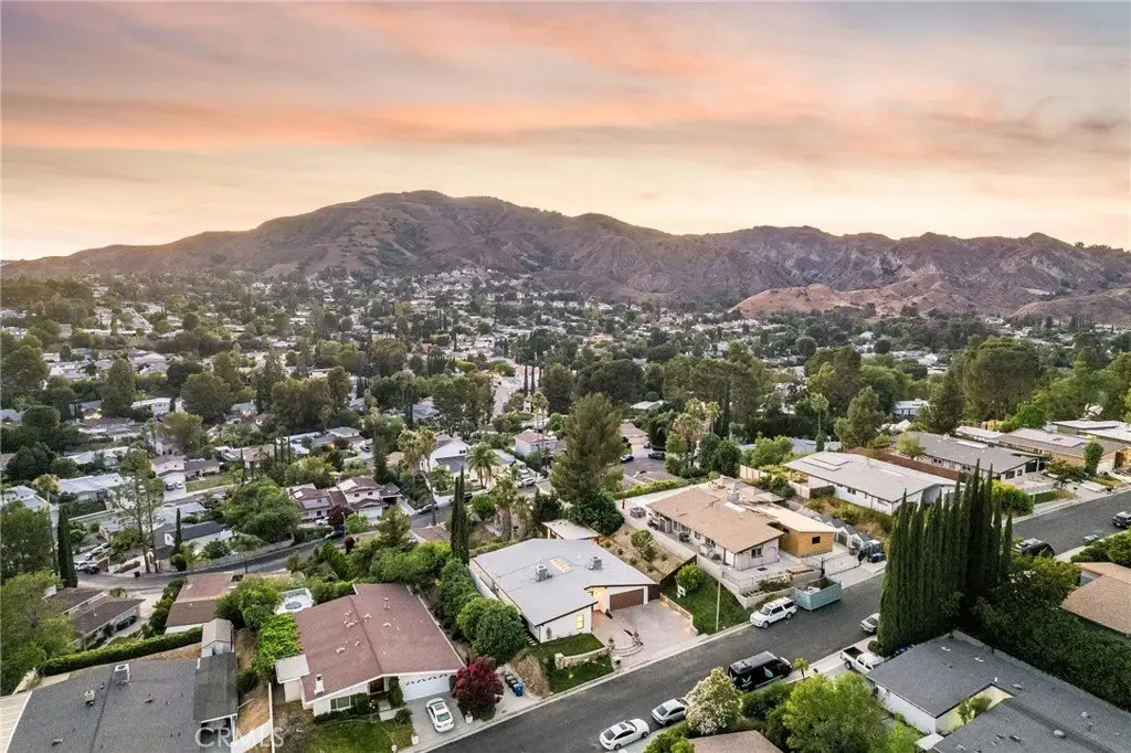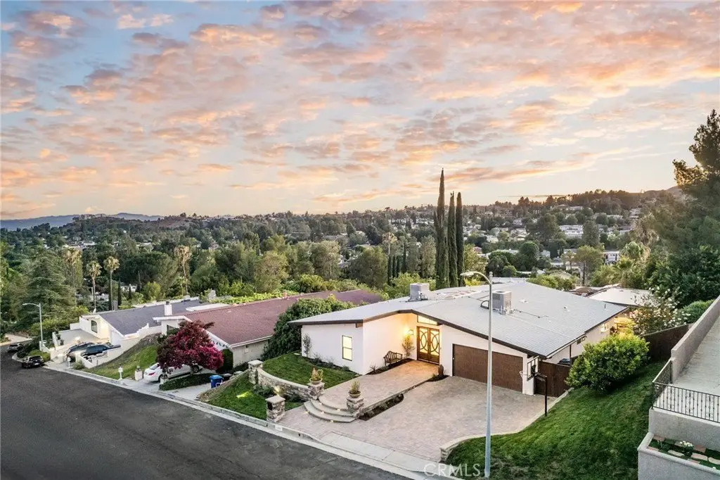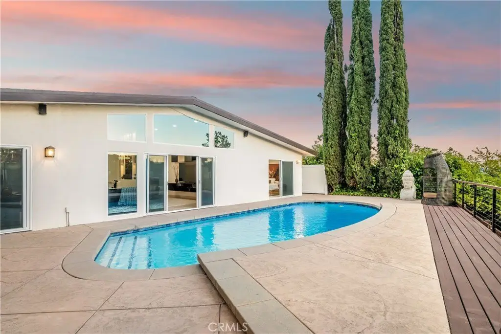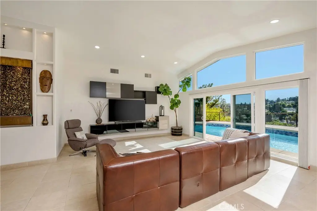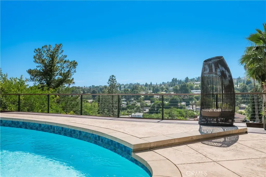 Welcome to this beautifully updated 4-bedroom, 2.5-bathroom modern View retreat located in Prime Granada Hills neighborhood North Of Rinaldi. Set on a quiet street with serene hillside views, this home blends mid-century design with luxurious indoor-outdoor living. Step inside through elegant double doors and be amazed what this true modern beauty has to offer. Natural light-filled open layout with vaulted ceilings with multiple skylights, tastefully remodeled all throughout. The spacious modern chef's kitchen with center island flows easily into the dining and living areas — perfect for family gatherings or entertaining guests. The resort-style entertainers backyard is made for California living — featuring a covered patio with a built-in TV, ceiling fans, outdoor dining and lounge area, dry sauna and a sparkling pool overlooking panoramic mountain views. Additional features include New LED recessed lights throughout, New entry chandelier and wall sconces, New interior paint throughout, Updated Central A/C & Heat, New side privacy fence, New landscaping & Sprinkler System, New Pavers and so much more. Truly A Must See!!!