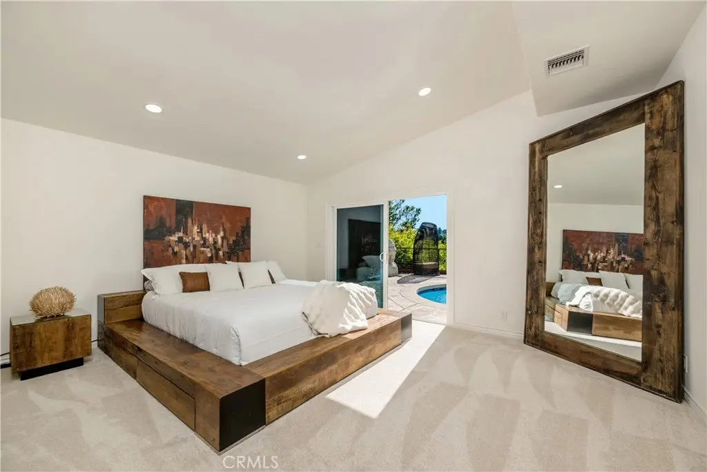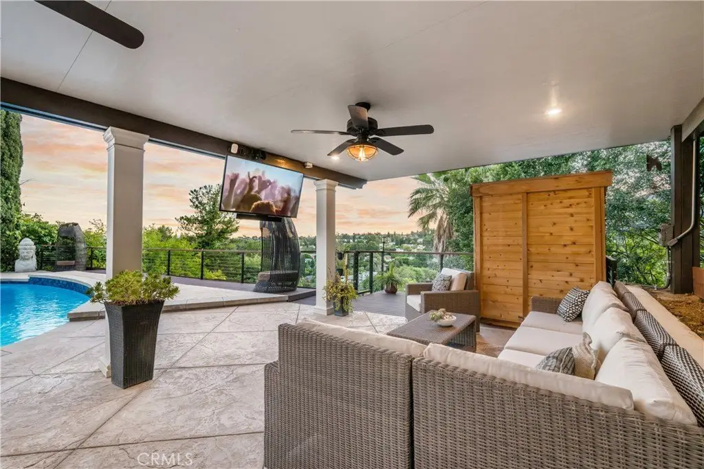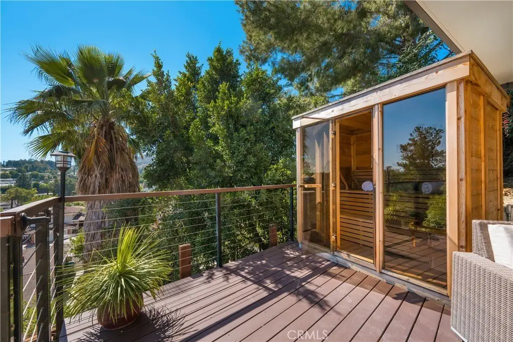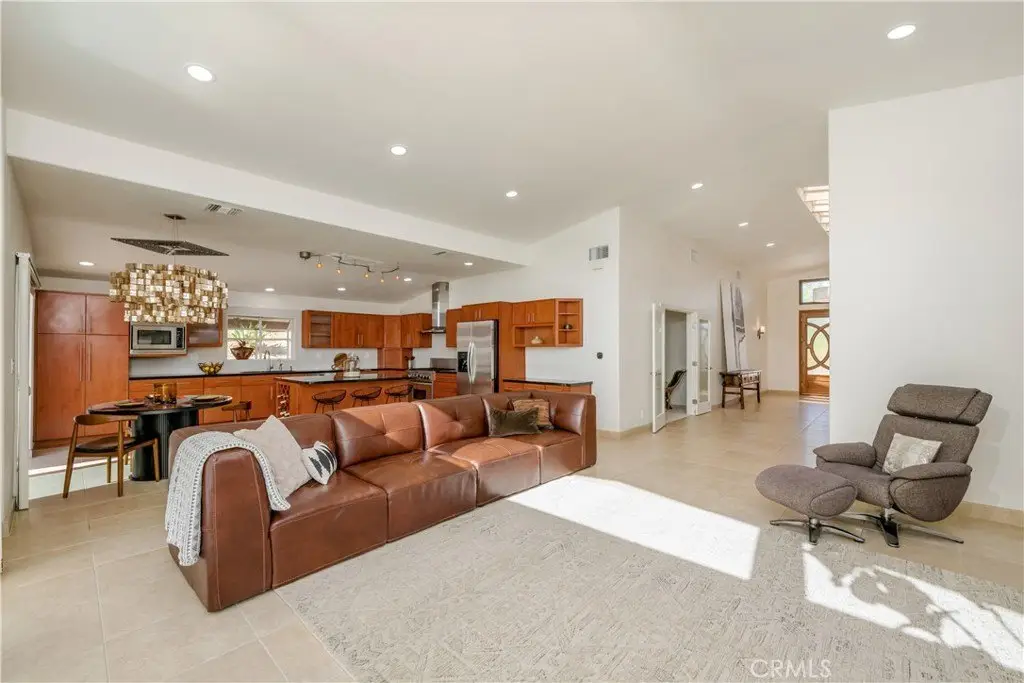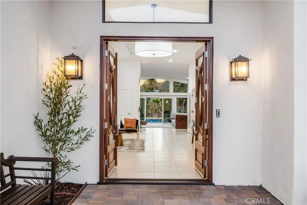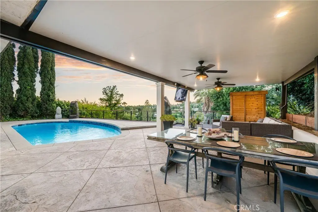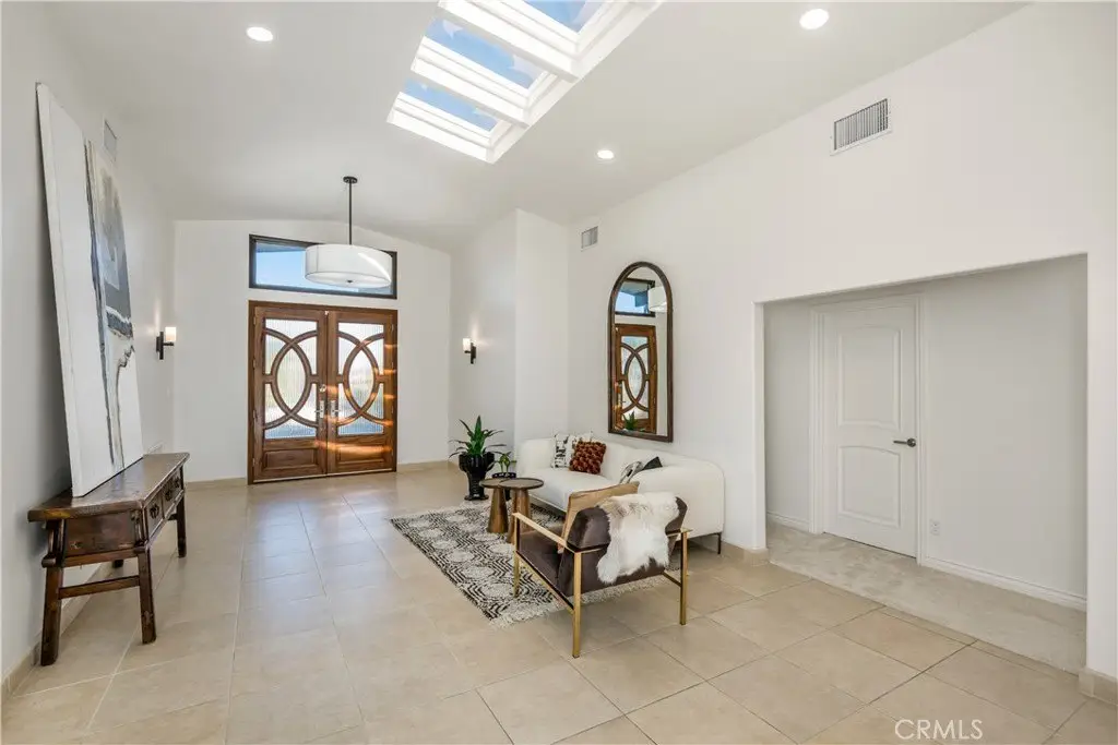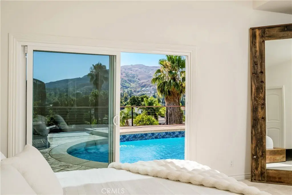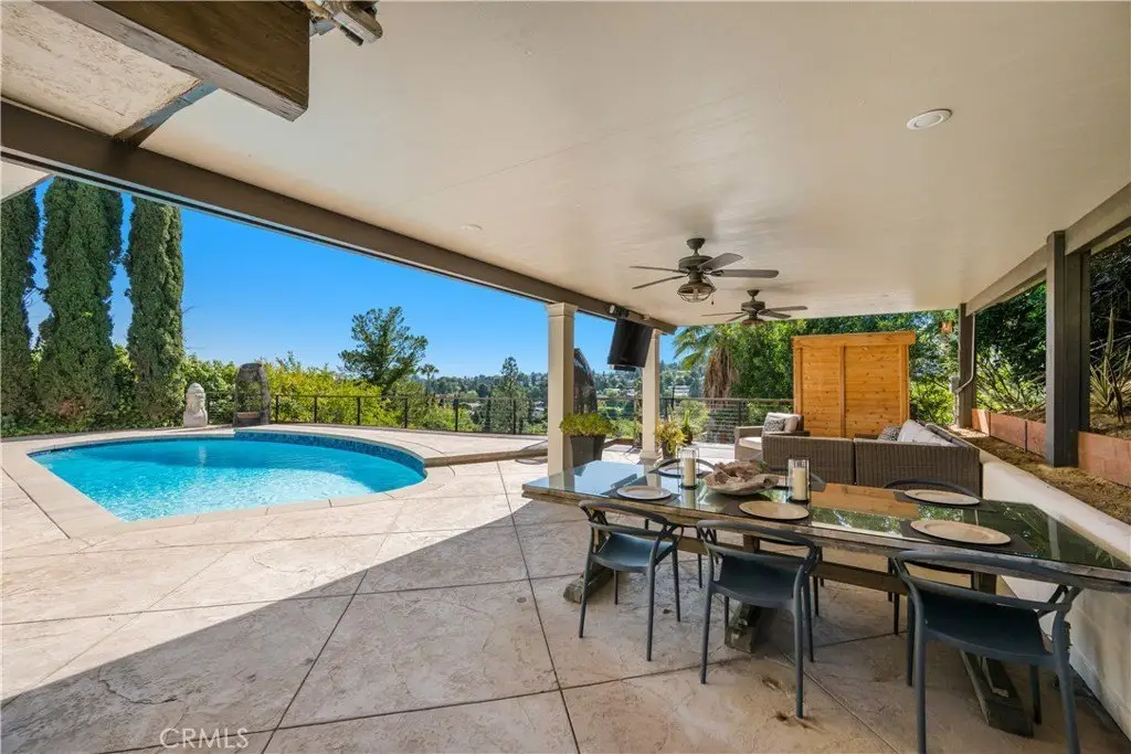 Welcome to this beautifully updated 4-bedroom, 2.5-bathroom modern View retreat located in Prime Granada Hills neighborhood North Of Rinaldi. Set on a quiet street with serene hillside views, this home blends mid-century design with luxurious indoor-outdoor living. Step inside through elegant double doors and be amazed what this true modern beauty has to offer. Natural light-filled open layout with vaulted ceilings with multiple skylights, tastefully remodeled all throughout. The spacious modern chef's kitchen with center island flows easily into the dining and living areas — perfect for family gatherings or entertaining guests. The resort-style entertainers backyard is made for California living — featuring a covered patio with a built-in TV, ceiling fans, outdoor dining and lounge area, dry sauna and a sparkling pool overlooking panoramic mountain views. Additional features include New LED recessed lights throughout, New entry chandelier and wall sconces, New interior paint throughout, Updated Central A/C & Heat, New side privacy fence, New landscaping & Sprinkler System, New Pavers and so much more. Truly A Must See!!!