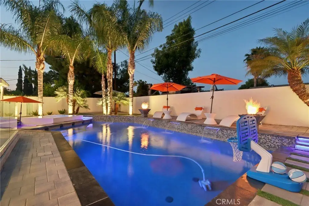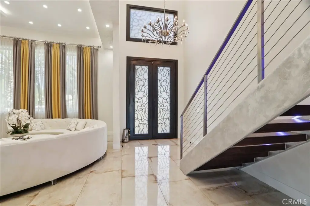 Granada Hills Stunner!!! Gated Mediterranean inspired two-story masterpiece where you find elegance in every inch in this home. An attractive exterior sets the tone for this remarkable home where quality craftsmanship meets modern artistic design with the variety of textures and materials that successfully come together for an elegant-yet practical appearance. Remodeled to perfection in 2018, this five bedroom, 5.5 bathroom beauty provides over 4,000 square feet of comfortable living space with lavish details throughout, including the bathroom with Spa Tub, large balcony overlooking the pool from the second floor, and so many wonderful features including Raxoll insulation and presidential three layered roofing. Creative custom double door entry with striking chandelier, foyer opening to the rest of the home with dramatic high ceiling, recessed lighting, Italian custom painting, tiles from Italy and Spain and a beautiful fireplace. You will appreciate the Mielle high-end appliances, the uniquely designed lighting system, LED smart control system, surround sound in the living room, family room and patio with security cameras around the house. All bedrooms and living areas are hardwired for network and TV. Just in time for Summer. Outside is an entertainer's paradise featuring pool/hot tub with water and fire features, the latest version of high-end Pantere pool equipment with a smart remote controlling system, covered patio with ceiling fans and built-in heaters, custom built covered BBQ area, outdoors bathroom and sauna and so much more. By far one of the best homes listed in Granada Hills today!