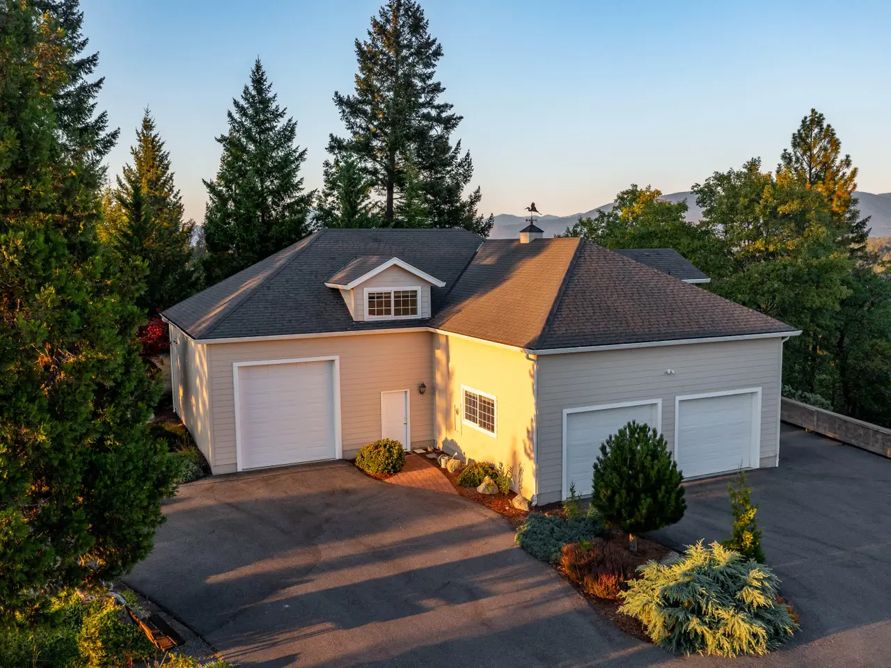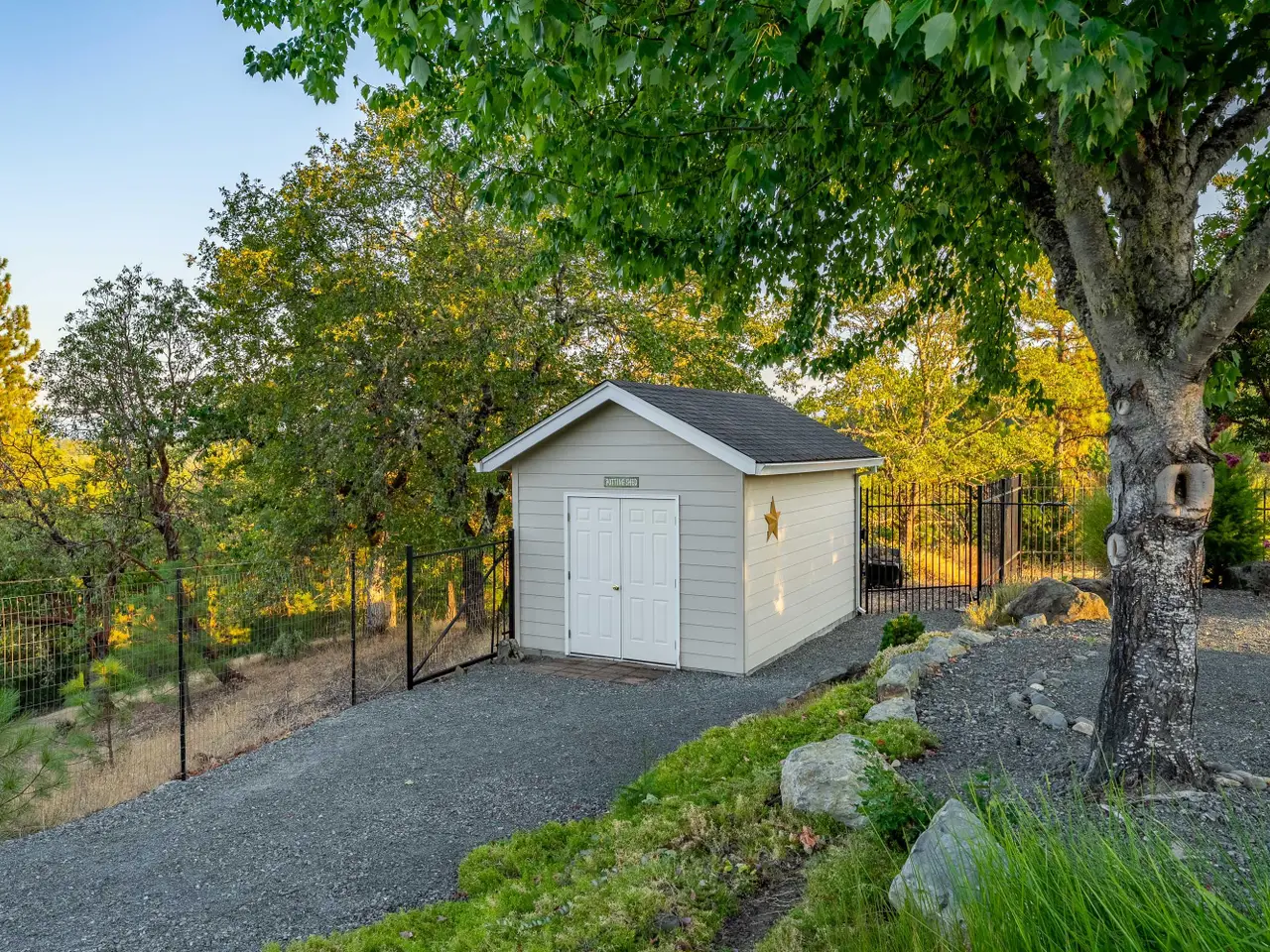 Welcome to this exceptional Grants Pass property offering a perfect blend of luxury, space, and functionality. The 4,011 sq. ft. home features 3 bedrooms, 2.5 baths, and a spacious two-car garage. The oversized primary suite boasts an expansive closet plus an additional storage space, while the large upstairs entertainment area is ideal for movie nights. Enjoy multiple living spaces including a formal dining room, formal living room, and a dedicated office. The 3,218 sq. ft. shop is a dream come true featuring a 10' tall automotive bay with hoist, two standard bays, and a second-floor apartment with bathroom. All garage doors are 10' wide, and central vacuum runs through both structures for added convenience. Outdoor amenities abound with a covered brick paver patio, fenced backyard with dog kennel, fenced garden with storage building, and additional structure for garden equipment. The paved driveway leads to an electronic gate, ensuring both privacy and ease of access.
