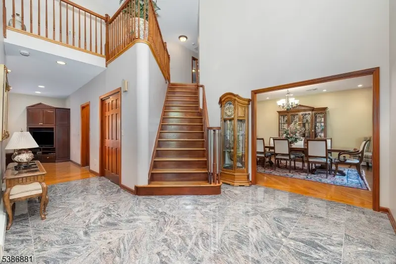 Welcome to 26 Green Valley Drive, Green Brook. This exceptional Central Hall Colonial home offers an unparalleled living experience within its expansive 4,804 sq ft. The captivating foyer, boasts high ceilings with natural light streaming through windows. The living room w/high ceilings and the family room with stone heart fireplace. A custom-designed kitchen with a center island, granite countertops, backsplash and floors, rich cherry wood cabinetry. A striking feature is the continuous granite flooring that elegantly connects the foyer and the kitchen. A sliding door opens to a deck, providing views of the private backyard. A true oasis of tranquility.The formal dining room has bay windows with picturesque views. The 1st floor bedroom, full bath and laundry provides convenient single-floor living.Ascending the impressive staircase, the 2nd floor reveals 4 bedrooms each w/his own walk-in. The luxurious suite feature two walk-in closets, a spa-like bath, shower and soaking tub w/double vanity,. An additional full bath adds to the convenience of this level. Hardwood floors extend throughout the entire house. The basement provides versatile space for entertainment, Two-zone CAC with new condenser, central vacuum and sprinkler system.This prestigious location offers unmatched convenience, with its proximity to parks, shopping, restaurants, and major highways. 26 Green Valley Drive is more than just a house; it's a home designed for comfortable, luxurious living. Chimney flue as-is.