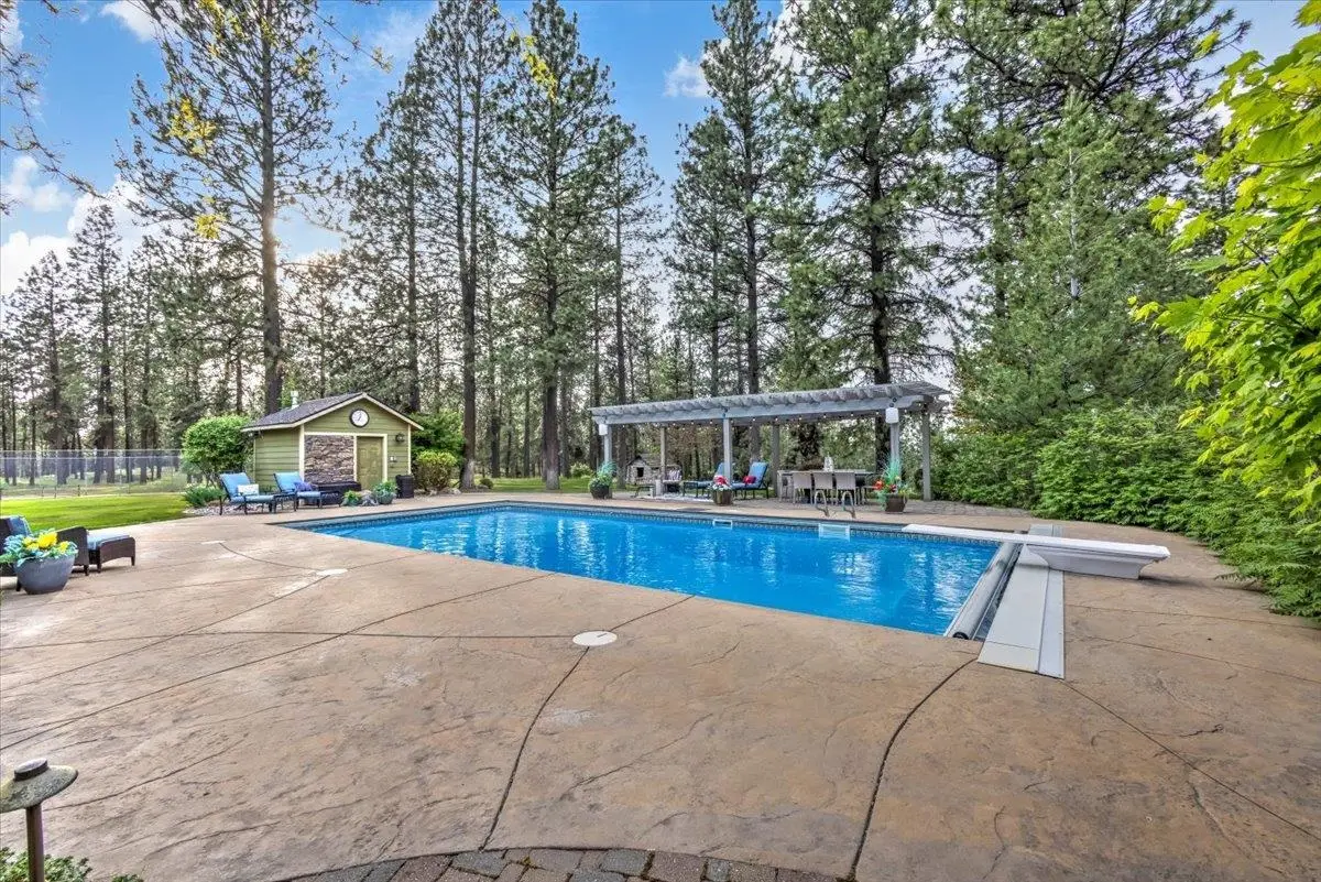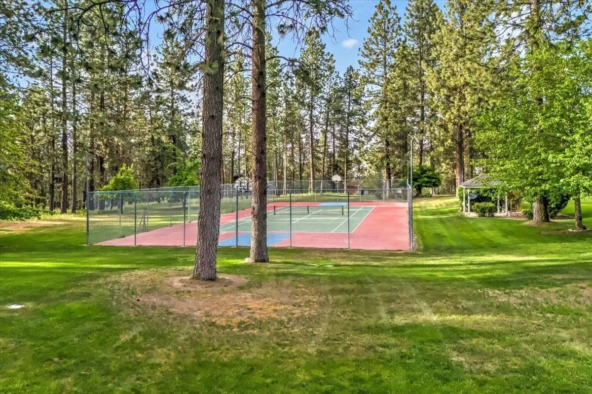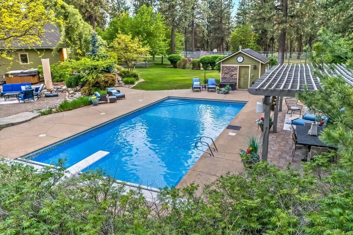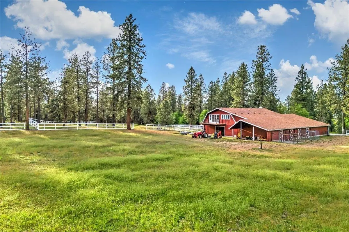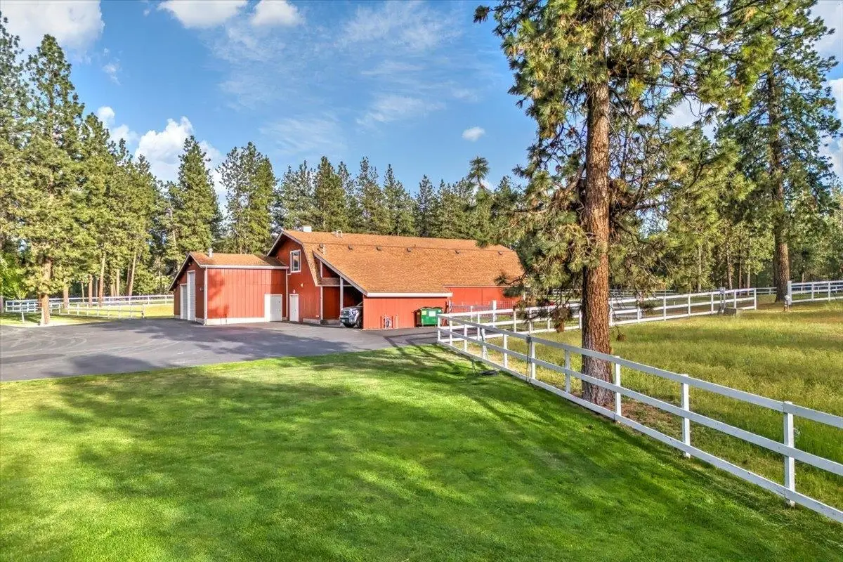 LUXURIOUS PNW ESTATE! Experience one of Spokane's Premier Properties nestled in the trees on 11.3 acres! This meticulous & serene home is an entertainer's dream featuring privacy, sweeping views, gated entry, tree lined driveway, full size tennis court, incredible 20x40 saltwater pool, paver patio, tranquil water feature, pond & cozy fire pit. Equestrian lovers will enjoy the lavish 12-stall Barn/versatile 5222 sf shop complete w/ 2bed/1Bath 1400 sf guest quarters above. This Exquisite 7bed, 5bath Estate boasts 7,210 sf & has been thoughtfully designed w/attention to detail & quality throughout. Incredible gourmet kitchen boasts a built-in stainless fridge, custom cabinetry, 6-burner gas range, wet bar w/wine fridge, formal & informal dining spaces. Extensive use of beam & log throughout & breathtaking sunroom you must see to believe w/ walls of windows & skylights. The primary suite is a haven of luxury with attached office w/ fireplace, sitting area, soaring ceilings, large tiled shower & 2 walk in closets.