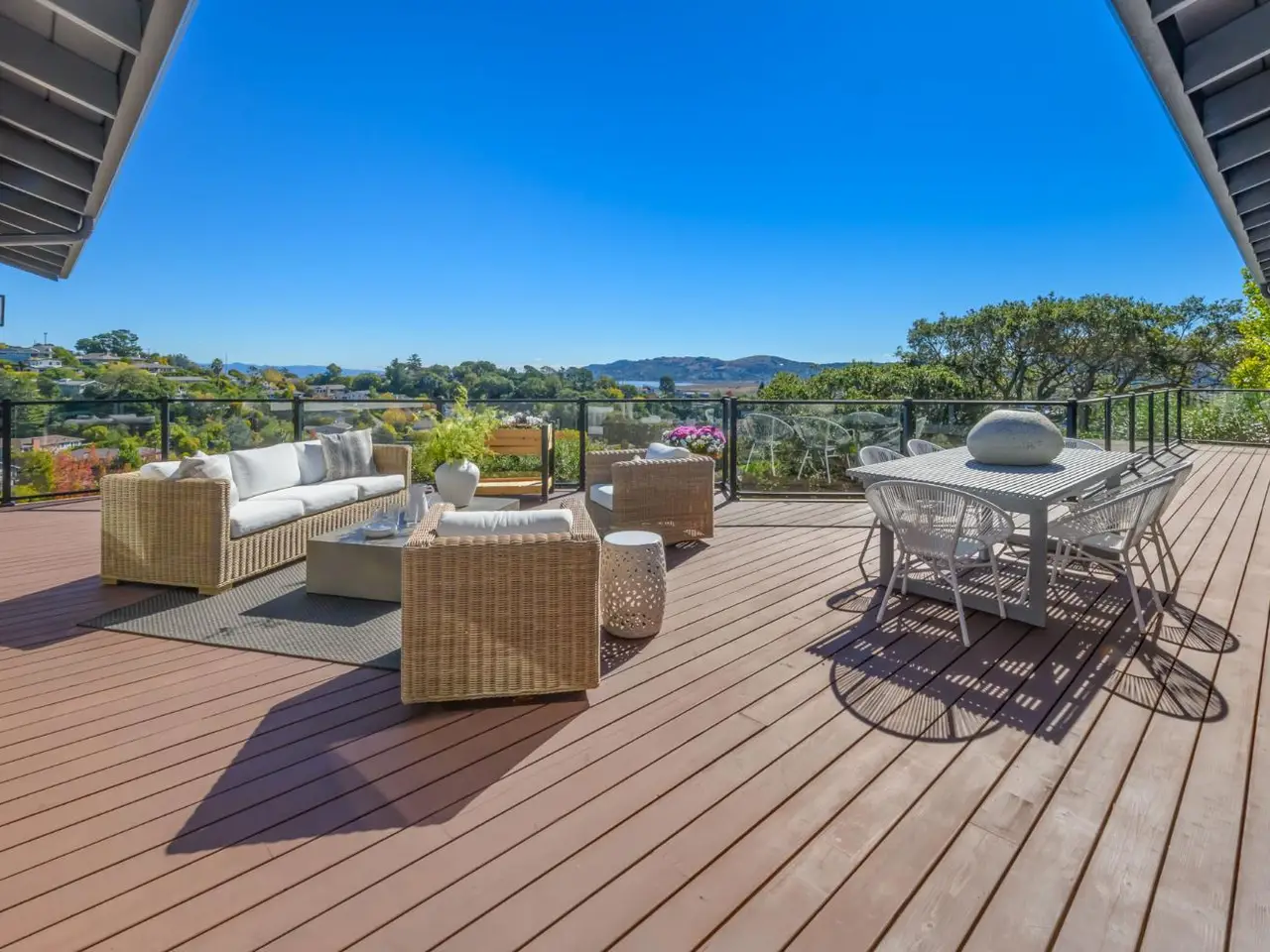 Handsomely remodeled 4 bedroom 2 bath Greenbrae home with sweeping views of the bay. This home features a beautifully remodeled chef's kitchen with large 10' island with waterfall edge quartz counters, spacious cabinetry, and professional appliances. Natural light pours in through the updated dual pane windows throughout the home. Located just off the kitchen and dining area is the large panoramic view deck with glass handrails that offers clear views of the San Francisco Bay, hills of Marin and East Bay hills in the distant. The primary suite is spacious and offers ample closet space with partially remodeled bathroom. Down the hall presented 3 more large bedrooms and a fully remodeled bathroom. New flooring throughout the home, newer roof, fresh interior and exterior paint, new lighting, updated landscaping, spacious side-by-side 2 car garage, and Tesla charger are some of the additional features of this home. With close proximity to the Larkspur Ferry, Hwy 101, Bon Air shopping, Greenbrae/Kentfield schools and everything else Central Marin has to offer.
