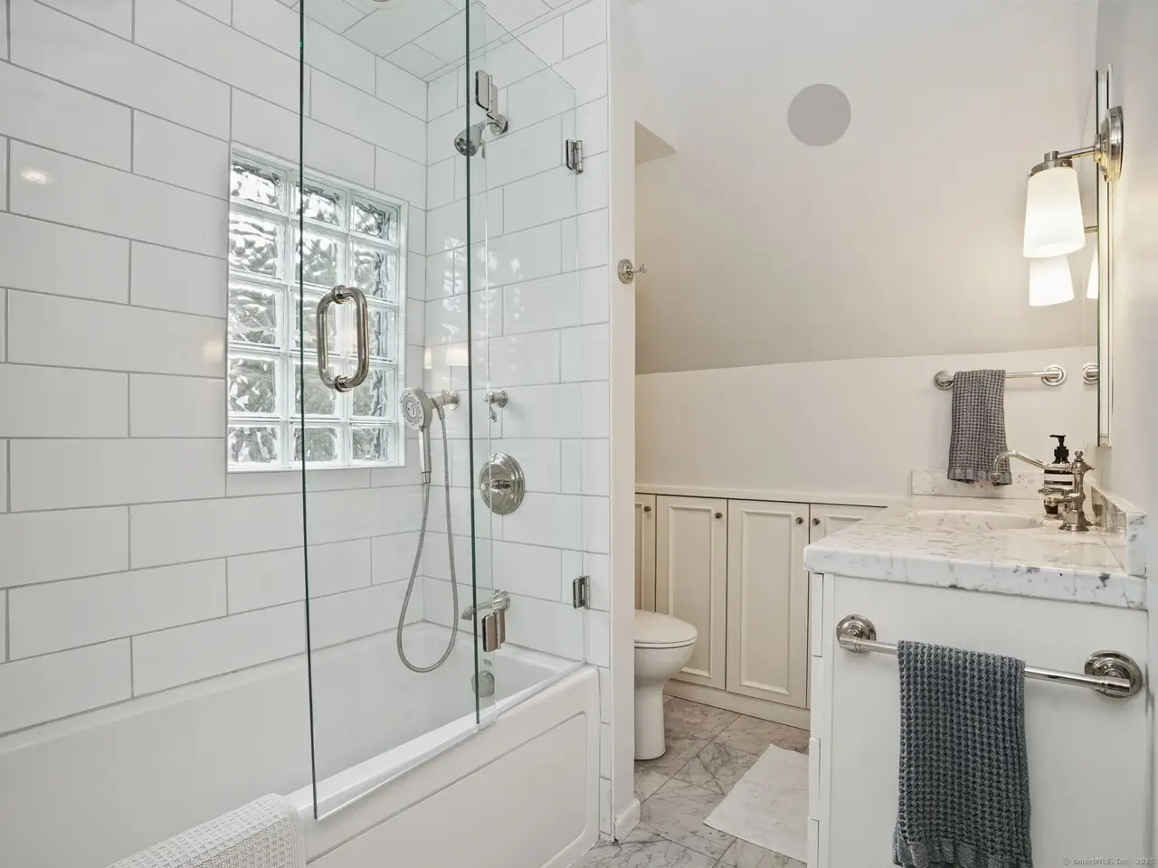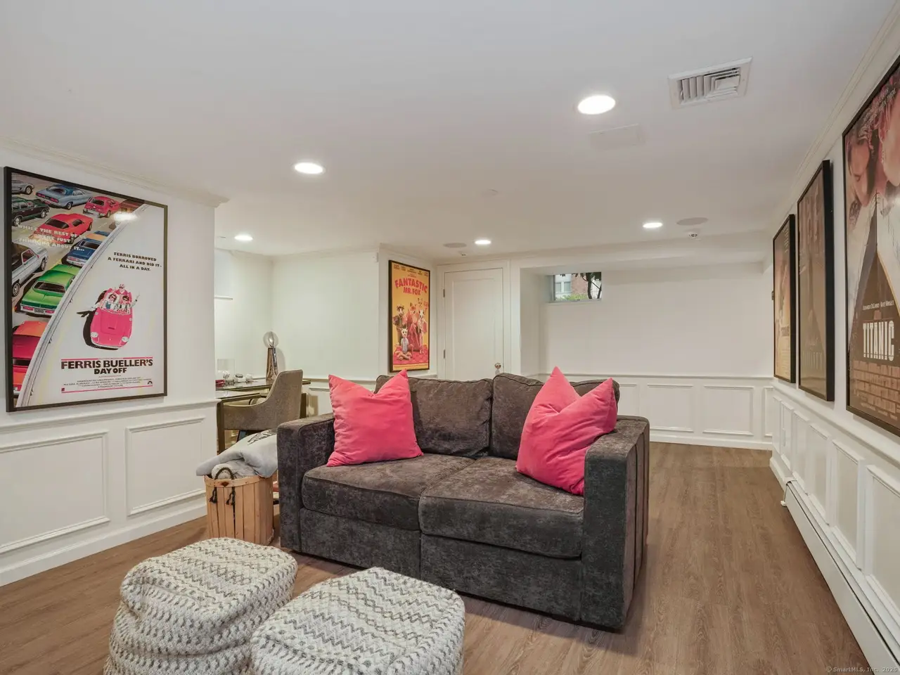 Impeccable home in a fantastic Riverside location close to Binney Park, Perrot Library, and the Old Greenwich Metro North station with adjacent village shopping and dining. Sidewalks lead directly to Riverside School and Eastern Middle School. The main level flows between family room, dining room, and kitchen and includes a windowed den for play-space, office, or sitting room. Upstairs has four bedrooms and two full baths, while the finished third floor provides ample space for office, workout, and storage. Lower level includes updated garage and laundry, plus a state-of-the-art media room that doubles as playroom or office. Spacious deck for outdoor entertaining and lounging overlooks a private backyard with custom gates and meticulously maintained English-style gardens surrounding the home. Additional features include exterior EV charger, full home water filtration system and partial generator.