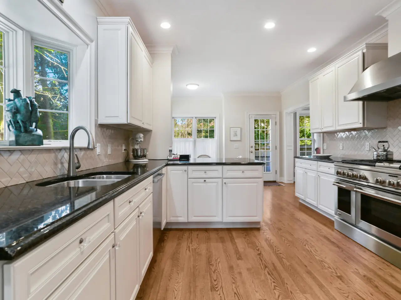Perfection near town. Attractive and well done 4-bedroom with recent updates is situated on a lovely, quaint private lane off lower Lake Ave. Built by a local & award-winning high-end builder, this home has great flow for today's lifestyle. Lovely foyer leads to spacious well-lit living room & formal dining. Also, off the main hall is the family room w/fireplace which is adjacent to the stylish kitchen. The primary suite w/fireplace has a tray ceiling & new luxury bath. Bonuses: playroom, exercise area w/high ceilings, custom windows giving an enormous amount of light. Landscaped level yard has a private terrace for entertaining & a mahogany floored porch for relaxing. 2 car garage w/double height ceilings & access to a huge loft for storage. Generator. Close to schools, town & train.