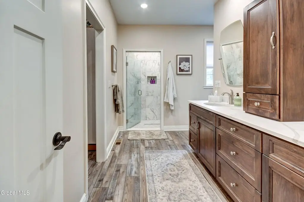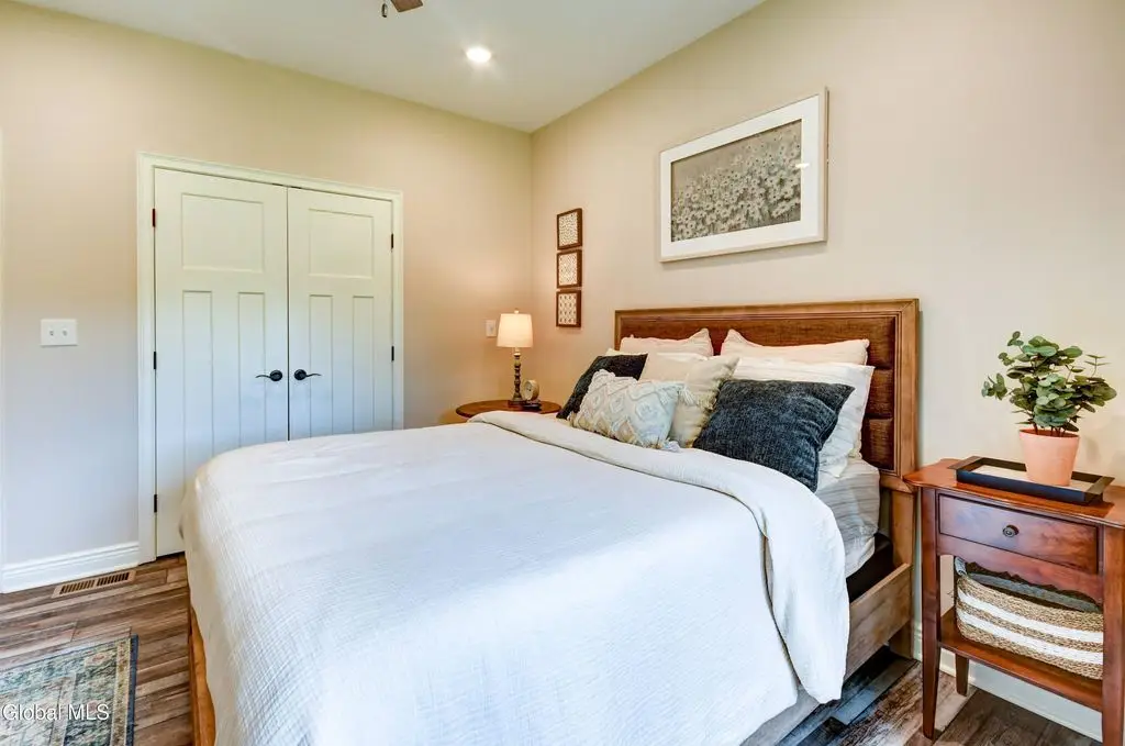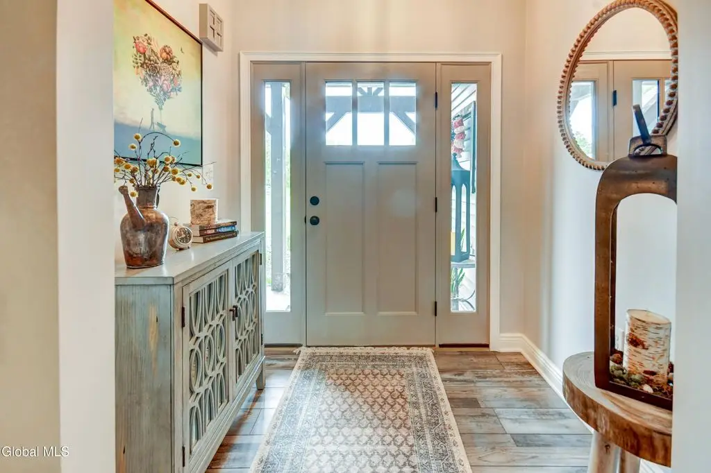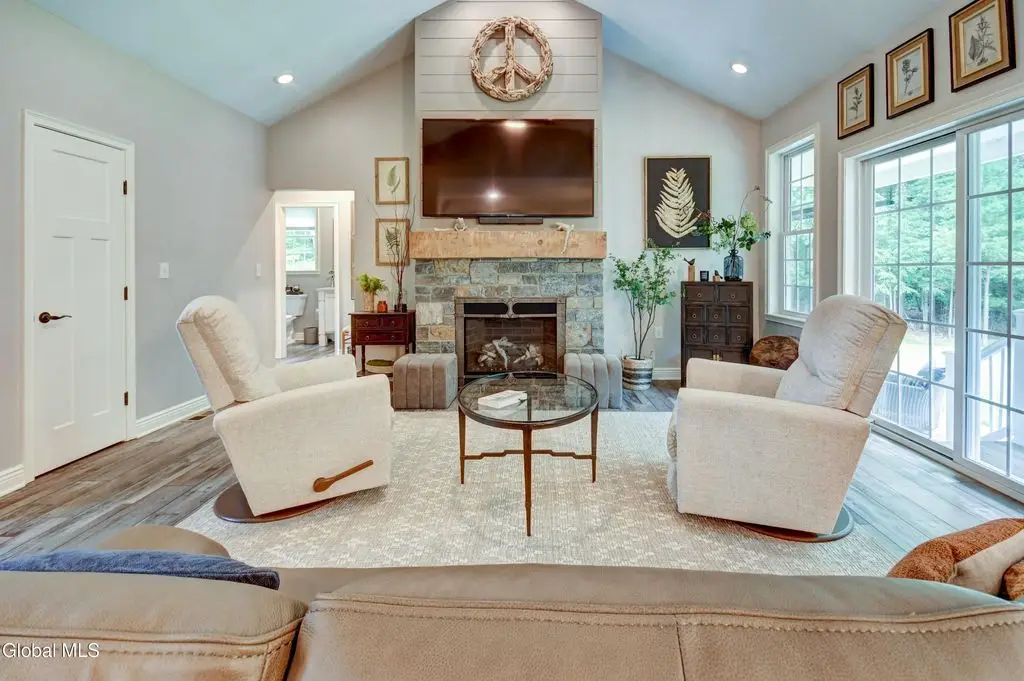 Set on 1.5 private acres in the Guilderland School District, this 1,800 sq ft 3-bed, 2-bath custom Craftsman-style ranch offers comfort and space in a serene setting. A long private driveway leads to a charming one-story home featuring a warm living room with gas-burning fireplace, spacious eat-in kitchen, and generous bedrooms. Enjoy the convenience of public water/sewer and an oversized 2-car garage. Surrounded by trees, yet minutes to shopping, schools, and highwaysC/B?B=this home blends quiet living with everyday access. Love the outdoors look no further, while staying close to home. Featuring beautiful wildlife & nature just outside your windows. a Complete wooded surrounding, A gardeners dream, driving an abundance of beauty & nature in your home Environment. ft. Perennial Garden & ...