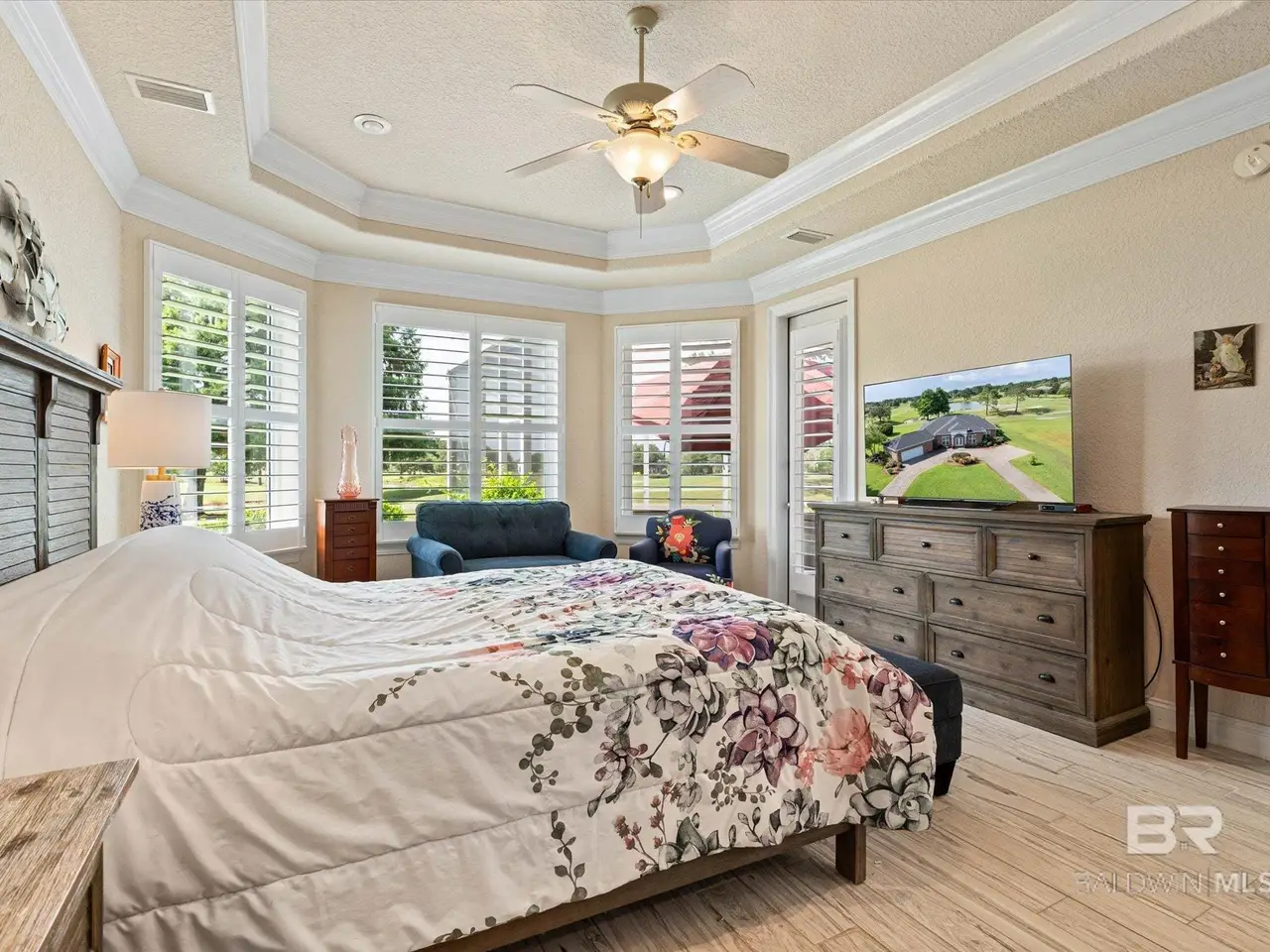 Understated elegance with a hint of modern accents is reflected in this home in the verdant golf community of Craft Farms in Gulf Shores, AL. Located in Cypress Bend Village off the 10th hole, the home showcases high ceilings, plantation shutters throughout, tile flooring, a separate formal dining room, and a large living room with a gas-burning fireplace. The kitchen offers newer quartz countertops and stainless-steel appliances that will make cooking and entertaining a dream. The primary bedroom and bath in the east wing of the house are both spacious and will easily accommodate all your needs; and the walk-in closets offer plenty of storage solutions. If work is what you require then retreat to the den/office through the beautiful French doors that also allow an easy view of the open living area. The additional bedrooms situated in the west wing of the home, will also provide additional space for you and your family. This home also includes a fully screened-in lanai, salt water pool and jacuzzi, and a water view that will please your senses. If you are an avid golfer then the garage was built with you in mind. Enjoy easy access to the top-rated golf courses with a separate golf cart entrance at the rear of the garage. The roof that was updated in 2020, and the AC's installed in 2019. The home is sold unfurnished and the mini fridge and ice maker will not convey. All measurements and dimensions are an approximation. Information deemed important to be verified by Buyer and Buyers Agentduring due diligence. Buyer to verify all information during due diligence Buyer to verify all information during due diligence.