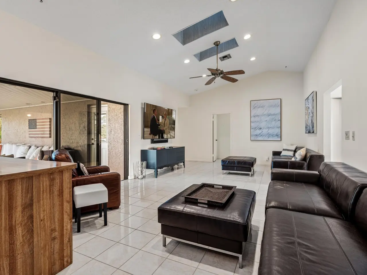 Enjoy as is, or re-envision, expand or rebuild. This Gulf Stream residence has 200 feet on the Intracoastal Waterway on a cul-de-sac lot of almost three-quarters of an acre. Views are unrivaled. The great room and primary bedrooms access the covered loggia and pool surveying serene sunrise views over the water to lush tropical landscaping that edges the exclusive private Gulf Stream Golf Course.