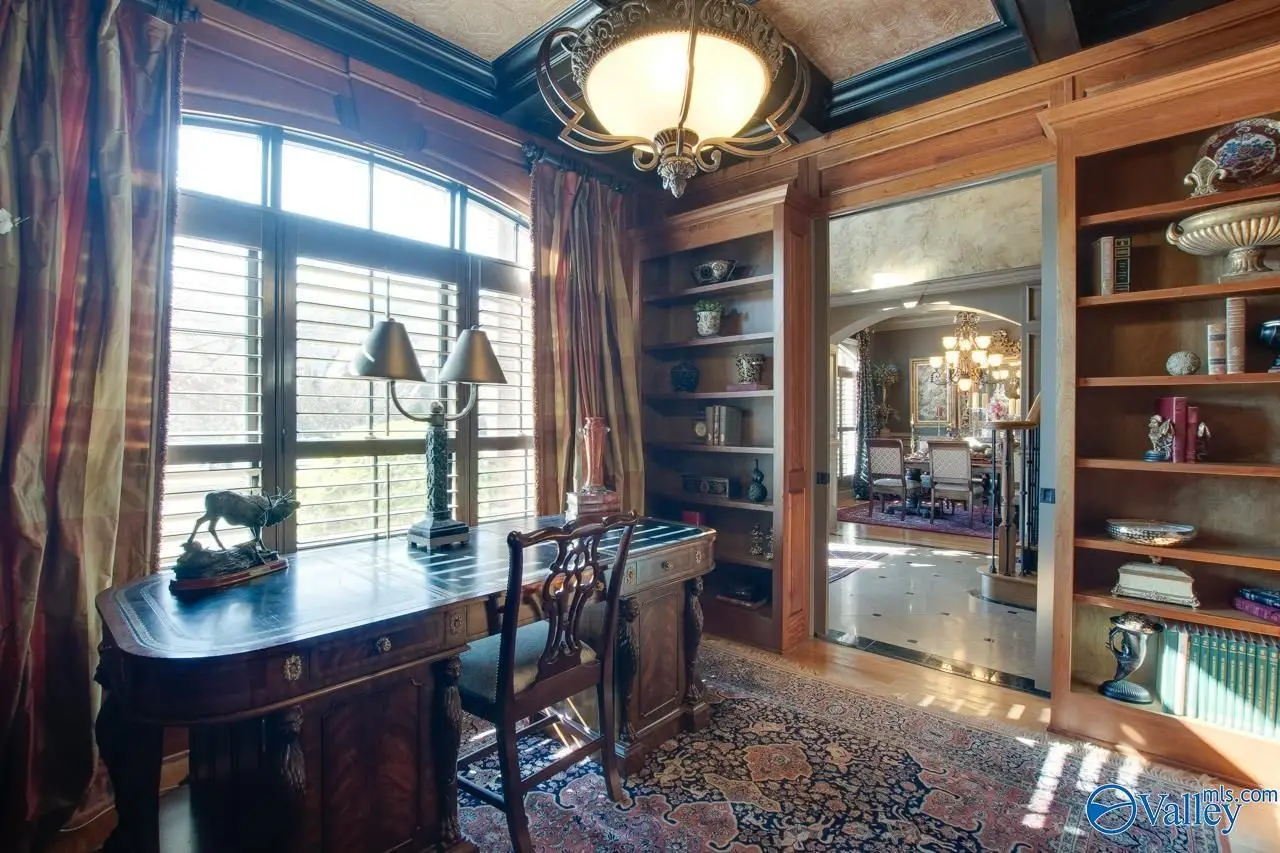 Executive living at its finest in prestigious McMullen Cove. Astounding front entry w/ double iron doors & Curved Stairway. Gourmet Kitchen w/ top of the line comm. granite, Sub-Zero, breakfast area, + Keeping Rm. Custom details thru-out, heavy detailed moldings & trim work, coffered ceilings, custom HWs, custom TL, custom cabinets, granite & the list goes on! Great Rm w/abundant of natural lighting. Main level Master on main lvl w/luxury GlamBa. Upstairs are 3 add'l BR's. BR 2 & 3 offer Private Baths. Rec & Media Rms. Enjoy the outdoor oasis, Covered Porch, Outdoor kitchen, lower patio, stamped concrete, Hot Tub, waterfall, & outdoor FP. Make this your dream home!