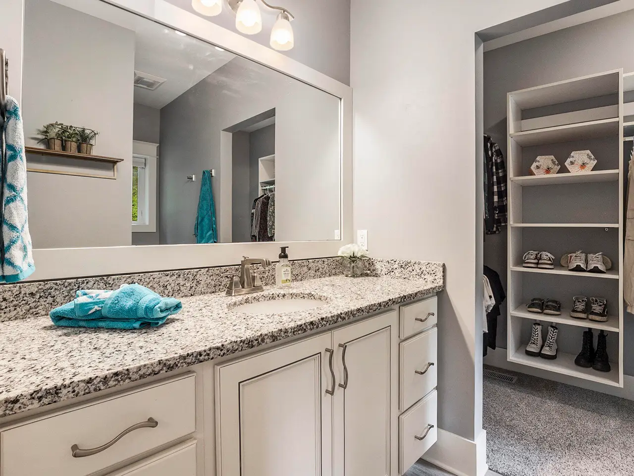 - Large kitchen island and stone counters