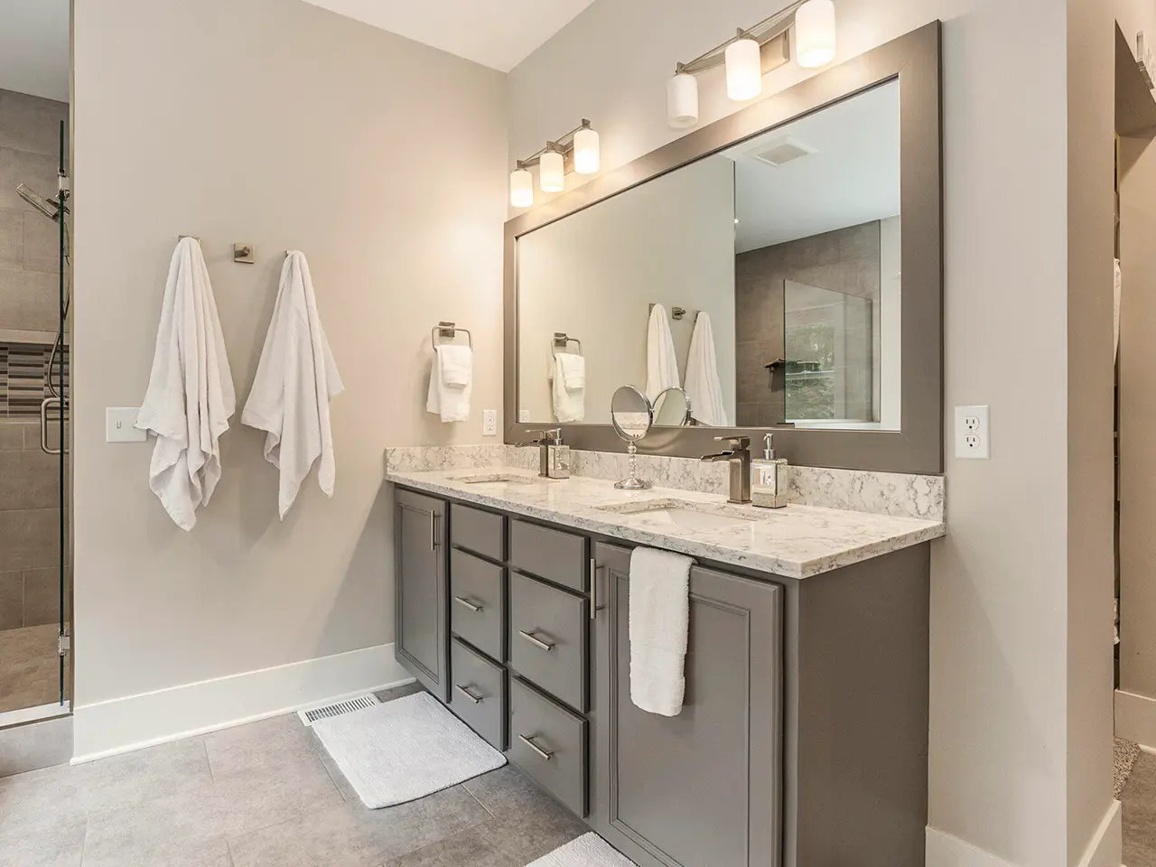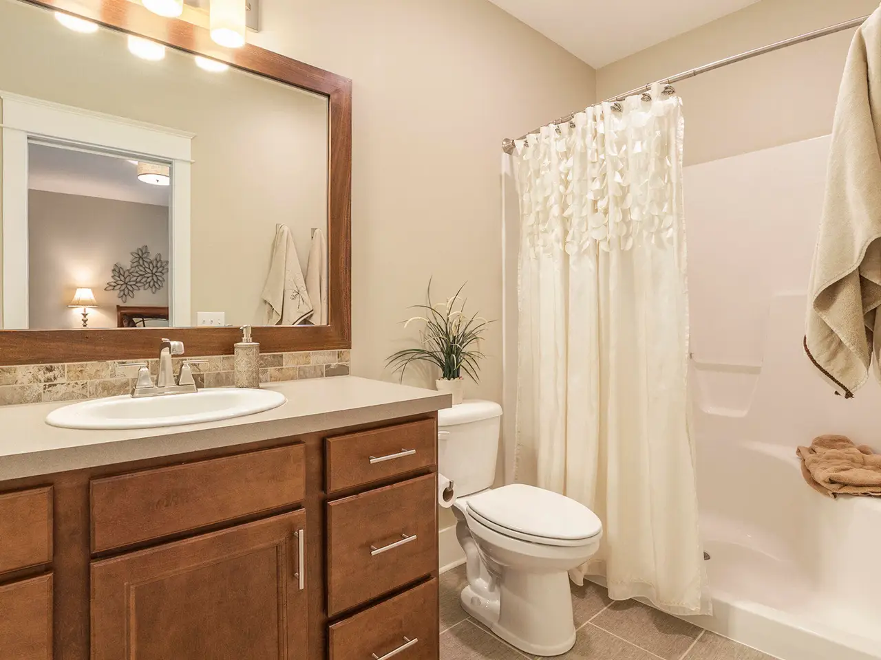 - Spacious tiled shower and large tub