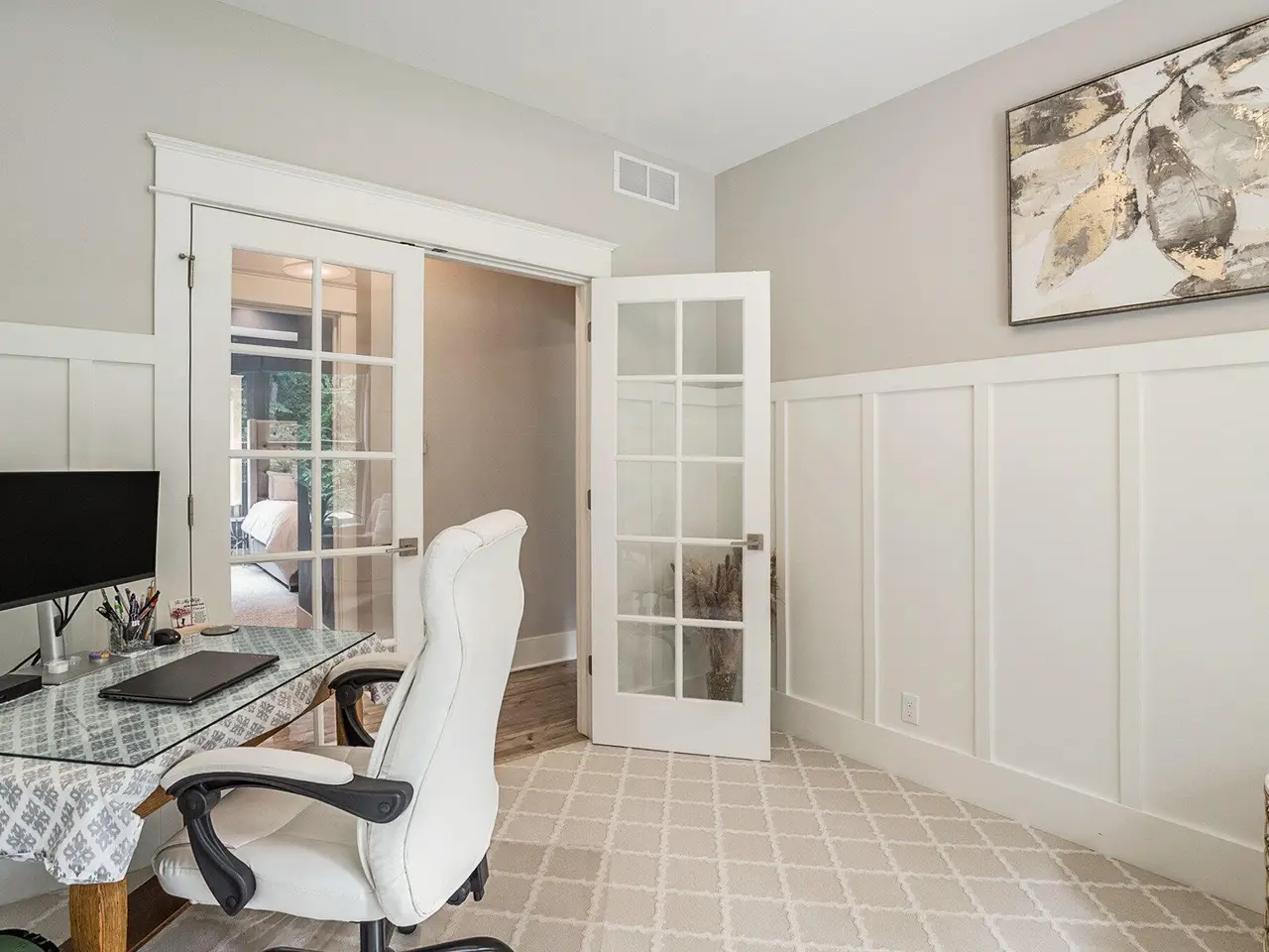 - Gas fireplace with built-in cabinetry