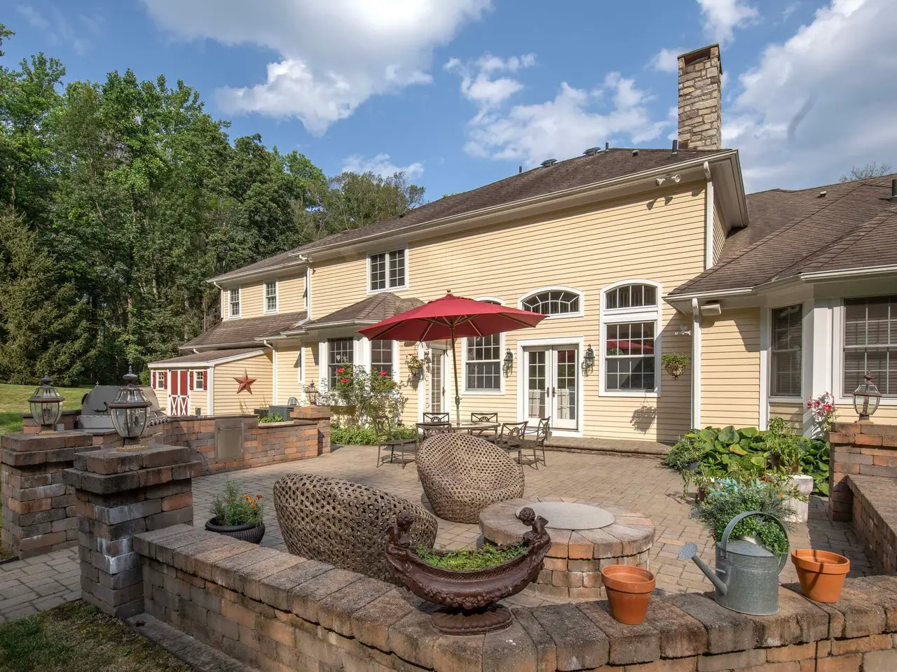 Elegant Custom Colonial in Harding Township Welcome to a stately custom Colonial nestled atop a gentle rise in sought-after Harding Township, known for its top-rated schools and close proximity to major commuting routes. With timeless architecture and a thoughtfully designed layout, this five-bedroom, four-and-a-half-bath residence combines luxury and functionality. A sophisticated interior designed with soaring ceilings and exquisite millwork lend character to every room. The elegant formal entrance foyer reveals sightlines into stylish living and dining rooms. At the heart of the home is a gourmet eat-in kitchen outfitted with premium appliances, custom cabinetry, an expansive pantry and a generous island. Opening from the kitchen is a two-story family room where the focal point is a floor-to-ceiling stone fireplace flanked by custom cabinetry. A convenient service bar with sink and beverage refrigerator is an added convenience. Walls of windows and French doors connect both the kitchen and family room to an entertainment-friendly patio and park-like yard. Another highlight is a spacious first-floor primary suite featuring a spa-like bath with radiant heat floors for ultimate comfort. Upstairs, four oversized bedrooms include two en-suite layouts and two bedrooms sharing a hall bath. The lower level provides even more gathering areas with a bar, media and recreation spaces as well as ample storage options. Step outside to beautifully landscaped gardens and a walled paver patio, where the built-in grill and custom fire pit create a perfect backdrop for al-fresco dining and warm weather enjoyment. This colonial is a rare offering in a highly desirable Morris County community, combining refined living spaces and everyday ease. Don't miss the opportunity to make it yours.