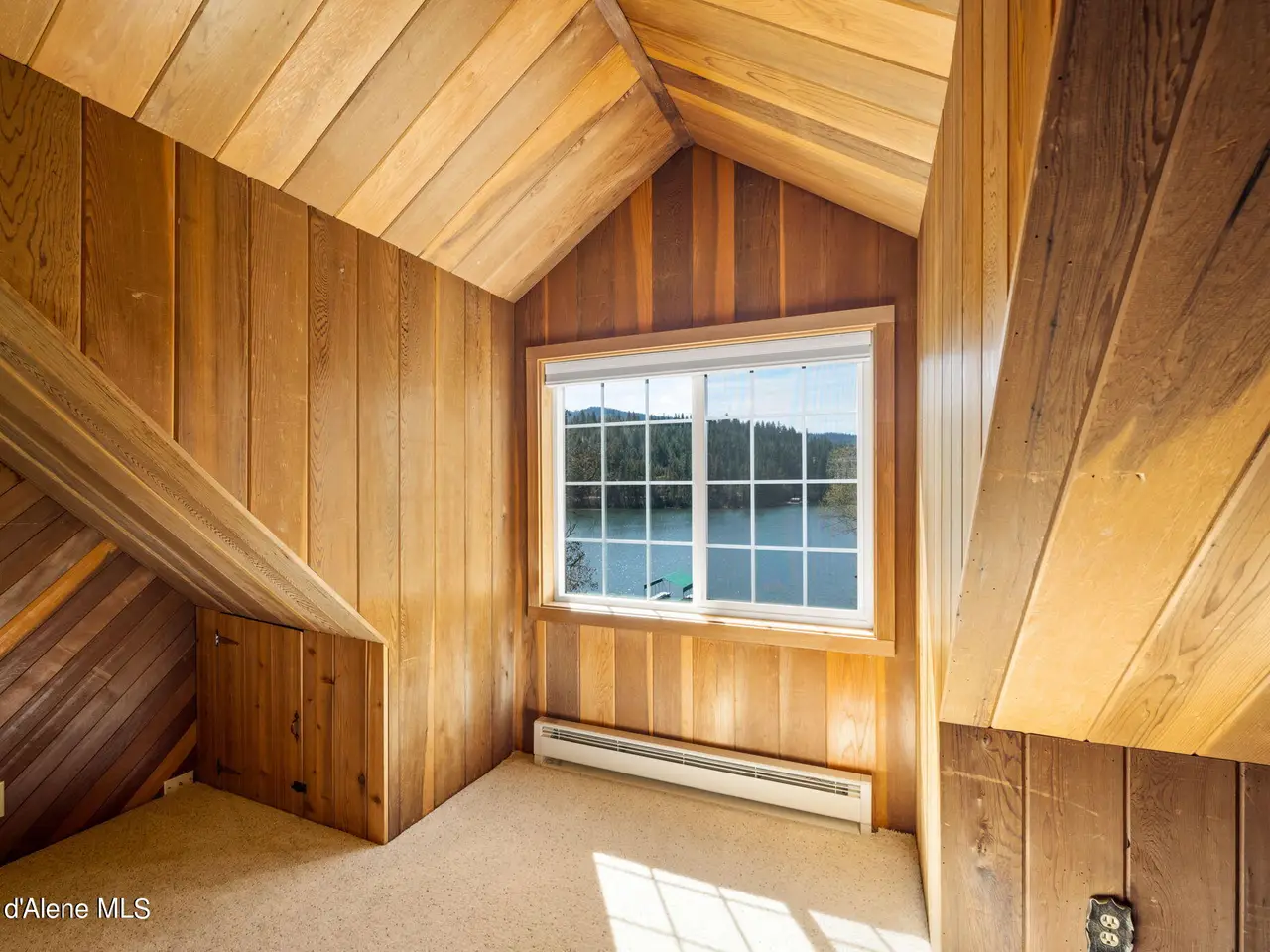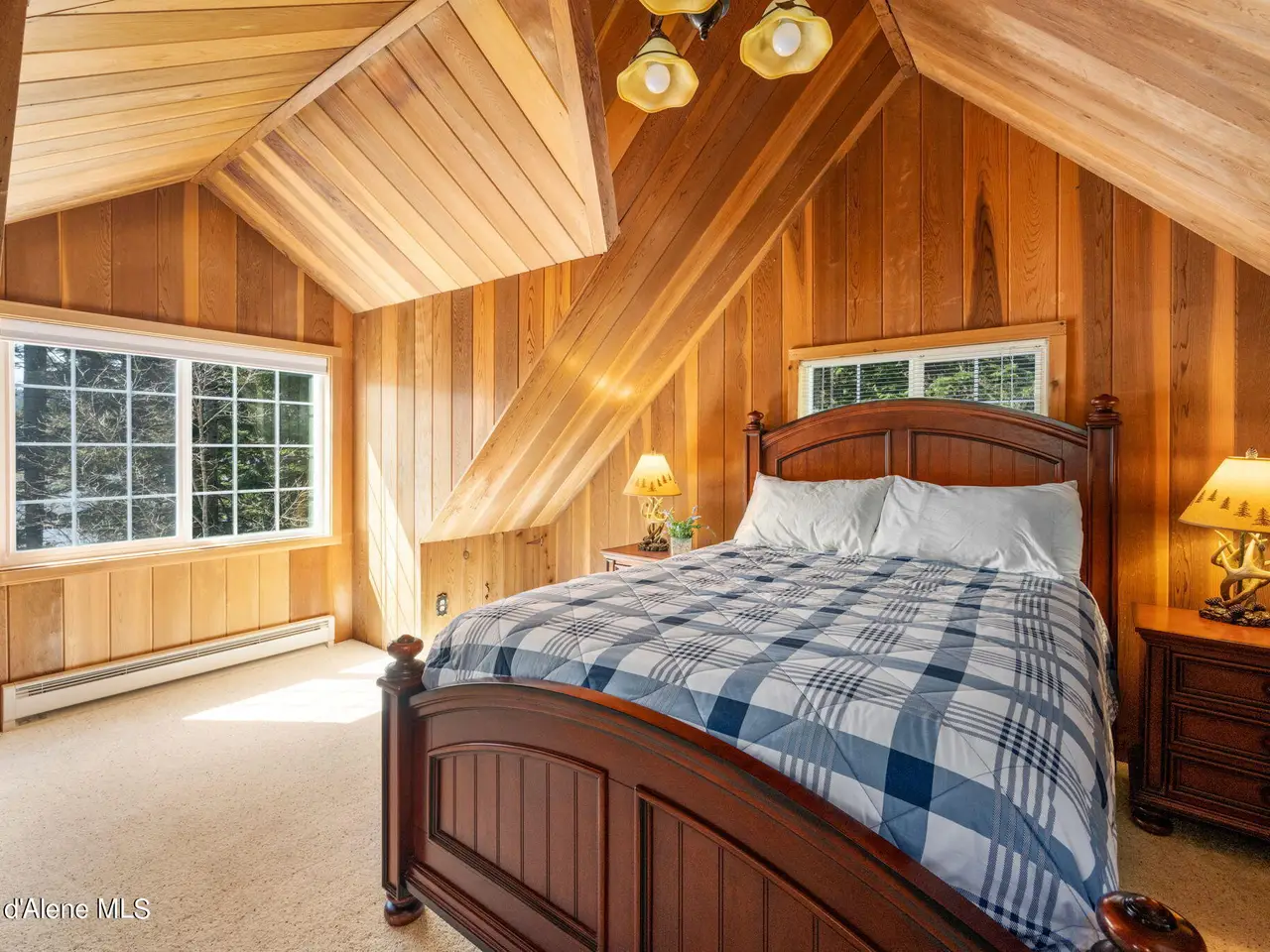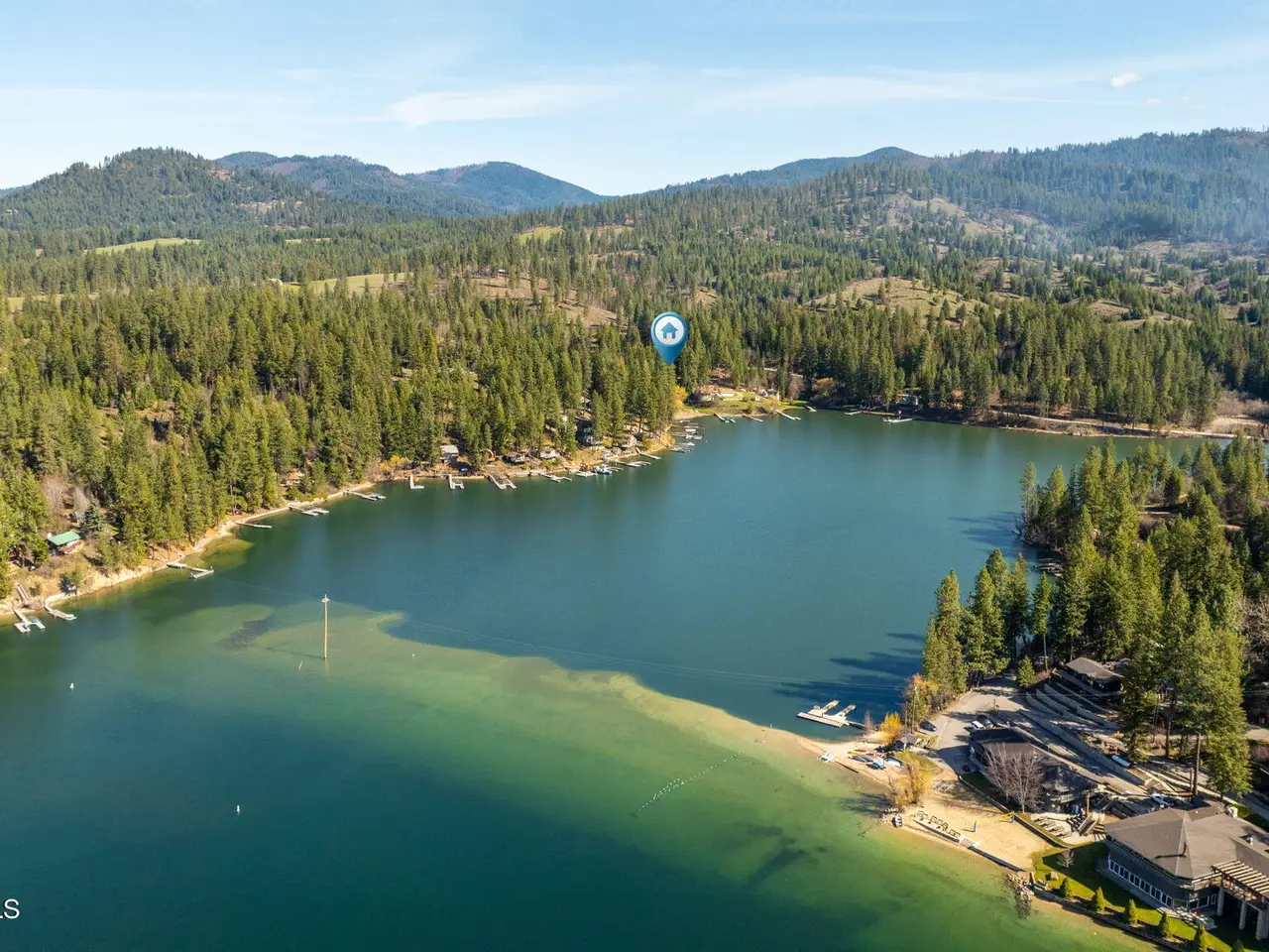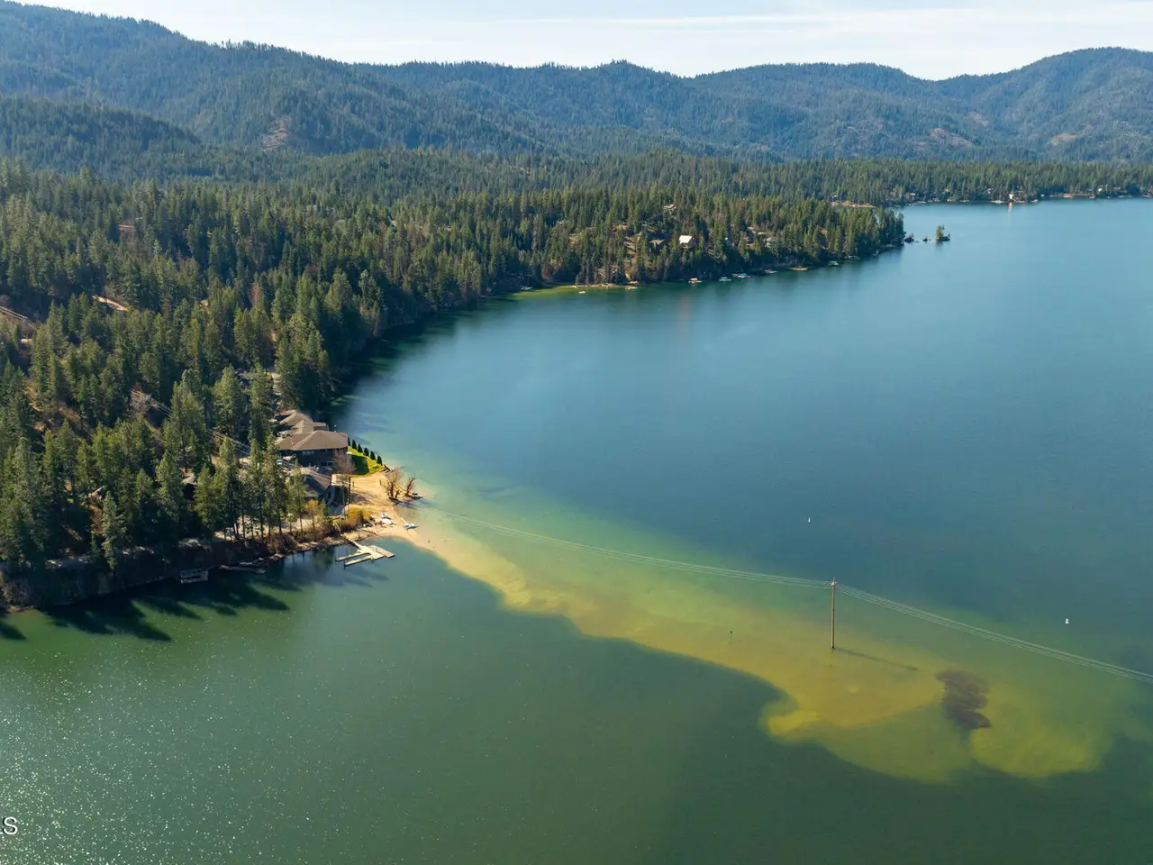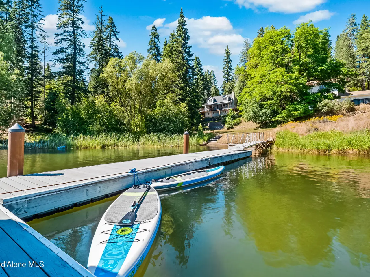 Nestled on Hayden Lake's coveted Mokins Bay, this waterfront retreat offers tranquility and recreation. Walk down to the covered dock and enjoy boating, kayaking, canoeing or fishing in the deep scenic bay that features a no wake zone. With 172 feet of waterfrontage and a sandy beach, the property spans 1.17 acres, comprising two lots, with a year-round creek running between the lots. The terraced landscaping has been thoughtfully designed to blend with the natural surroundings, creating a serene and inviting atmosphere. Originally built as a cozy lake cabin, this home has undergone a complete transformation to offer modern comforts and conveniences while retaining its rustic charm. Step inside to discover a beautifully remodeled interior, featuring updated kitchen and bathrooms, new flooring, and fresh paint throughout. With ample natural light, the home offers a warm and inviting ambiance, perfect for gatherings. Updated plumbing ensures worry-free living, allowing you to fully embrace the lakefront lifestyle. Whether you're seeking a private retreat for your family or an investment opportunity in the vacation rental market, this property offers endless possibilities. Previously, it operated as a successful vacation rental, the home comfortably accommodates 10+ guests. The detached garage provides convenient storage for all your lake toys and equipment, ensuring that you have everything you need to make the most of your time on the water. With its unbeatable combination of natural beauty, recreational amenities, and modern comforts, this Hayden Lake waterfront retreat offers a truly unparalleled living experience.