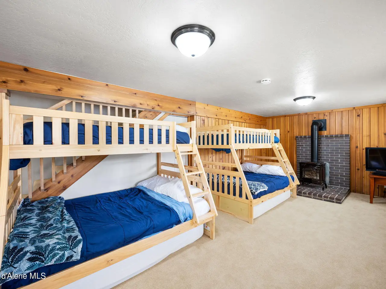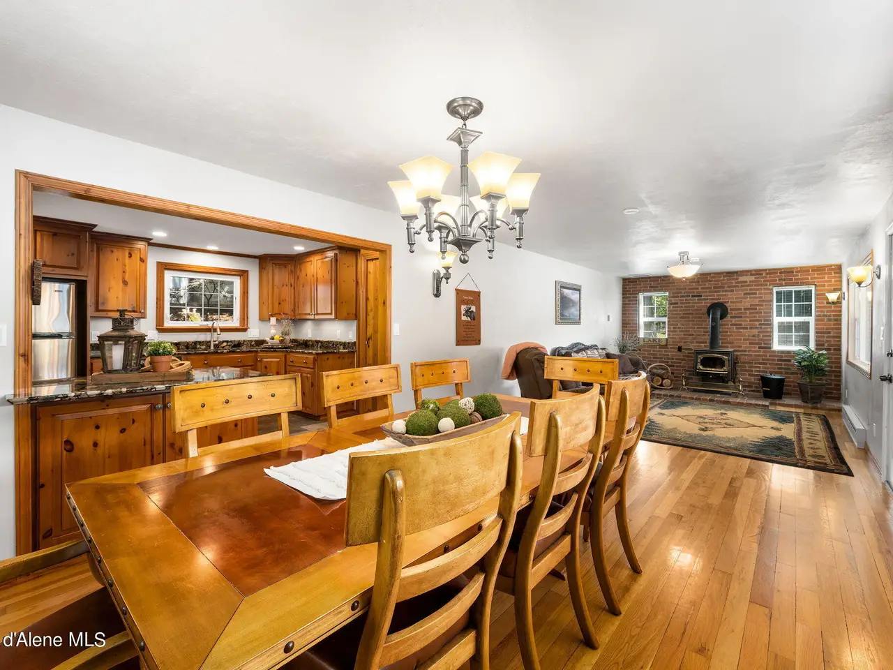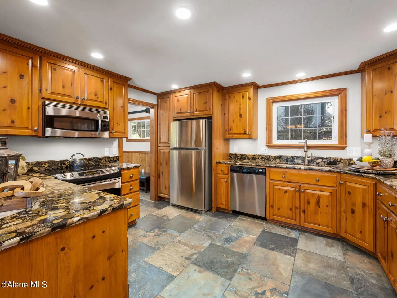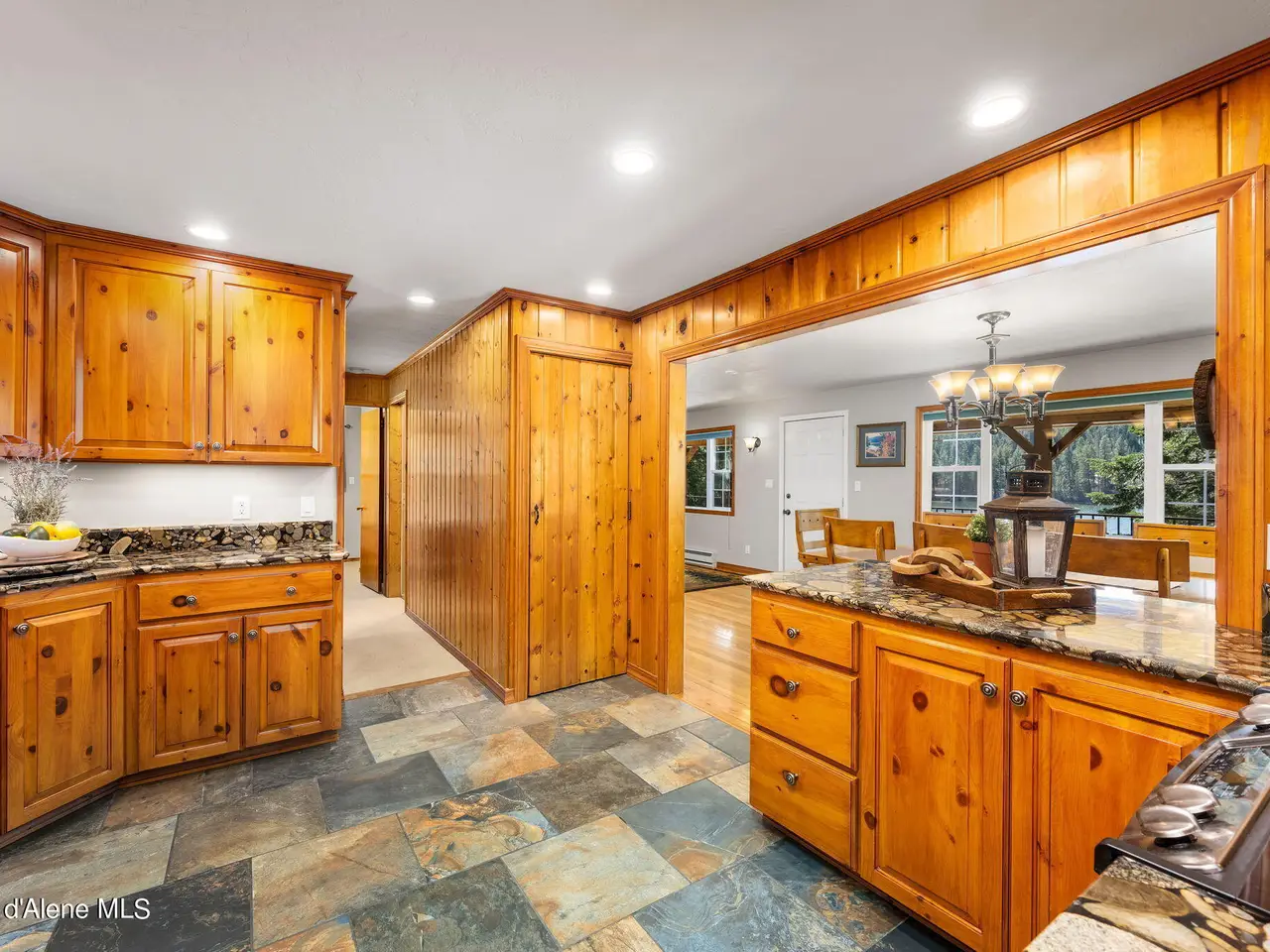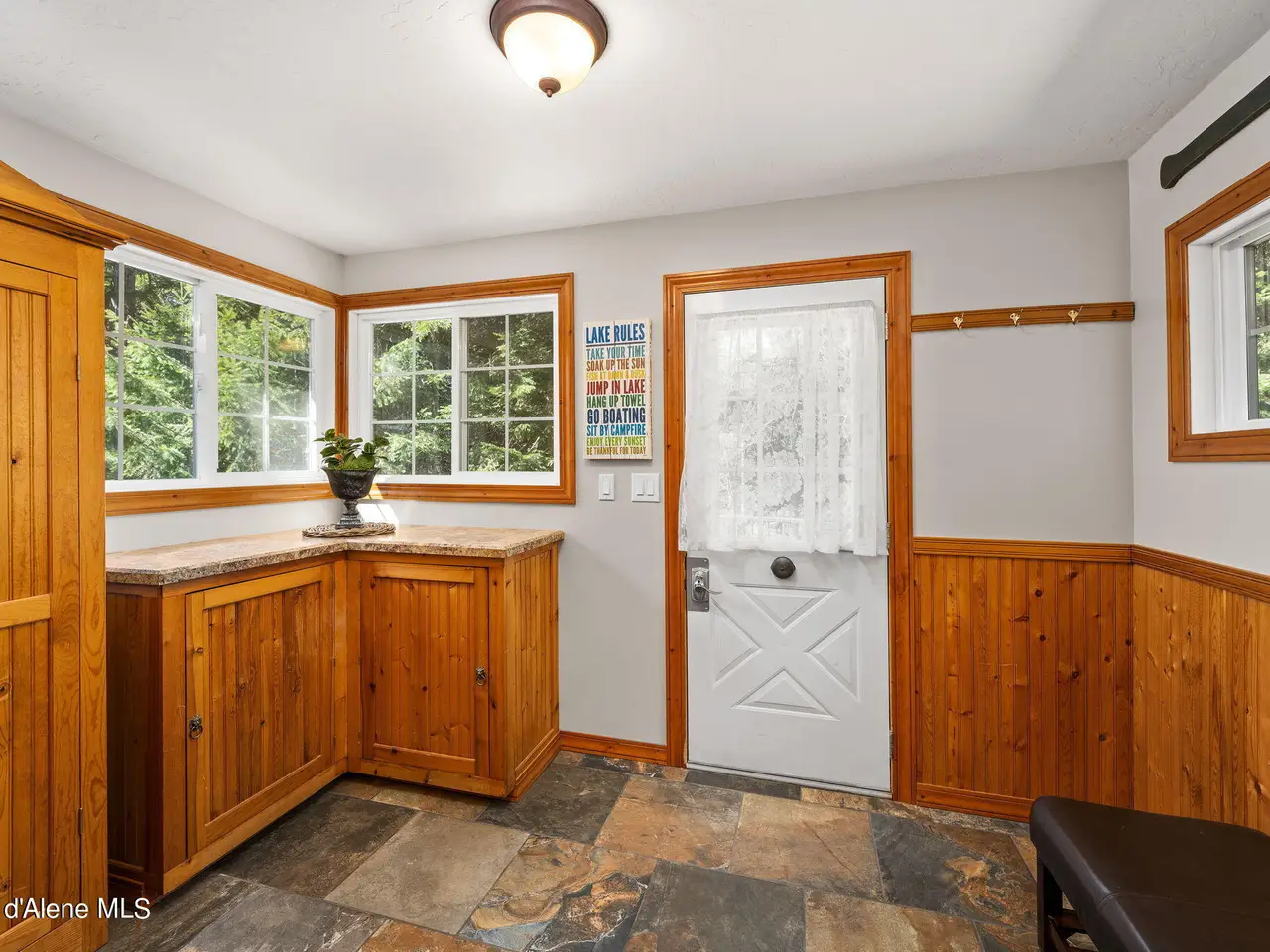 Nestled on Hayden Lake's coveted Mokins Bay, this waterfront retreat offers tranquility and recreation. Walk down to the covered dock and enjoy boating, kayaking, canoeing or fishing in the deep scenic bay that features a no wake zone. With 172 feet of waterfrontage and a sandy beach, the property spans 1.17 acres, comprising two lots, with a year-round creek running between the lots. The terraced landscaping has been thoughtfully designed to blend with the natural surroundings, creating a serene and inviting atmosphere. Originally built as a cozy lake cabin, this home has undergone a complete transformation to offer modern comforts and conveniences while retaining its rustic charm. Step inside to discover a beautifully remodeled interior, featuring updated kitchen and bathrooms, new flooring, and fresh paint throughout. With ample natural light, the home offers a warm and inviting ambiance, perfect for gatherings. Updated plumbing ensures worry-free living, allowing you to fully embrace the lakefront lifestyle. Whether you're seeking a private retreat for your family or an investment opportunity in the vacation rental market, this property offers endless possibilities. Previously, it operated as a successful vacation rental, the home comfortably accommodates 10+ guests. The detached garage provides convenient storage for all your lake toys and equipment, ensuring that you have everything you need to make the most of your time on the water. With its unbeatable combination of natural beauty, recreational amenities, and modern comforts, this Hayden Lake waterfront retreat offers a truly unparalleled living experience.