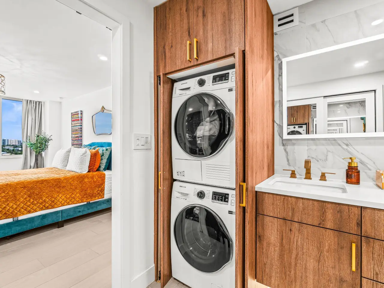 Wow! South exposure 2 Bedroom/ 2 Bath fully renovated at The Regency Highland! Incredible views of the intracoastal water way and ocean from this 7th floor condo. Smartly re-imagined with an open kitchen, fine finishes and details throughout. Spacious primary suite with huge walk-in-closet and oversized shower, double sink vanity and a washer/ dryer. On floor storage locker #04 & Parking space #208 in the garage. Regency Highland is a beautifully maintained building with recently renovated common areas. There are many building amenities. Two pools, 4 pickleball courts, tennis, club room, gym, multiple bbq areas, 24H security, & private beach with tiki huts, lounge chairs, and kayak storage. Fully renovated building. Low HOA fees & very healthy reserves! Located minutes from Downtown Delray Beach & Boca Raton.