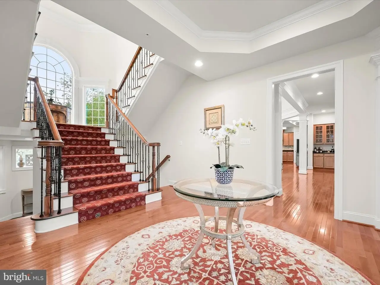 Welcome to this stately NV Mount Vernon residence in the sought-after Schooley Mill Farm community. Set on 1.14 acres with a private drive, this 6-bedroom, 5.5-bath transitional-style home impresses with a brick front, soaring columns that define the covered porch, professional landscaping, and hardscaping that includes exterior lighting, rear paver patios, a circular stone seating wall, and a serene koi pond with a bridge. Enjoy outdoor living on the composite deck with vinyl railings, framed by tree-lined views. A 3-car side-load garage with EV charging station completes the exterior. Inside, a dramatic two-story foyer with fluted columns, tray ceiling, crown moldings and dual chandeliers opens to formal living and dining rooms. A conservatory, private study with French doors, and a two-story family room with coffered ceiling, Palladian window, and gas fireplace set the stage for elegant living. The gourmet kitchen features a commanding center island, two breakfast bars, professional-grade stainless appliances, walk-in pantry, butler's pantry, and a breakfast room in the round with deck access. A mudroom with a built-in arrival bench and generous laundry room with custom cabinetry add everyday convenience. Upstairs, four ensuite bedrooms each feature private baths and walk-in closets, while the luxurious primary suite offers double French doors, tray ceiling, a sitting room in the round, and a spa-inspired bath with two separate vanities and three walk-in closets - one is an oversized bonus closet over the garage. A Juliette balcony adds charm between the secondary bedrooms. The daylight walk-out lower level is designed for daytime or evening entertainment with a full wet bar and back bar, recreation and card rooms, billiards space, media room, exercise room, two additional bedrooms with walk-in closets, a full bath, and abundant storage. This exceptional home blends timeless elegance, thoughtful design, and resort-style amenities in a spectacular location nearby one of Howard County's hidden treasures- Schooley Mill Park. Spanning 192 acres of meadows, woodlands, and wetlands, the park offers a peaceful retreat and abundant wildlife viewing. The park also features over four miles of scenic trails, a regulation-sized cricket field, baseball and softball diamonds, basketball and tennis courts, eight outdoor pickleball courts, and three public equestrian rings. Families and friends will enjoy the farm-themed inclusive playground, designed for children of all ages and abilities, with swings, slides, sensory play areas, and shaded picnic spots. With free parking, brand-new restrooms, water fountains, and multipurpose facilities, Schooley Mill Park is within walking distance and is a true community gem blending nature, recreation, and accessibility. Come home to a very special home and a very special location surrounded by opportunities to retreat in nature, or participate in robust outdoor activities for everyone of every age!