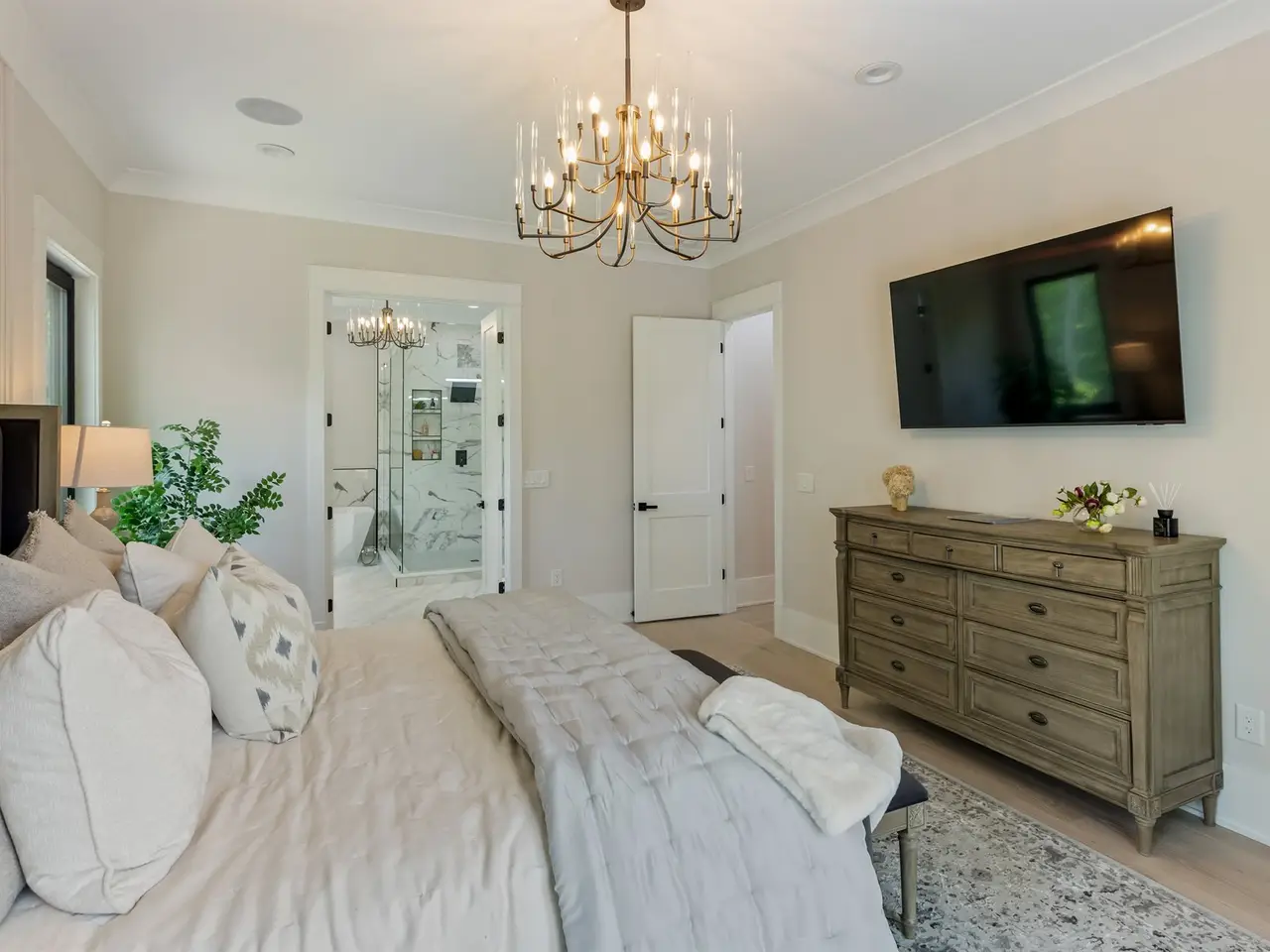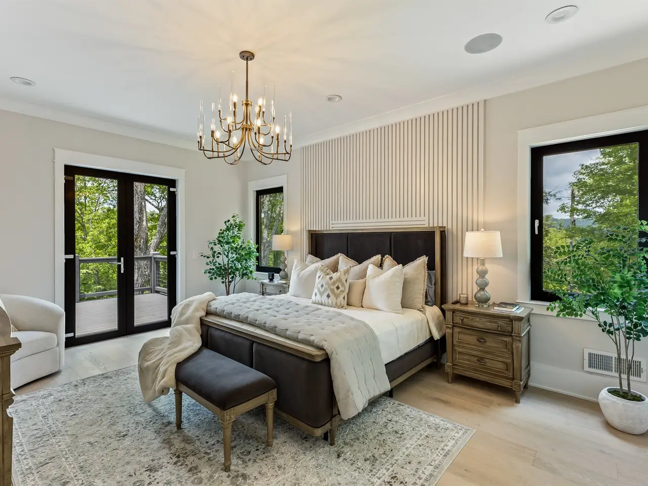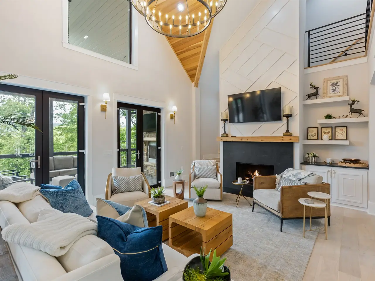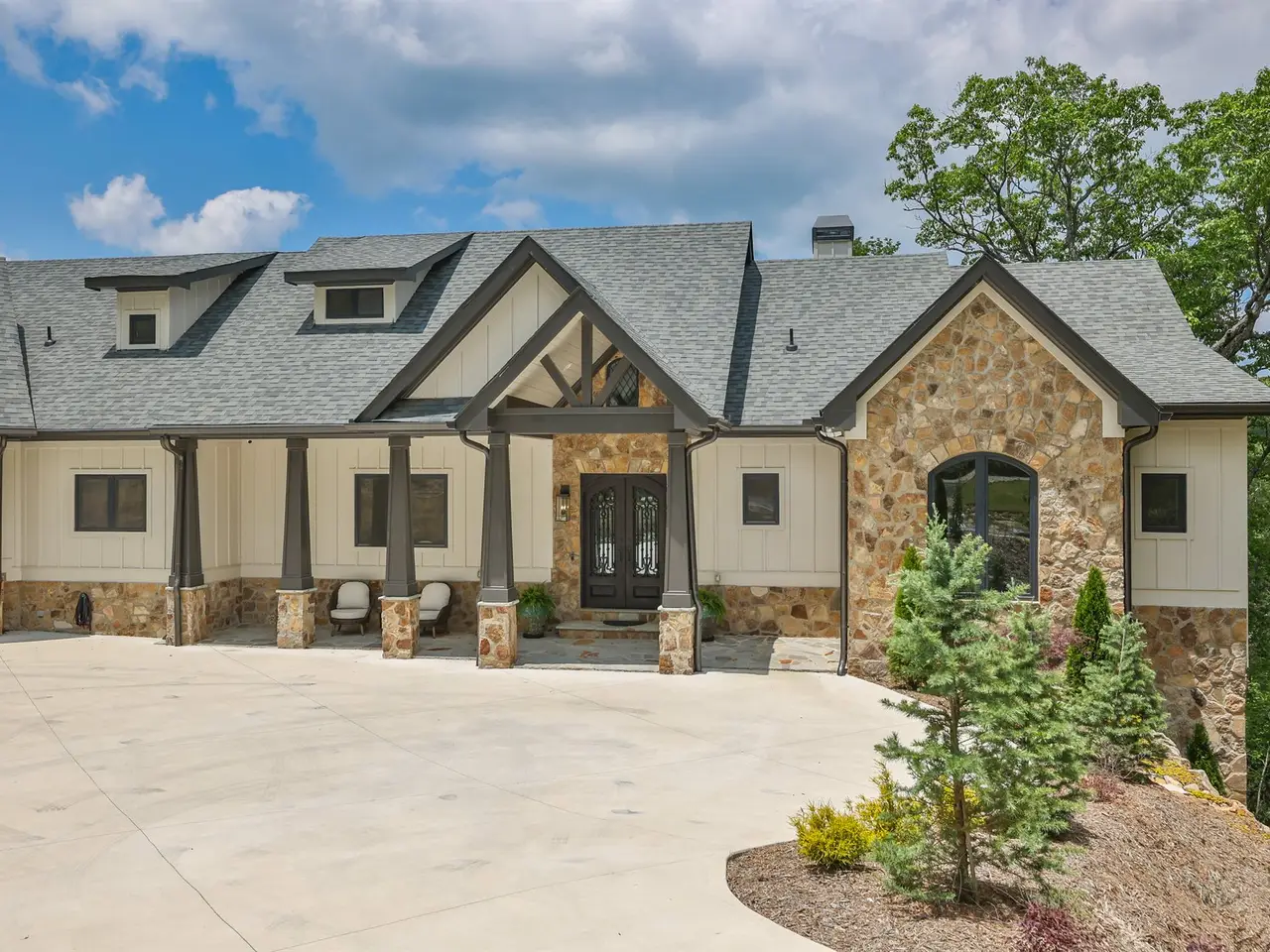 Come fall in love with this beautifully crafted new construction home, designed for luxurious mountain living with timeless style & high-end finishes. Built with precision & quality in every detail, the home features stunning triple-clad European glass doors & windows for peace & quiet, blending durability with elegant design. The main level offers an open, light-filled floor plan with soaring ceilings & a stunning wood-burning fireplace with gas starter. The beautifully tiled gourmet kitchen is equipped with premium Thermador appliances, including a wifi controlled Thermador oven/range, a walk-in pantry with a custom thick cedar sliding door, & seamless flow into the sophisticated dining area. Step outside to a generous northwestern facing covered rear porch with a second wood-burning fireplace, plus an open grilling deck with a built-in gas line for outdoor cooking & relaxing. Soak in the glorious sunsets then meander to the private primary suite, a true serene escape, showcasing a spa-style bath with a show-stopping large framed-glass shower & soaking tub. Two additional guest suites with ensuite baths with heated floors, a spacious laundry room, powder room & a mudroom complete the main floor. Upstairs, you'll find a private & generous guest suite with a full bath with heated floors, a cozy loft perfect for a morning relaxation & a bonus room that would function beautifully as a home office or yoga space. The expansive lower level includes a second living area with a large & beautifully tiled kitchenette, custom wine cellar, game area or dining space, powder room & three guest suites each with private baths with heated floors. A spacious lower-level deck opens to a gentle & open, pet-friendly yard perfect for frolicking furry friends or a firepit for stargazing & s'mores. Additional highlights include a 3-car garage with a finished bonus room above ideal for an office, studio, or gym & an encapsulated crawlspace. The home is offered partially furnished (some exclusions apply) with curated designer pieces from Dutchman's of Highlands. Smart home features include a whole-home audio system, custom smart TV wiring, & a fully integrated camera system, all easily controlled from your smartphone. Located just minutes from downtown Highlands with a trailhead just up the street for nature exploring, this remarkable residence offers the perfect blend of mountain charm & modern luxury & is ready for you to move-in, relax & enjoy the perfect season on the plateau.