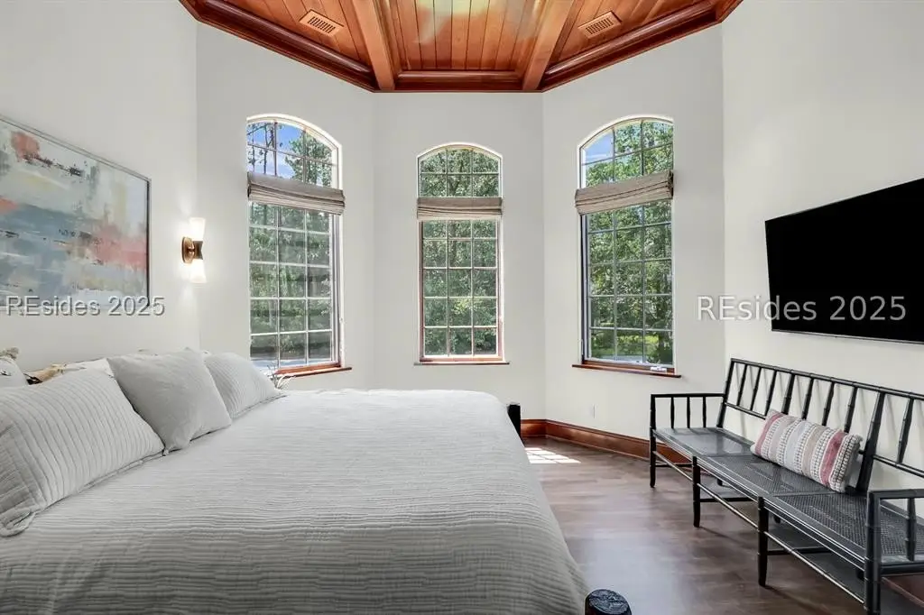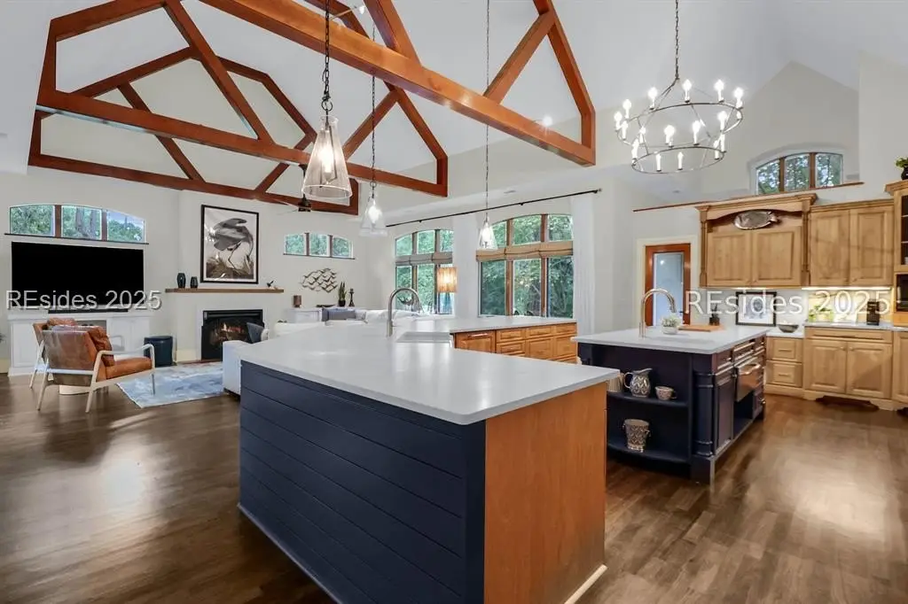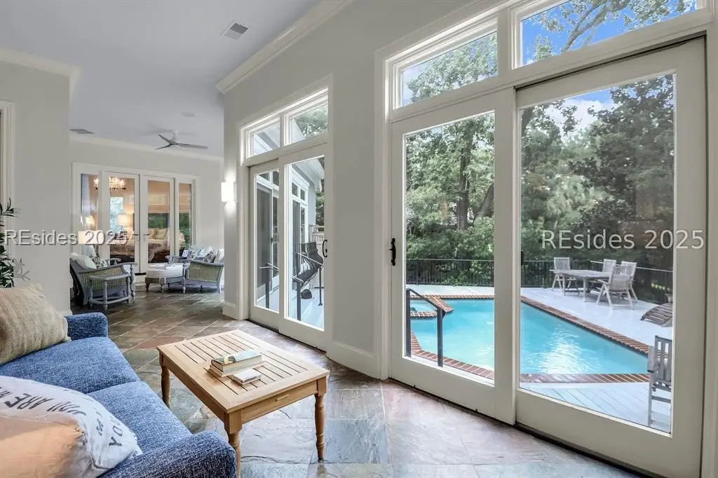 This home truly has it all. Rare opportunity to own this custom-built French Country style home offering 4,732 sqft of exceptional living space, all on one level except for a bonus room above the spacious rear-entry two-car garage. This high-quality home showcases a private saltwater pool with long lagoon views, a Carolina room for added living space, and excellent bedroom separation. The open kitchen flows into the family room, creating the perfect central gathering place for entertaining. Additional highlights include a temperature-controlled wine room with racking for over 2,000 bottles, a wet bar, large cedar closet in the attic, and turn-key condition that makes it an ideal lock-and-leave property. Located in prestigious Long Cove, residents enjoy first-class amenities alongside this beautifully maintained home.