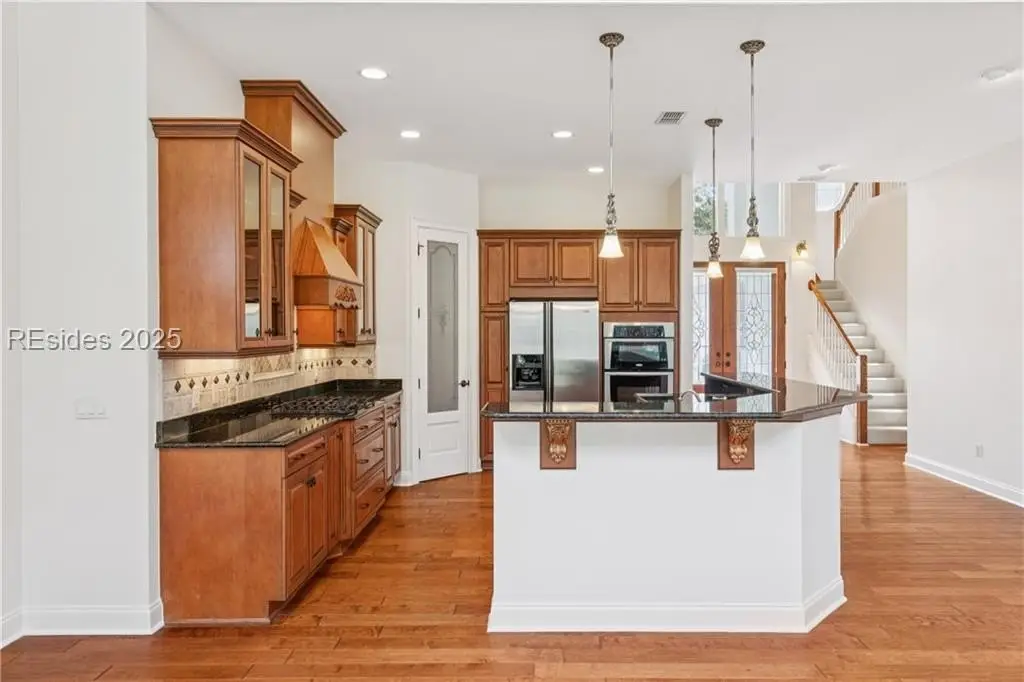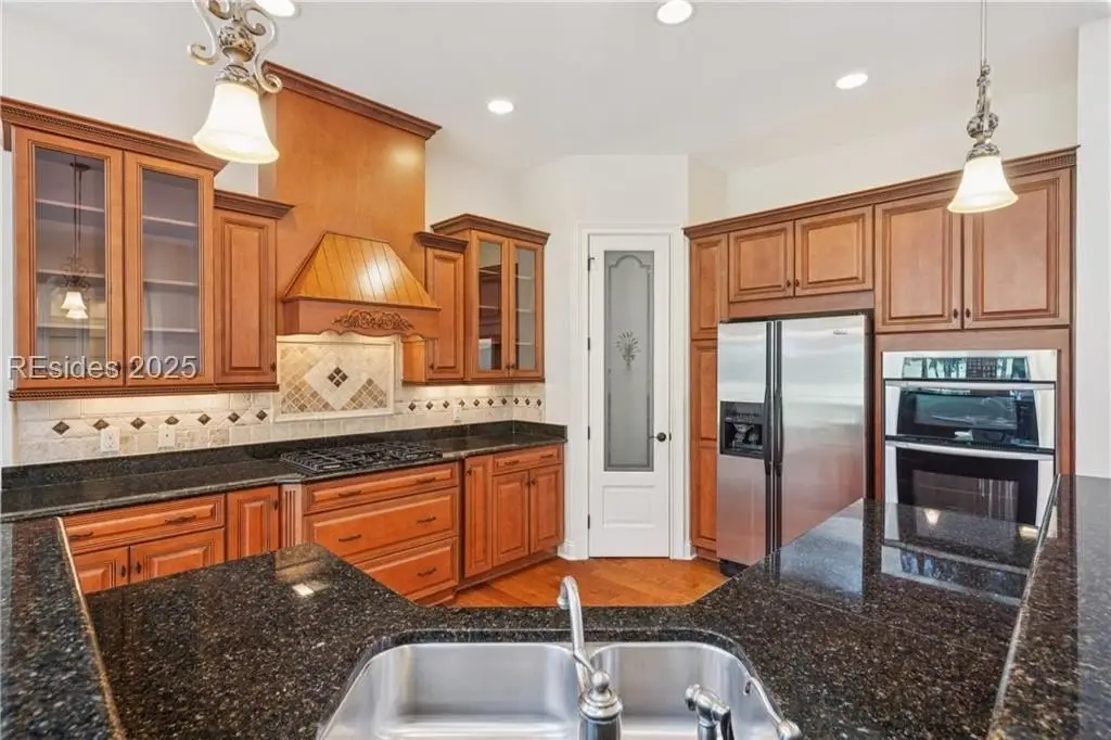 Prestigious, 5 bedroom/3.5 bath home with lagoon/double fairway views of 10th green, 11th tee in the private Berwick Green community of Indigo Run. Quiet cul-de-sac location, great room with high ceiling, hardwood floors, gas fireplace, wet bar/wine cooler, ceiling audio speakers. Kitchen has cherry cabinets, granite counters, all stainless steel appliances, gas stove/convection oven. Formal dining room, crown molding. 1st floor primary bedroom with tray ceiling, walk-in closet, fireplace, sitting area. Double sinks in primary bath, jet tub. 2nd floor, golf/lagoon views, 4 large brs/office. Berwick Green has community pool just 2 doors down!