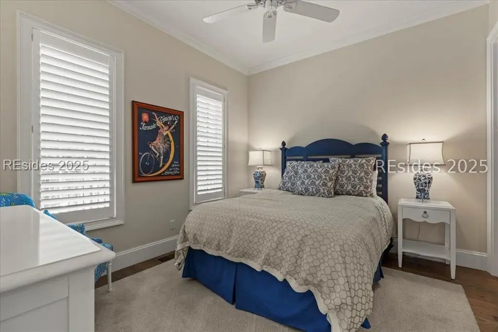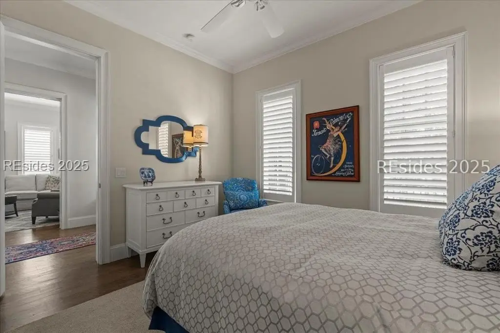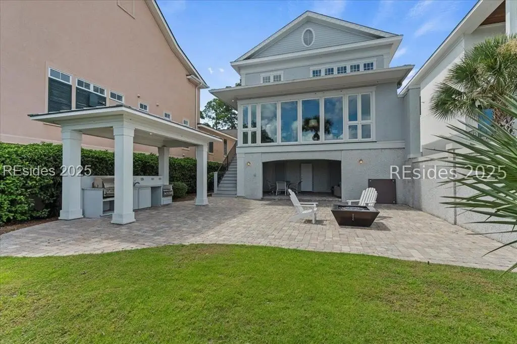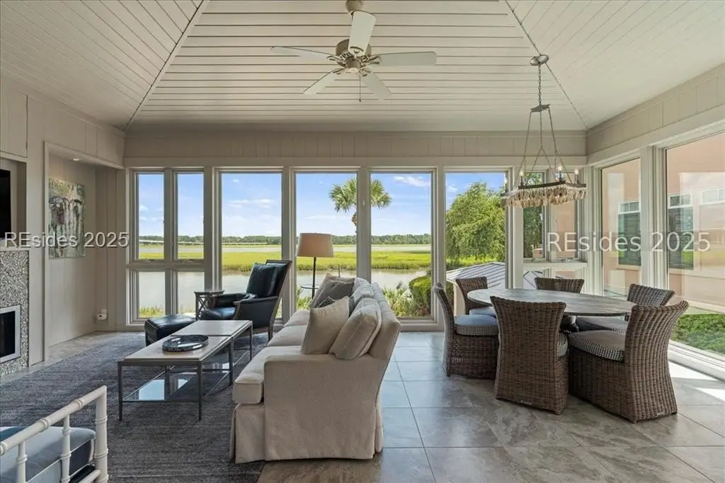 Stunning Lowcountry-style home showcasing rarely available & expansive, unobstructed Broad Creek views. Thoughtfully designed & exquisitely finished, this 4BD + den, 4.5BA residence blends timeless architecture with upscale comfort, just a short stroll to the world-class clubhouse, marina, tennis courts, golf & pool. Light & bright interior featuring hardwood & brick flooring, multiple fireplaces, & custom millwork throughout. Chefs kitchen impresses with marble countertops, high-end appliances, and generous prep space. Multiple charming porches, built-in outdoor grill, & fire pit, all set against the backdrop of serene waterfront views where sunsets are a spectacular show every night. Additional highlights: wine cellar, elevator, newer HVAC systems, every bedroom with ensuite, & expansive first-floor storage. Sold fully furnished, making it the perfect turnkey escape in one of Hilton Heads most desirable communities.