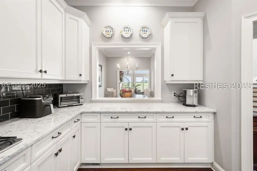 Enjoy breathtaking marsh views and everchanging sunsets from this stunning residence in the private Oyster Landing Club of Sea Pines. This beautifully maintained home blends Lowcountry charm with modern updates. The gated courtyard welcomes you with oyster shell and brick steps while the interior features crown molding, plantation shutters, antique heart pine flooring, & elevator on the first level. The gourmet kitchen boasts custom cabinetry, granite countertops, 2025 Bosch & GE Café appliances and opens to a dining room and spacious great room. The great room offers panoramic marsh views, gas fireplace, built-ins, and a granite dry bar with ice maker. A first-floor office, powder room, and walk-in storage add function and ease. Upstairs includes two guest suites with shared bath, laundry room, and the owners suite with spectacular marsh views, fireplace, massive custom closet, and access to both a private deck and rooftop observation deck. The oversized garage with carport/finished room above offers excellent storage or flex space. Oyster Landing Club is a very special neighborhood offering pool and tennis delivering the ideal Sea Pines lifestyle .