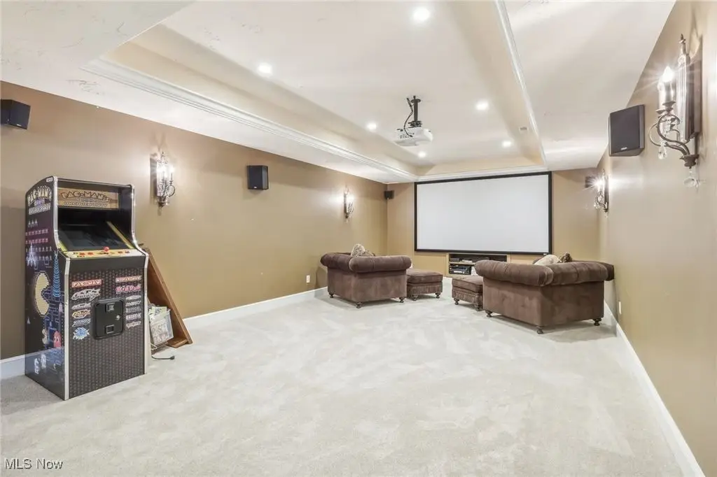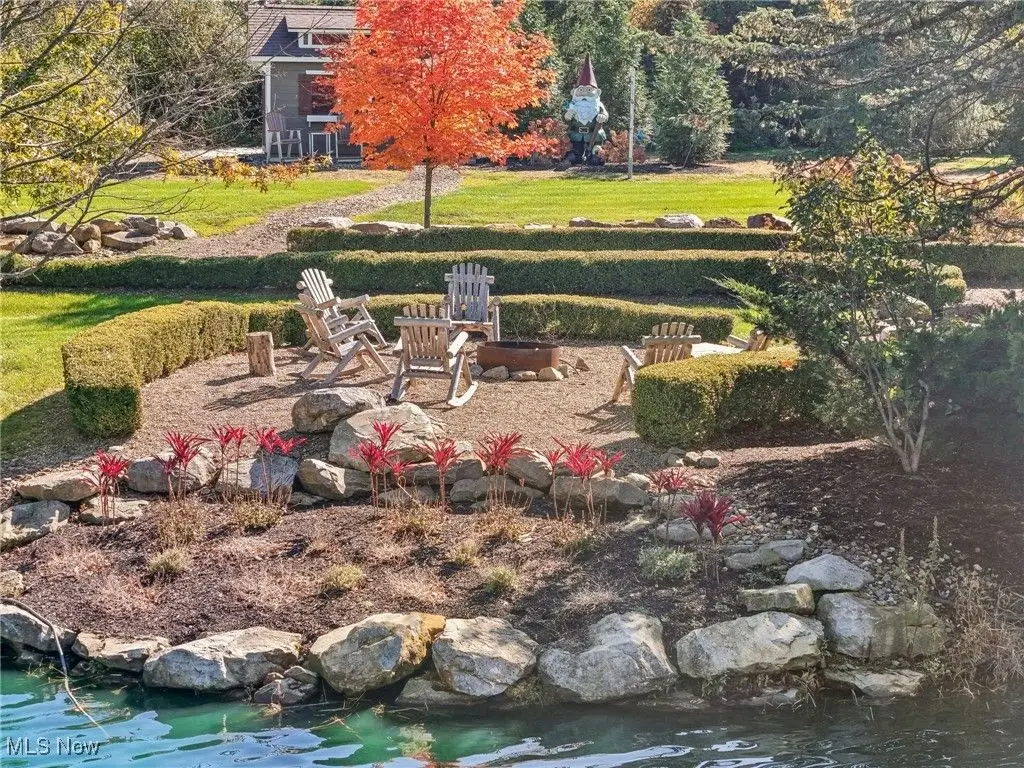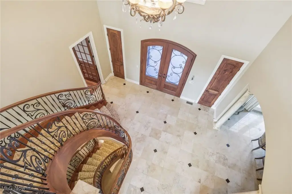 Nestled within a serene landscape, this custom-built home exudes elegance through meticulous craftsmanship & exquisite details. Upon entering you're greeted by a tremendous sweeping staircase, intricately designed woodwork, trim & molding that reflect the highest standards of artistry, spanning an impressive 7900+ sq.ft. Large pond is a picturesque centerpiece, highlighted by a soaring fountain, meandering walking path, sandy beach & charming she shed. These features transform the outdoors into a tranquil oasis. providing integration of indoor & outdoor living, dining & entertaining. Kitchen is chef's paradise, with two-tiered island, breakfast bar, high end appliances, & custom cabinetry blending functionality with style. Inviting hearth room w/ beamed ceiling & cozy wood burning fireplace all opening out to expansive terrace overlooking resort like grounds. Walk through pantry w/ ample storage & prep space lead to formal dining room w/ built in cabinets, buffet & French doors that open to outdoor courtyard for restaurant like dining. 2 story great room boasts stunning wall of windows framing breathtaking views allowing natural light to flood the space. Impressive fish tank serves as 2 sided centerpiece showcasing tropical & rare fish as serene focal point. Stunning library with decorative cathedral ceiling, rich wood built ins, & secret door to expansive primary bedroom w/ sitting area with terrace overlooking the pond. Spa-like bath, w/ walk-in shower, jetted tub & double vanities for ultimate relaxation. Convenient laundry on 2 levels. Upstairs you'll find 4 nicely sized bedrooms, 2 boast en suite baths & 2 share Jack n Jill, all with walk-in closets, ample storage & privacy. Walkout lower level is luxurious retreat featuring fully equipped bar with pizza oven, spacious theatre room, sizable workout room, 2nd office, full bath, billiards & rec area walking out to serene patio w/hot tub creating a peaceful escape. This luxurious home is truly one of a kind.