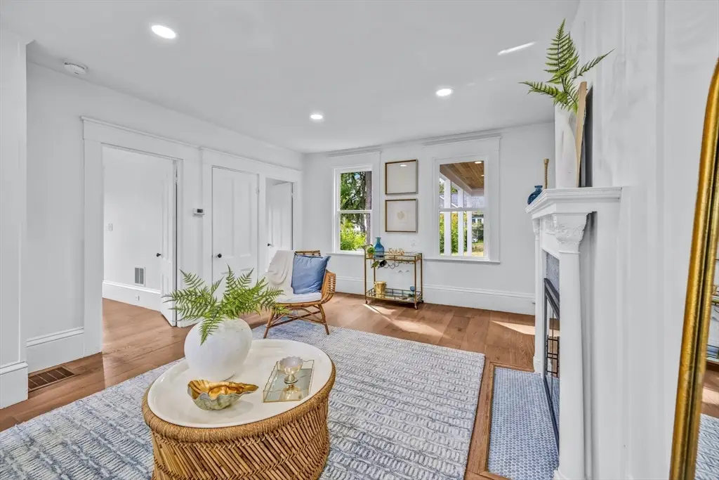 Stunning renovated Hingham farmhouse that perfectly blends historic charm with modern luxury. The open-concept addition showcases a gourmet kitchen with 8.6 ft quartz island, integrated appliances, and seamless flow to dining and living areas. Four fireplaces, a sun-filled study, and library offer multiple living spaces, while French doors open to a porcelain-paved patio for effortless indoor-outdoor entertaining. Five bedrooms include a luxurious primary suite with fireplace, radiant floor heat, oversized shower, and double vanity, plus convenient second-floor laundry. Two staircases enhance flow, and 8.5" wide-plank white oak flooring, black-exterior windows, and custom millwork elevate the design. Modern systems include central A/C and mini-split heating/cooling. Just 0.8 miles to Hingham train stations with sidewalk access to town centerùideal for commuting and coastal living. Close to downtown shops, dining, harbor, and parks.