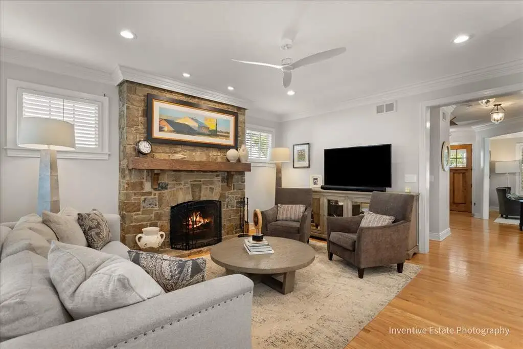 This stunning home, reimagined by a local designer in 2020, is perfectly situated on one of Hinsdale's most desirable streets. The open, sun-filled floor plan features gleaming hardwood floors throughout. The gourmet kitchen offers a large quartz island, an eat-in area, a butler's pantry with access to the formal dining room, and a walk-in pantry. The adjacent family room showcases a beautiful stone fireplace, creating a warm and inviting gathering space. The 2nd level includes four spacious bedrooms, walk-in closets, plus a balcony. The versatile 3rd level provides a bedroom, office space, and full bath-ideal for guests, work, or play. The fully finished basement adds even more living space with a large recreation room, brick fireplace, custom built-ins, and a bathroom. Enjoy outdoor living on the expansive bluestone patio with a custom-built fireplace, or relax on the charming front porch overlooking the tree-lined street. All within walking distance to Madison Elementary, downtown Hinsdale, and the Metra train-this home is truly move-in ready. See home "special features" for a list of updates.