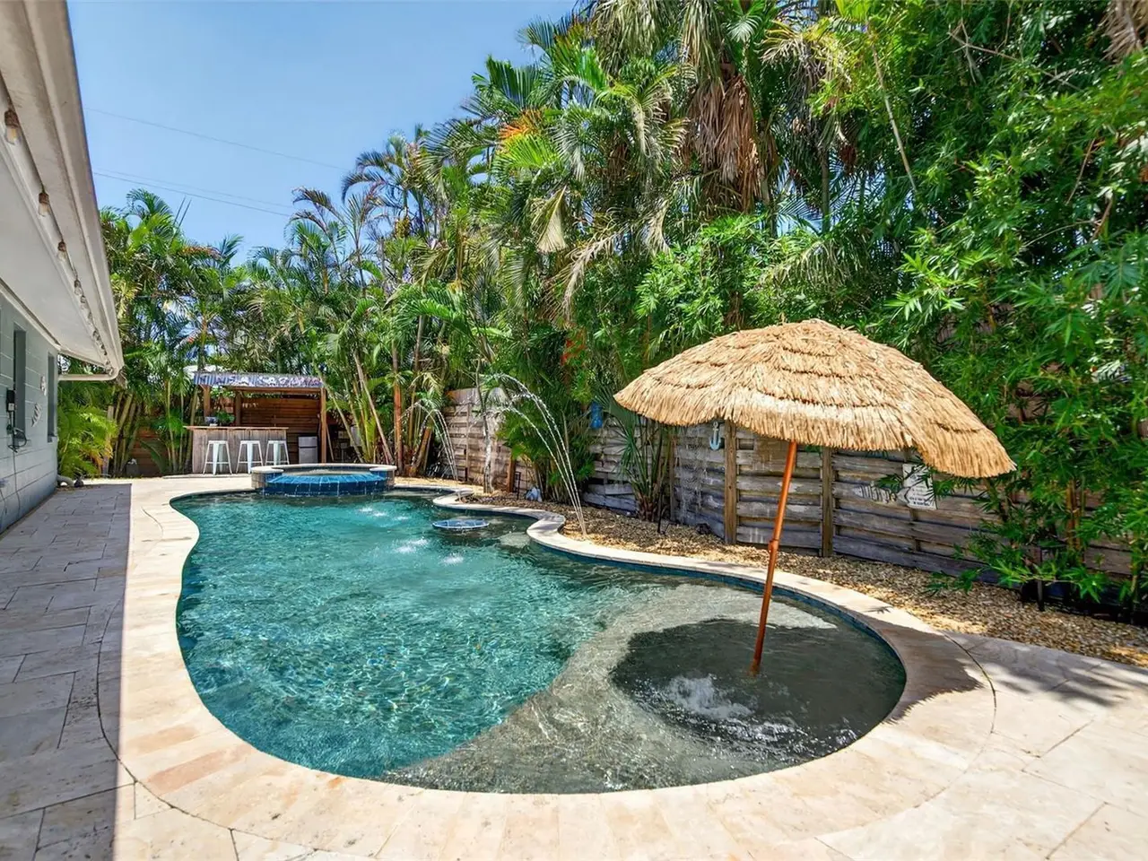 **VERY MOTIVATED SELLER** Welcome to Your Dream Vacation Getaway Surrounded by world-class beaches, fantastic restaurants, and charming shops, this TURN-KEY FURNISHED 4-bedroom, 3-bathroom pool home is perfectly situated in the heart of Anna Maria Island. It is just 3 blocks from the beach! A proven income property with exceptional reviews and bookings in place, this home offers both a serene retreat and a smart investment. Nestled on a spacious corner lot with lush native landscaping and swaying palms, the home features wide covered porches that overlook an outdoor oasis. Step into your private paradise with a sparkling lagoon-style pool and spa. Surrounded by tropical greenery, the built-in spa with water jets, thatched umbrella, and natural stone-tiled deck create a resort-like ambiance. A fun Tiki bar, outdoor shower, and ample lounge space add to the perfect setting for entertaining or relaxing after a day at the beach. Outdoor living continues with a covered porch and shaded dining area, ideal for morning coffee or evening cocktails. Inside, the home boasts a completely remodeled, open-concept living area and a large eat-in kitchen, perfect for gathering with family and friends. The split floor plan includes four private bedrooms and two spacious bathrooms on the main floor. Upstairs, a generous loft offers a third bathroom, a fifth bonus bedroom with a queen bed, and a cozy reading nook. An attached 1-car garage provides convenient storage for all your beach gear and golf cart. Don’t miss your chance to own this tropical retreat. Book your private showing today!
