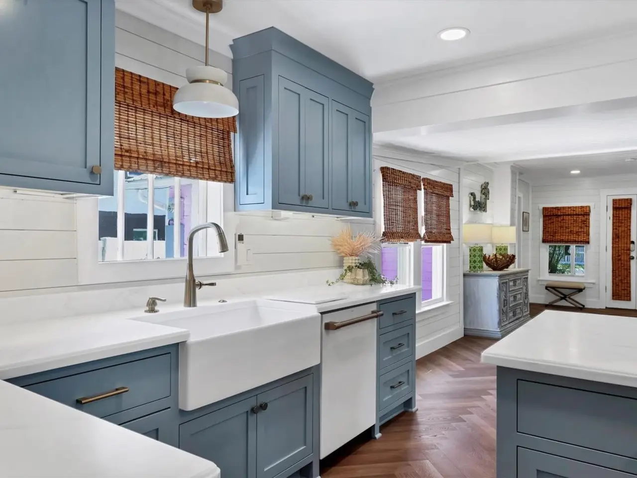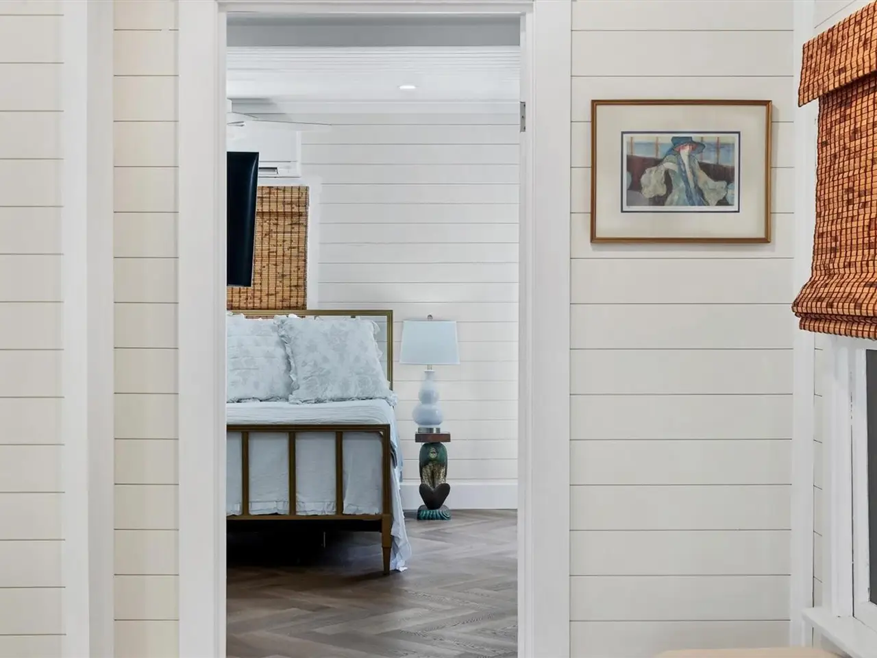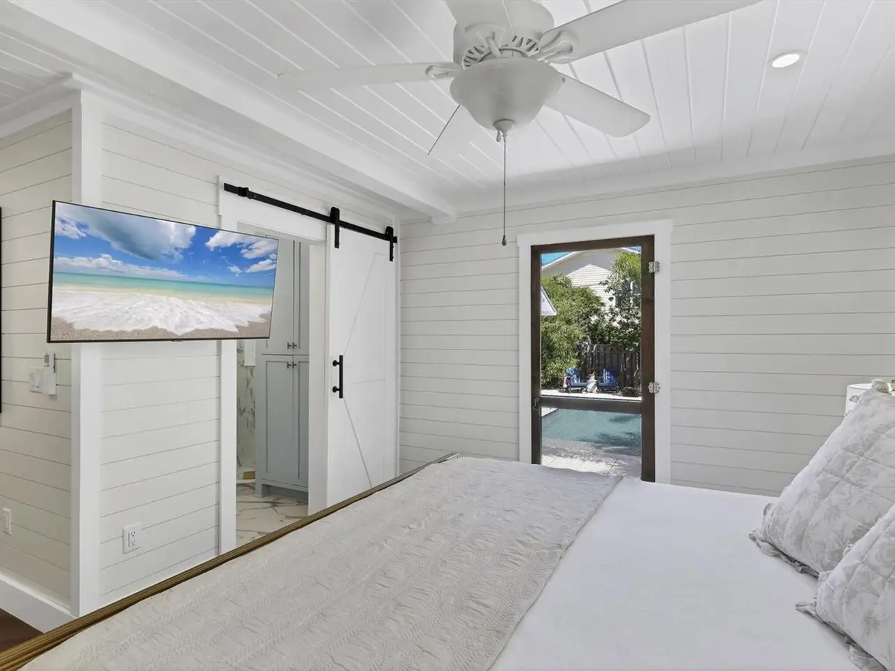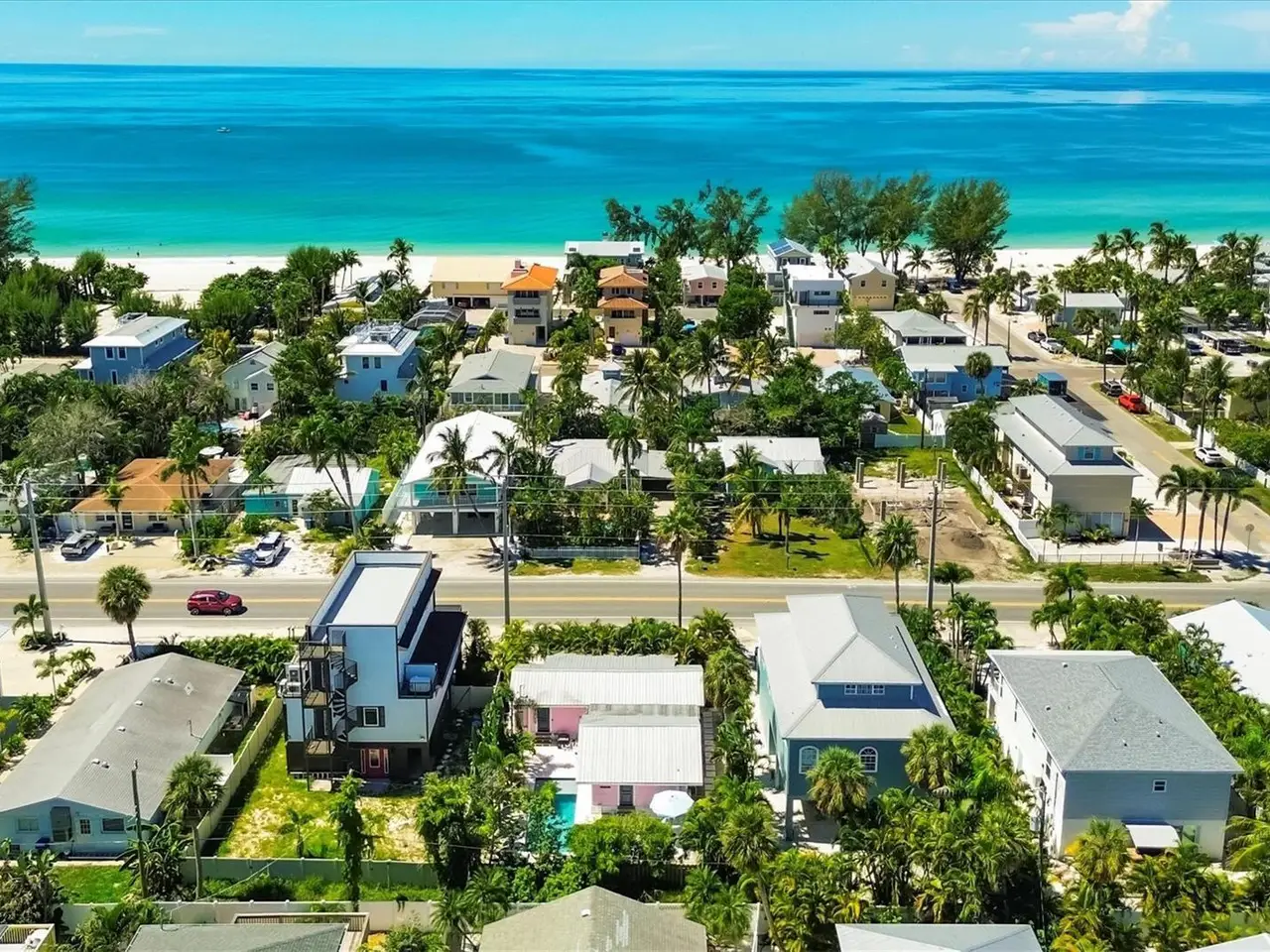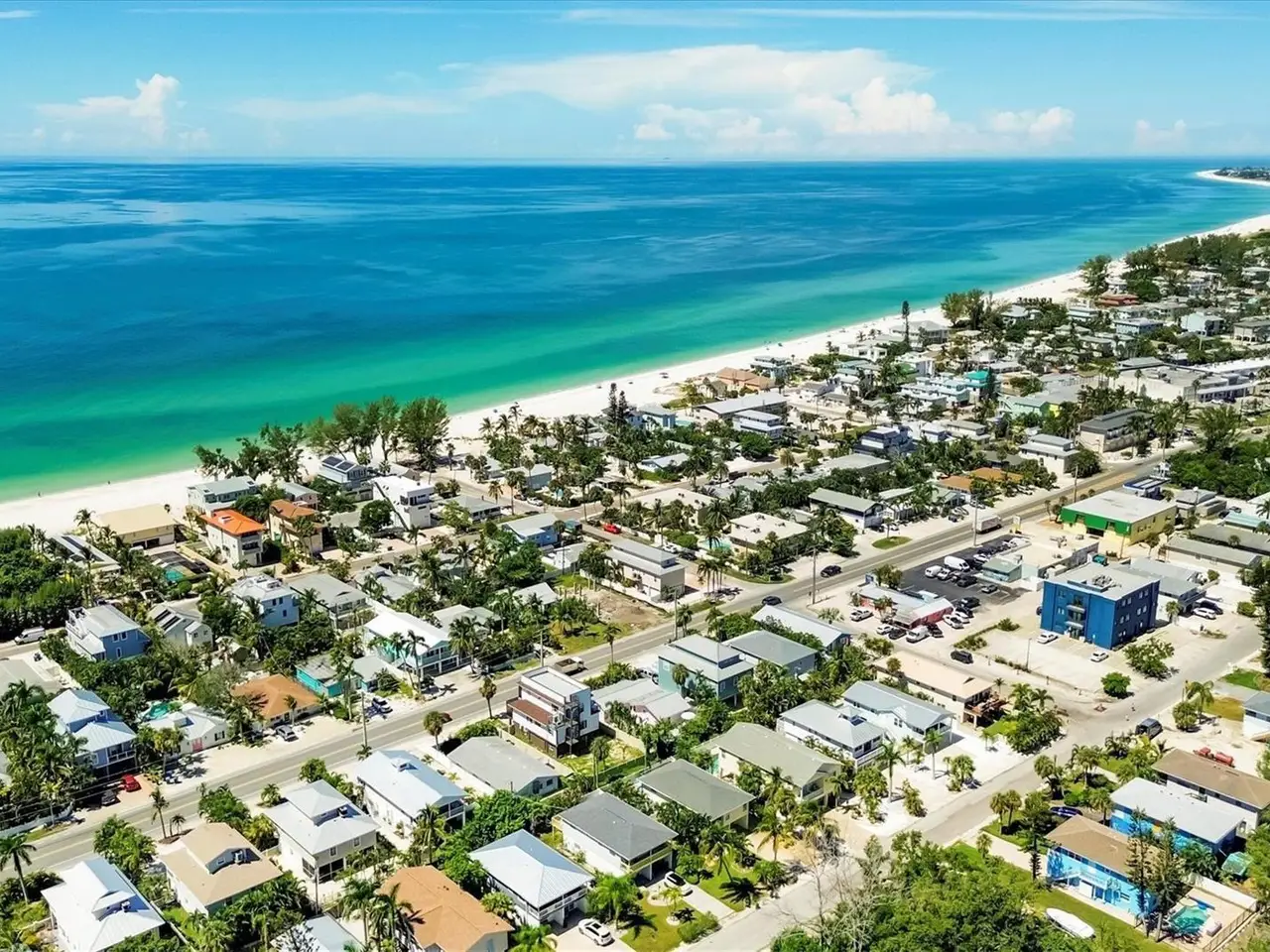 Step onto the spacious screened front porch, now featuring Timber Tech by Azek Porch Collection decking, framed by original Pecky Cypress siding, and enjoy the timeless charm of this lovingly restored 1940s 2 bed / 2 bath craftsman beach cottage just steps from the Gulf. This home blends Old Florida character with today’s comfort. Inside, new shiplap walls pair with Daltile’s Asher Bend luxury vinyl flooring in a herringbone pattern over a brand-new subfloor. This waterproof, scratch resistant surface combines the warmth of wood with the resilient vinyl, perfect for beachside living. The open kitchen boasts custom floor-to-ceiling cabinetry handcrafted in Pennsylvania, a built-in breakfast nook with matching benches, a Café Series appliance package in matte white, brushed bronze hardware, and Carrara. Emporio acrylic solid surface countertops for beauty and practicality. Both bathrooms feature spa-inspired tilework, one with a custom glass shower enclosure. The primary suite opens directly to the pool, while the guest bedroom provides its own private layout. A newly designed laundry suite adds everyday convenience with an Electrolux washer and dryer plus a high built-in countertop for organization. Outdoors, enjoy a fenced backyard oasis with an Agnelli-installed, custom-designed saltwater pool completed in 2022, surrounded by palm-lined landscaping for a private retreat. Behind the scenes are new plumbing and light fixtures throughout, spray foam insulation under the floors, new batt insulation in the walls, and carefully sourced finishes, all completed in 2025. With proven rental income managed by the owner and even stronger potential under professional management, the Pink Palm is an iconic island cottage reimagined for today.
