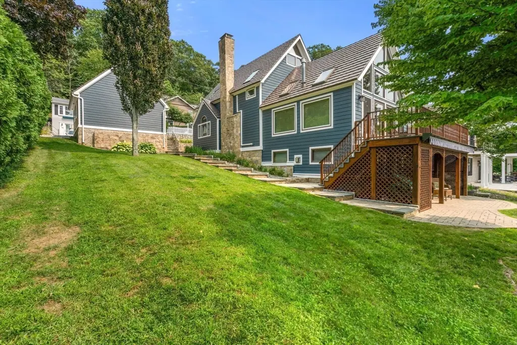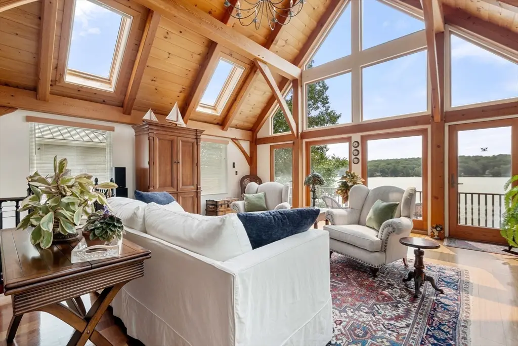 Boater's Paradise!~ Custom built lakefront home with 30Æ Trex plank aluminum frame dock. The Great Room features 2-story cathedral Douglas Fir Post & Beam w/walls of windows & stunning lake views & Trex deck. Facing SW & on widest section of Lake Maspenock, this home has undergone a complete makeover & expansion using the latest materials & technology. Newer metal roof, Advanced Composite siding & 2-car garage w/loft & cobblestone driveway. Brazilian cherry floors & Anderson windows thru-out. Flex. Lower Level walkout Game Room & French doors opening to patio w/awning. Flexible layout w/many skylights & features throughout. (2)Mitsubishi mini splits, baseboard heat, (2) VT Casting propane stoves & wood burning FP. Paver walkways, stone walls & bluestone steps grace the terraced lakeside. Walk to town beach, top-rated schools & minutes to Rte 495 & 90. Relax, boat, swim or waterski w/ gorgeous sunset views on 2-mile long Lake Maspenock. Vacation at home!