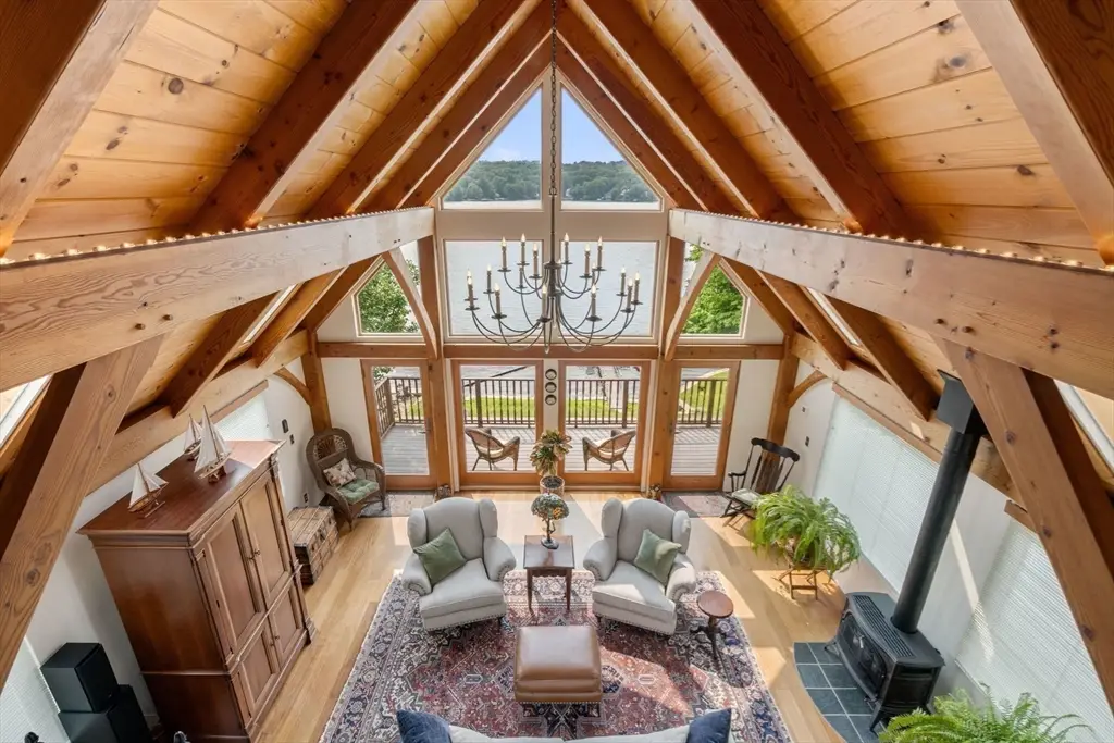 Custom Douglas Fir Post & Beam Great Room with lake views
