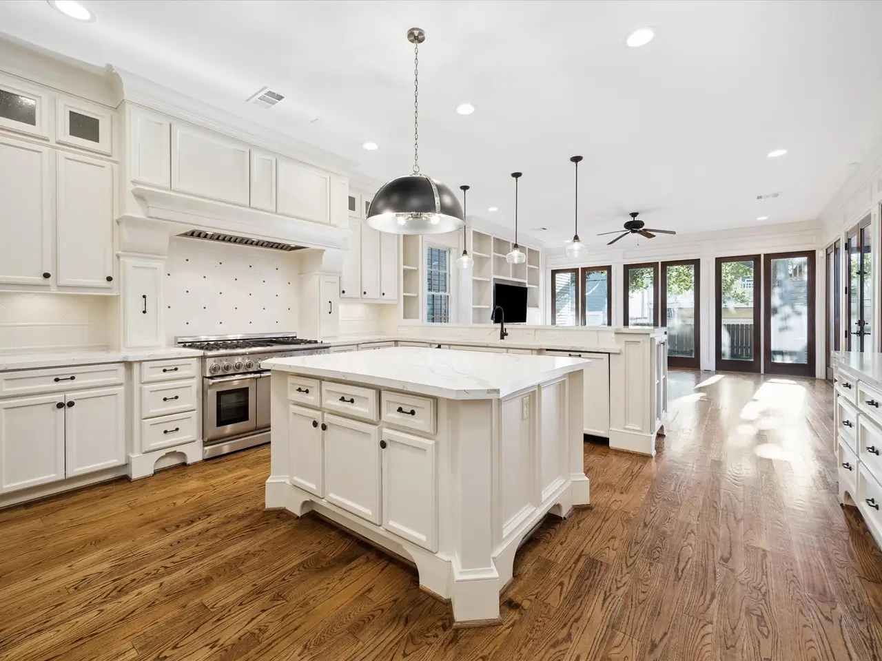 Stunning traditional brick home in a prime Houston Heights location combines timeless architecture with sophisticated updates. The gorgeous exterior features classic brick with crisp white accents and inviting porches framed by mature landscaping. Inside, discover exceptional craftsmanship with hardwoods, crown molding, and designer finishes. The formal living room showcases a fireplace flanked by custom built-ins, while the gourmet kitchen features premium appliances, quartz counters, and center island perfect for entertaining. The open kitchen/family layout creates an ideal flow for modern living. The luxurious primary offers courtyard access, well-appointed bathroom, and generous closet. A graceful, curved staircase leads to the 2nd floor featuring a spacious game room and three great bedrooms! Outdoor living spaces include a beautiful brick courtyard and low-maintenance turf yard. Garage apartment with wood floors and full bath. This pristine residence offers the perfect blend of Southern charm and modern comfort.