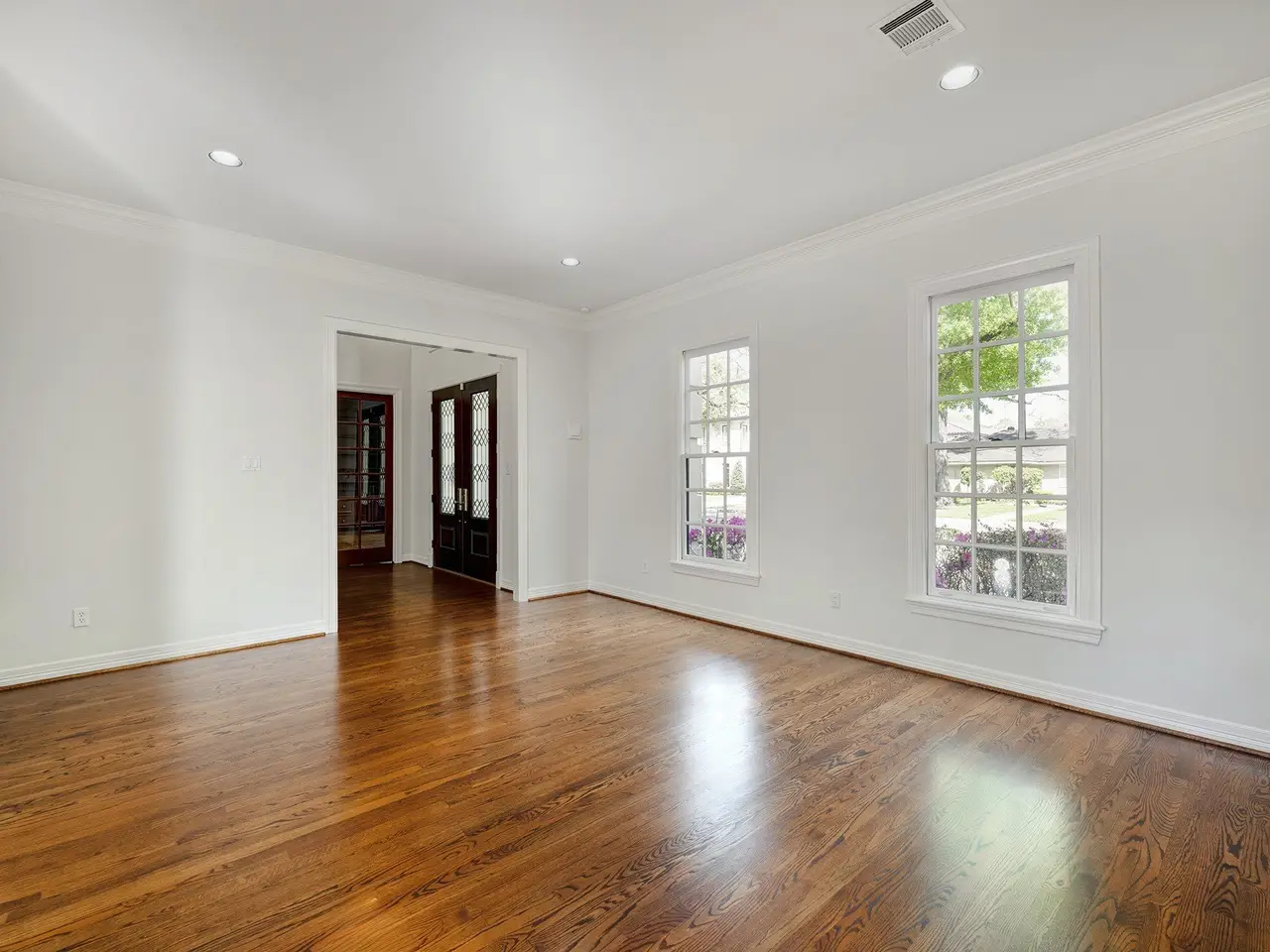 Floor-to-ceiling windows in family room