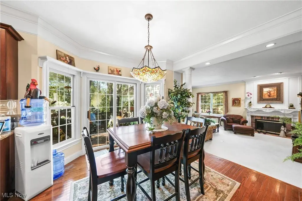 One of Hudson's Finest Custom Homes on Morning Song Lane is in one of the most sought-after neighborhoods, this exceptional custom-built home by Peter Paino blends quality craftsmanship with thoughtful design and luxury finishes. Just minutes from downtown shops, restaurants, parks, and award-winning schools, this home offers the perfect combination of convenience and privacy. Step inside to find a beautifully updated kitchen featuring granite countertops, stainless steel appliances, a walk-in pantry, breakfast bar, and rich hardwood floors. The casual bayed dining area opens to a large deck overlooking a private, wooded backyard-ideal for outdoor dining or morning coffee. The spacious family room features a fireplace with a custom mantle and French doors leading to an all-season sunroom filled with natural light from a wall of windows. The formal living room, adorned with custom molding, seamlessly flows into the elegant dining room, perfect for entertainment. A private library with built-in shelves offers a quiet retreat or home office space. Completing the first floor are a mudroom, powder room, and a well-appointed laundry room. Upstairs, the luxurious Owner's Suite includes a large walk-in closet, spa-like en-suite bath, and a private sitting area. Three additional bedrooms offer flexible living options-two share a Jack and Jill bath, while the third has its own private en-suite. The fabulous, finished walk-out lower level includes three recreation rooms, ideal for a media room, home gym, or guest suite, along with the home's fourth full bathroom. Additional highlights include: inviting brick exterior with front porch and professional landscaping, oversized 3-car garage, open foyer with dramatic split staircase, 9-foot ceilings on the main level, and serene wooded backyard for year-round enjoyment. This meticulously maintained home offers timeless style, generous living space, and an unbeatable location.
