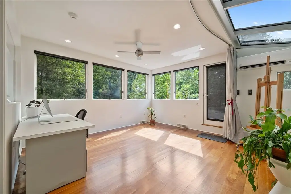 Secluded 17-acre retreat bordering Hartwood Acres Park with direct trail access and spectacular views! This unique property blends timeless charm with modern upgrades, including natural gas, city water, whole-house filtration, new septic and water lines, back-up generator, and dual HVAC systems. Custom cherry floors, built-in cabinetry, automatic blinds, and a whole-house audio system add warmth and functionality. Enjoy a professionally installed sauna, outdoor shower, fenced dog pen, and tranquil water features. The second-floor studio with full plumbing offers flexible living space - ideal for a guest suite or home office. With room to build a barn, this property is perfect for equestrians who dream of riding directly into Hartwood Acres. Whether you're seeking peace, creativity, or adventure, this move-in-ready home offers a lifestyle of comfort, privacy, and possibility. Access via a quiet private road. Split across 10 and 7 acre parcels.